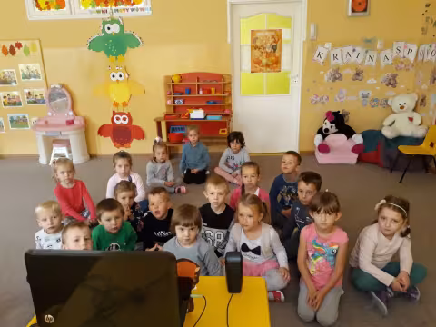 Krótka opowieść o małej głodnej gąsienicy, która każdego dnia zjadała cos innego, aż w końcu zamieniła się w pięknego motyla – The very hungry Caterpillar. Dzięki tej interesującej bajce udało nam się połączyć treści nauczania z zakresu przyrody i matematyki z językiem angielskim, co doskonale wpisuje się w stosowaną przez nas na zajęciach metodę - w skrócie nazywaną CLIL. Podczas zajęć, mieliśmy okazję utrwalić słownictwo głównie z zakresu nazw owoców, kolorów, a także liczb. Poznaliśmy również cykl życia gąsienicy i etapy jej rozwoju. Wykonaliśmy samodzielnie jej plastyczny model wykorzystując papierowe talerzyki, papier kolorowy oraz pokolorowane sylwety owoców i produktów, które potem przyklejaliśmy zgodnie z treścią bajki. Z pomocą olbrzymiej sylwety gąsienicy udało nam się jeszcze raz odtworzyć jej historię krok po kroku. Na koniec nasza „ Caterpillar” powędrowała na grupową wystawę, gdzie można ją podziwiać.