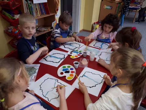 W ramach cyklu zajęć „Podróże po Polsce” dzieci przypomniały sobie wiadomości nt. tego jakie są symbole polskie oraz położenie ważnych punktów na mapie takich jak: Wisła, Morze Bałtyckie, góry. Starszaki kształtowaływ sobie tożsamość narodową poprzez zabawy i różne działania plastyczne. Dzieci utrwalały pojęcia i symbole, które powinny być bliskie zarówno małemu jak i dorosłemu Polakowi. Przedszkolaki zapoznały się z symbolami Polski, wiedzą, że stolicą Polski jest Warszawa i najdłuższą rzeką Wisła. Nasi mali Polacy wiedzą również, jak zachować się podczas słuchania hymnu narodowego. A uwieńczeniem narodowego tygodnia była praca w kącikach zabawowo- zadaniowych. W kąciku darów dzieci układały godło. W kąciku twórczym malowały mapę Polski na folii z użyciem mydlanych farb. W kąciku badawczym przedszkolaki barwiły ryż na czerwono przy pomocy bibuły, a później wykonywały barwy narodowe w butelce doskonaląc technikę przesypywania ryżu. W kąciku gospodarczym wykonywały flagę z chleba tostowego, serka twarogowego, sera feta, żurawiny, dżemu malinowego i słonego paluszka. Prace wyszły przepięknie, a po skończonej prezentacji i zjedzeniu przepysznych flag starszaki posprzątały swoje miejsca pracy.