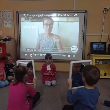 Grupa IX - Podróżnicy w tym roku szkolnym biorą udział w Interdyscyplinarnym Projekcie Edukacyjnym "Migowy dla dzieci". Przedszkolaki podczas zabaw ...