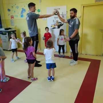 Trening sportowy z piłką prowadzony przez trenerów z DAP Akademii: Pana Karola Markowskiego i Pana Patryka Nowaka.