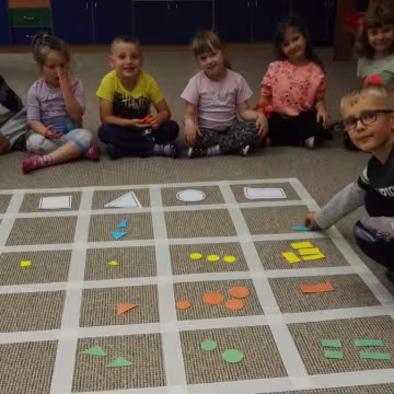 Kodowanie kolor- kształt można rozwiązać na macie do kodowania na różne sposoby, dopasowując do aktualnie realizowanych treści. My realizowaliśmy ...