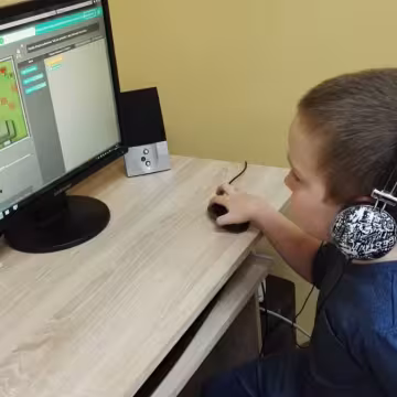 Wykorzystując nasze stanowisko komputerowe dzieci indywidualnie pracują na różnych programach. Na zdjęciach chłopcy - którzy testują możliwości ...