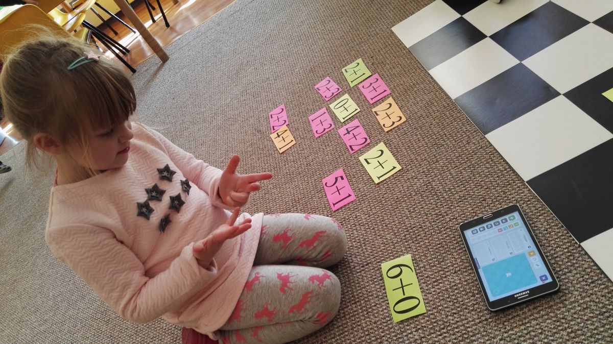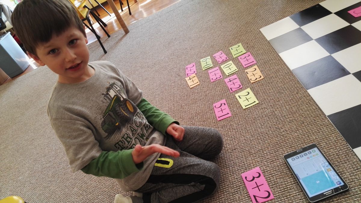 Dzieci z grupy V mają otwarte horyzonty i kreatywne podejście do rozwiązywania problemów, chętnie też uczestniczą w nowych czynnościach. Ponieważ uczą się na każdym kroku zadając analityczne pytania, aby dotrzymać im kroku i pozwolić lepiej zrozumieć otaczającą rzeczywistość musimy bardzo kreatywnie podchodzić do proponowanych im zadań. Tak też było w przypadku zadań matematycznych, które standardowo wykonujemy z użyciem liczmanów, liczydeł, itp. sprzętów. Tym razem poszlismy o krok dalej i aby zaciekawić nasze przedszkolaki, użyliśmy Photona, który kodował razem z nimi wyniki dodawania.