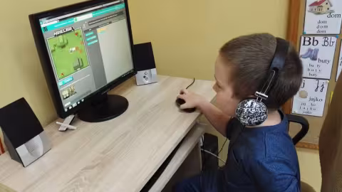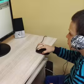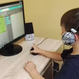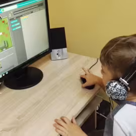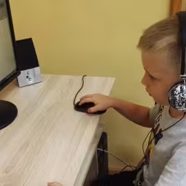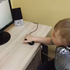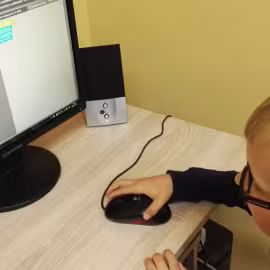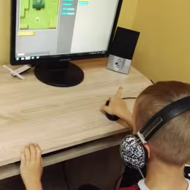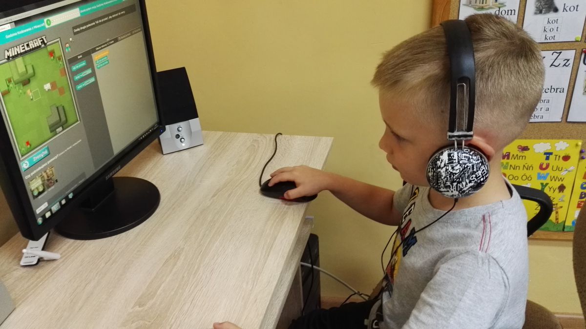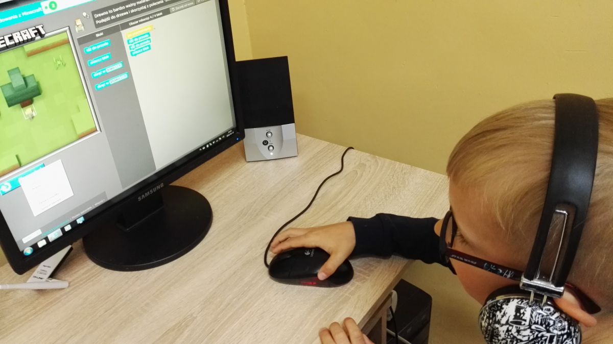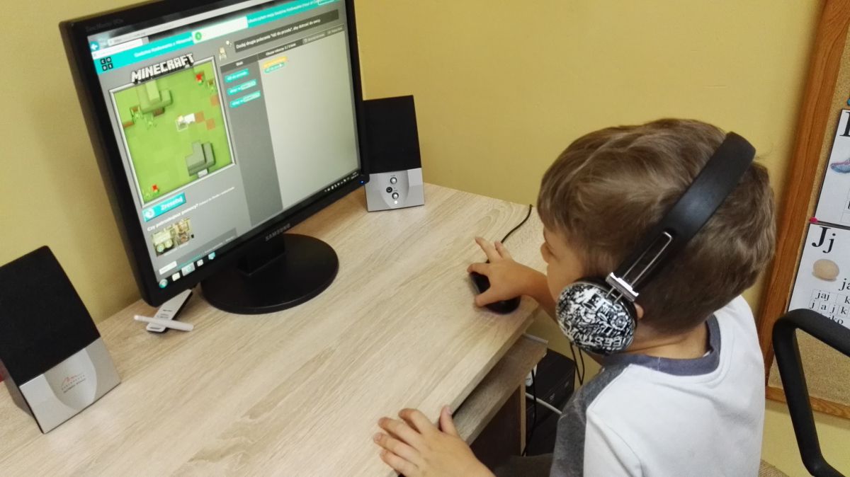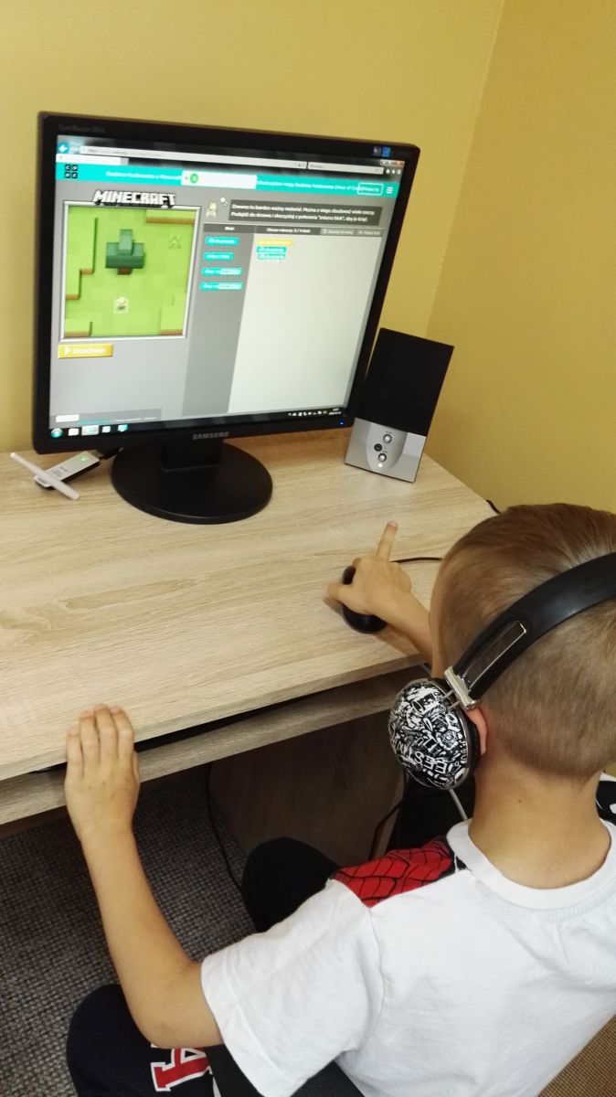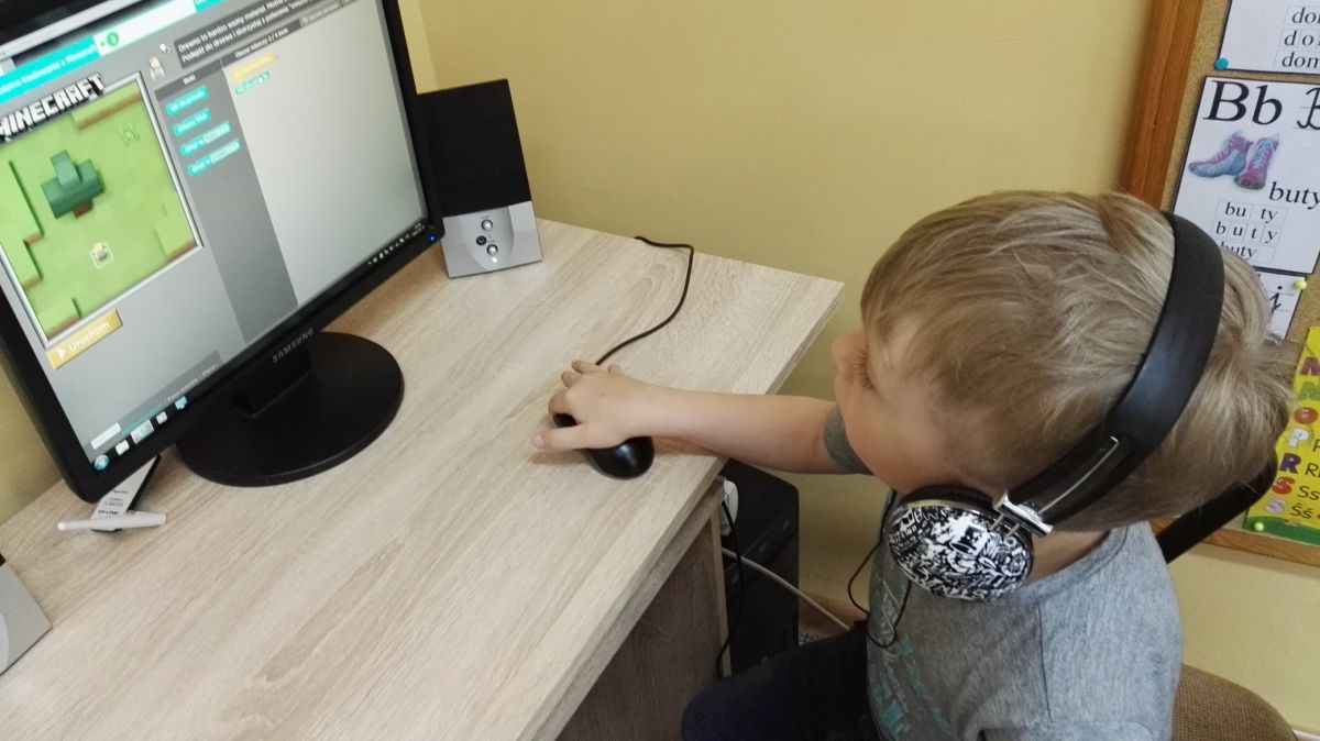 Wykorzystując nasze stanowisko komputerowe dzieci indywidualnie pracują na różnych programach. Na zdjęciach chłopcy - którzy testują możliwości programu: studio.code.org Chwilami było ciężko, ale z pomocą pani dali radę :)