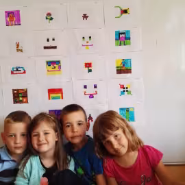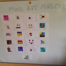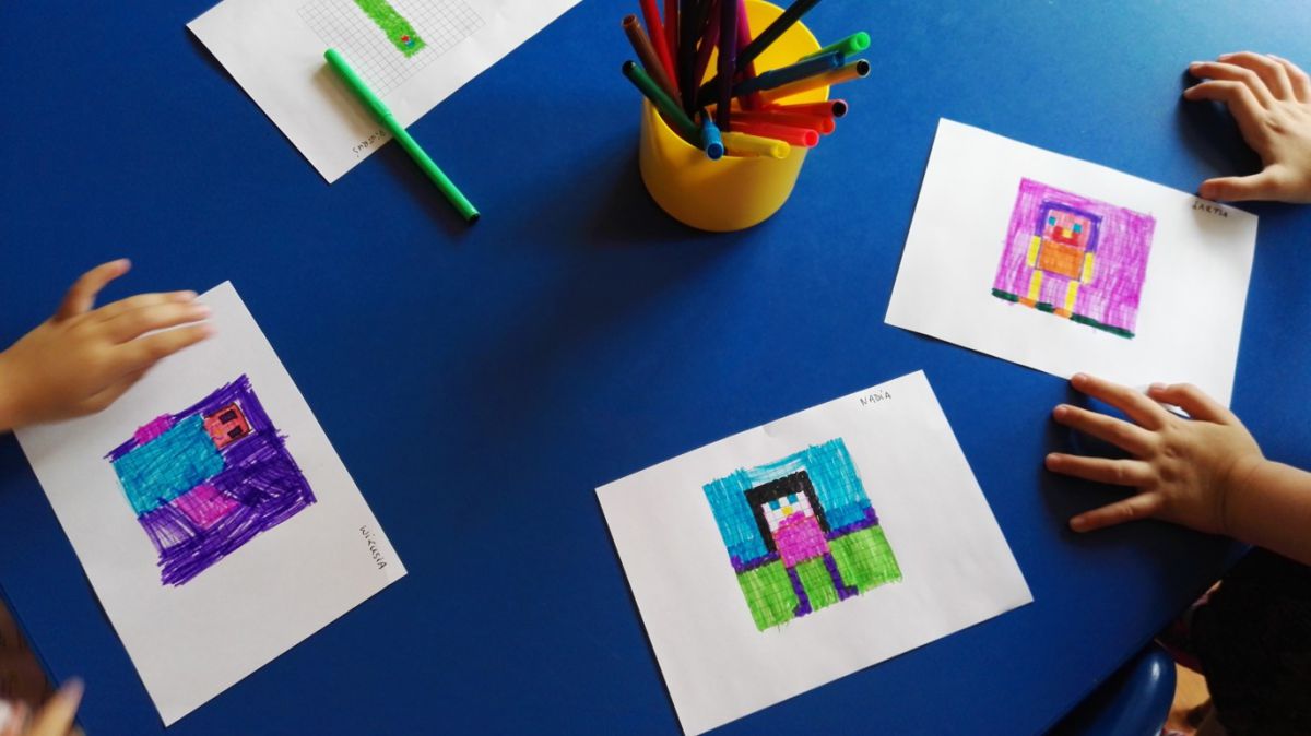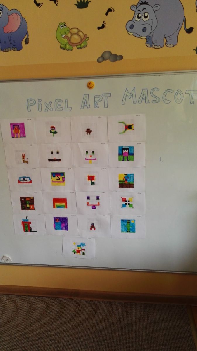 W zeszłym tygodniu urządziliśmy w naszej grupie konkurs na maskotkę PIXEL ART MASCOT - czyli nasza maskotka z pikseli, która będzie promowała nasze przedszkole w projekcie międzynarodowym eTwinning (w którym obecnie bierzemy udział). Najpierw tworzyliśmy projekt na kartce papieru (kratka) z użyciem kolorowych mazaków. Następnie nanosiliśmy powstałe wzory w programie komputerowym "Pixel Art". W ten sposób kodowaliśmy zaprojektowane przez siebie rysunki. Drogą głosowania wybraliśmy dwie prace -Mai i Olka - gratulujemy !!! Prace te rezprezentują nasz kraj w projekcie "CODING FOR FUTURE BRAIN".