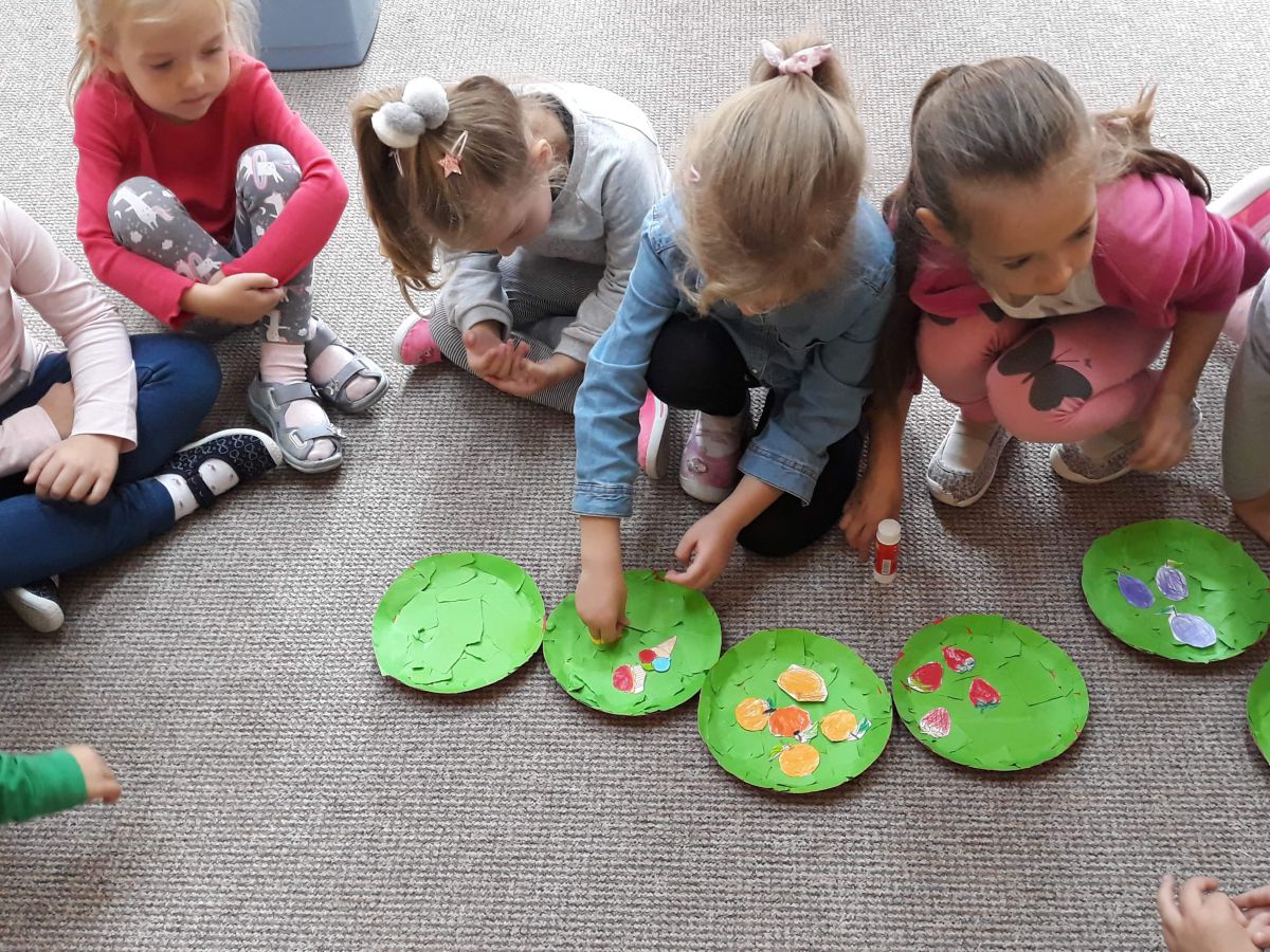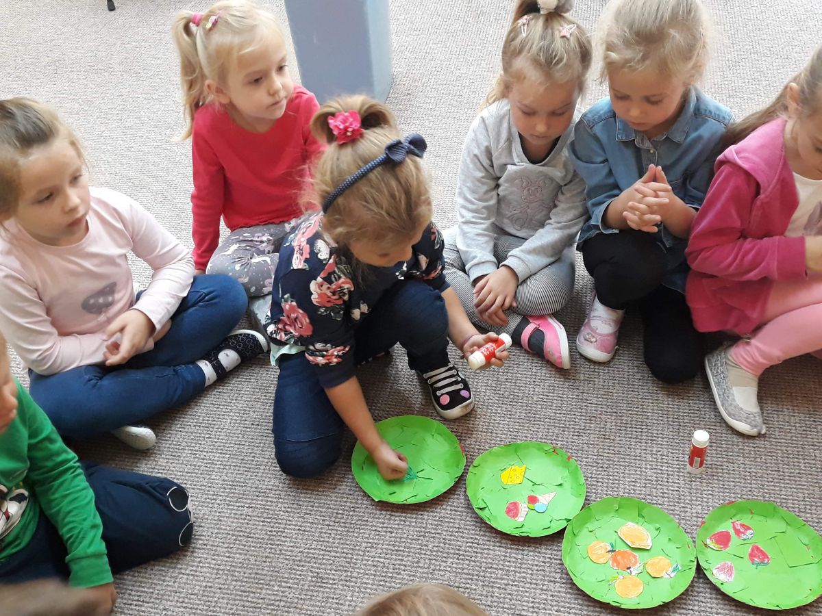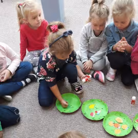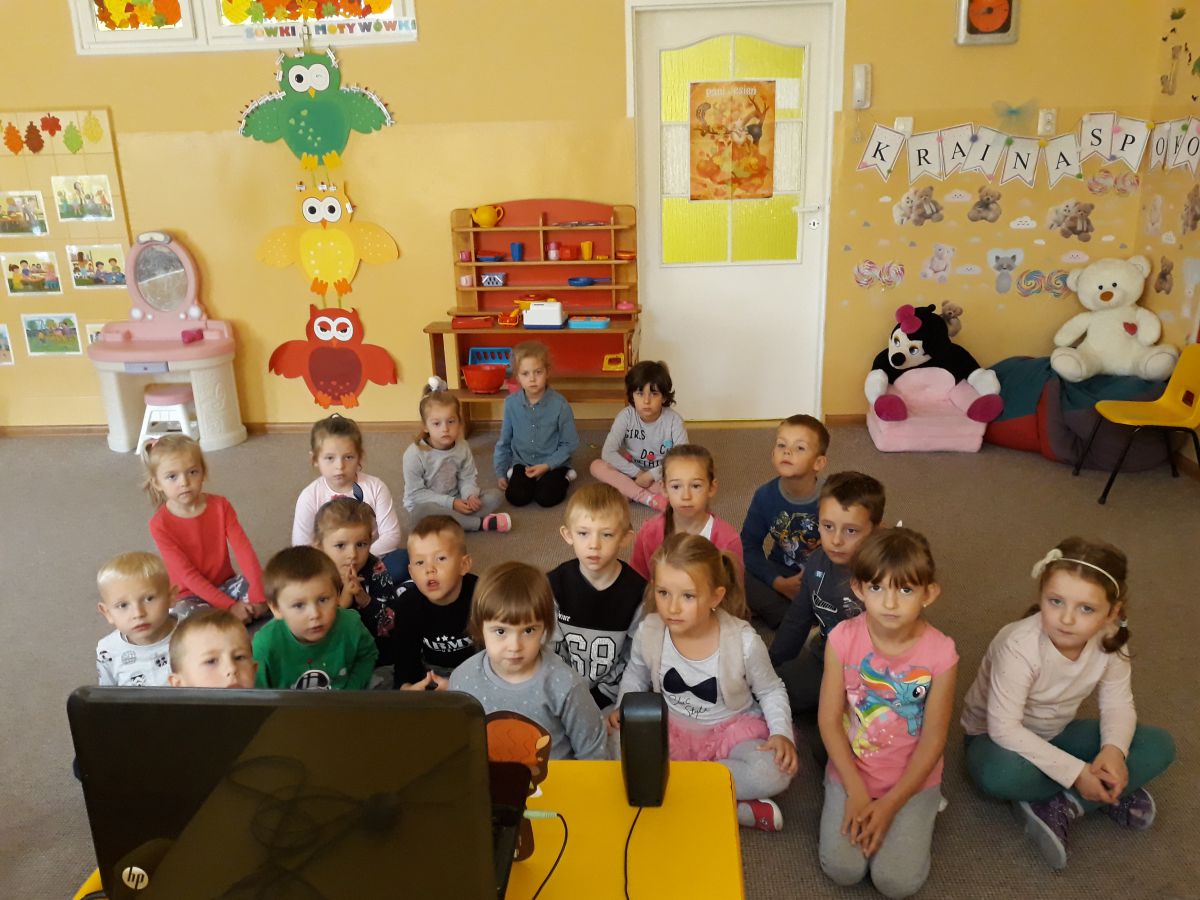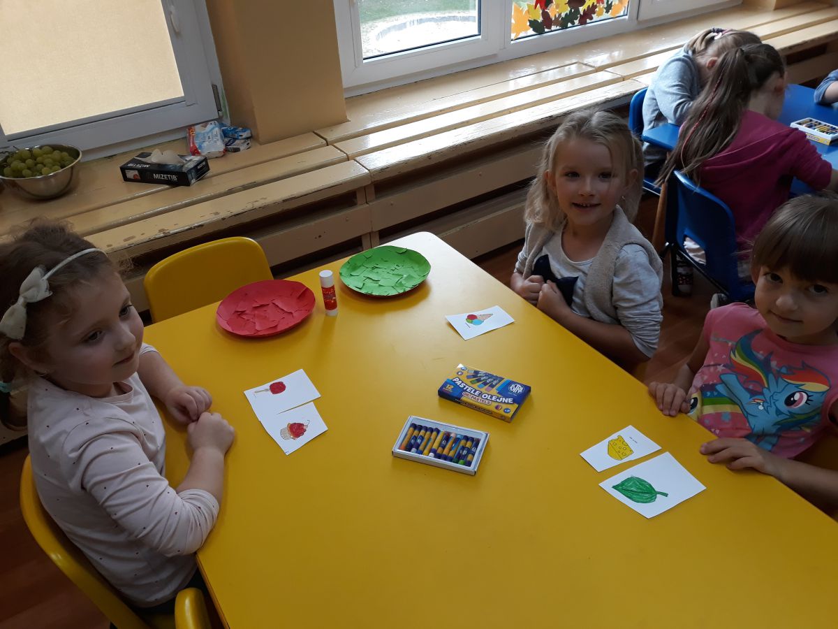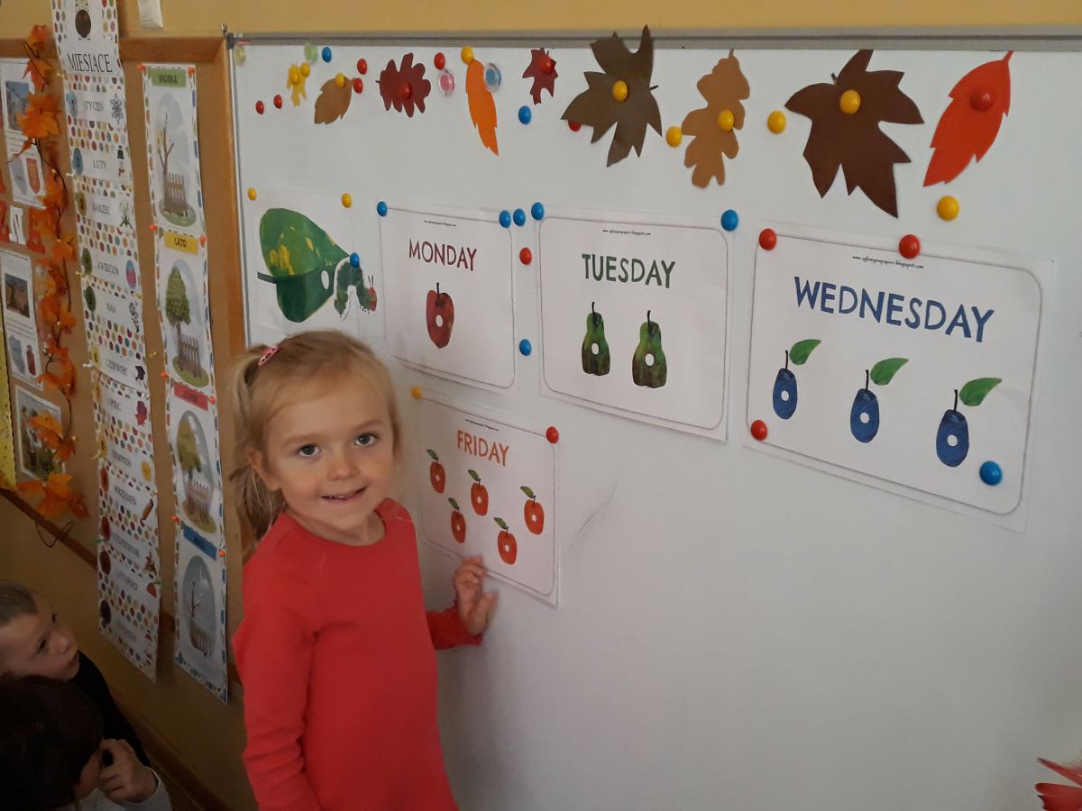 Krótka opowieść o małej głodnej gąsienicy, która każdego dnia zjadała cos innego, aż w końcu zamieniła się w pięknego motyla – The very hungry Caterpillar. Dzięki tej interesującej bajce udało nam się połączyć treści nauczania z zakresu przyrody i matematyki z językiem angielskim, co doskonale wpisuje się w stosowaną przez nas na zajęciach metodę - w skrócie nazywaną CLIL. Podczas zajęć, mieliśmy okazję utrwalić słownictwo głównie z zakresu nazw owoców, kolorów, a także liczb. Poznaliśmy również cykl życia gąsienicy i etapy jej rozwoju. Wykonaliśmy samodzielnie jej plastyczny model wykorzystując papierowe talerzyki, papier kolorowy oraz pokolorowane sylwety owoców i produktów, które potem przyklejaliśmy zgodnie z treścią bajki. Z pomocą olbrzymiej sylwety gąsienicy udało nam się jeszcze raz odtworzyć jej historię krok po kroku. Na koniec nasza „ Caterpillar” powędrowała na grupową wystawę, gdzie można ją podziwiać.
