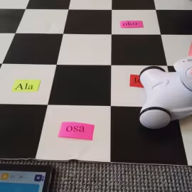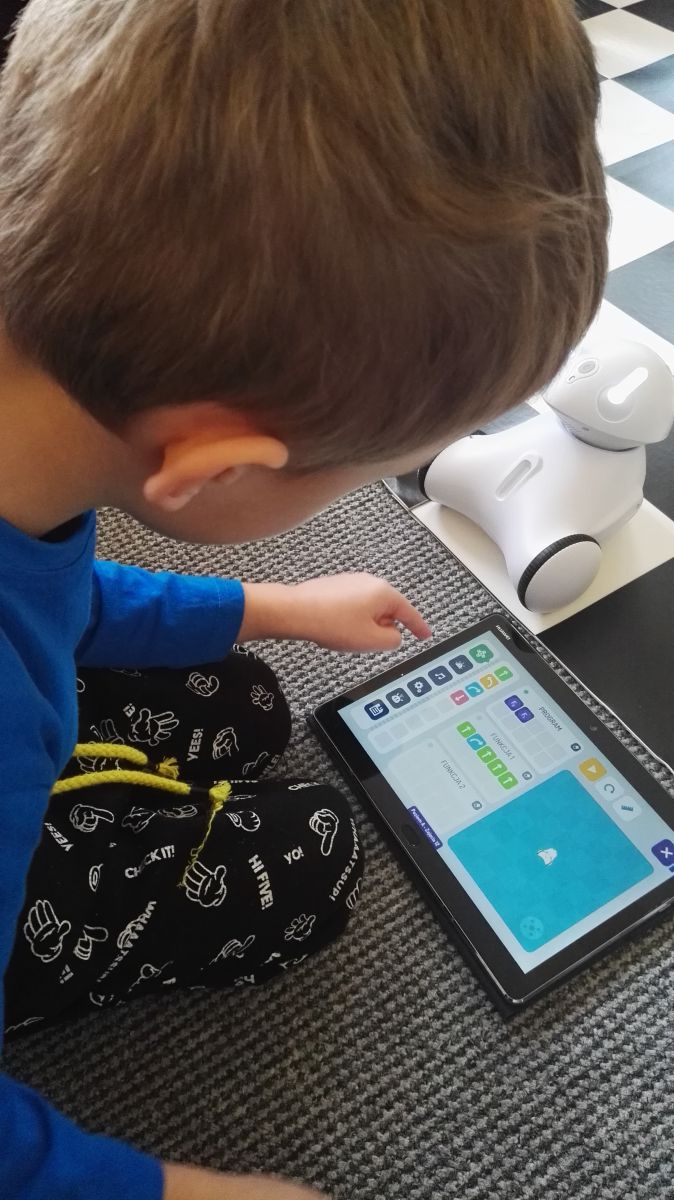 To, że uczymy się kodować, to już wszyscy wiedzą :) W tym roku łączymy przyjemne z pożytecznym - wykorzystujemy PHOTONA do odkrywania liter. Na zdjęciach zajęcia związane z odkrywaniem litery "T", Photon pomagał nam rozwiązać dość trudne zadanie - szukaliśmy głoski "t" na początku, w środku i na końcu wyrazów.