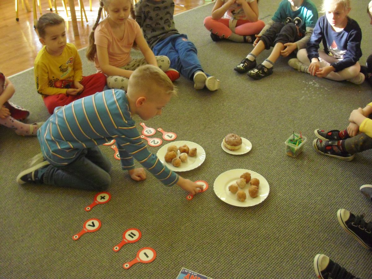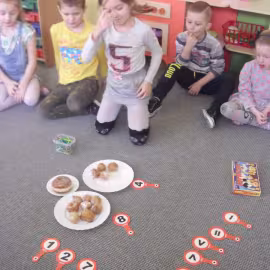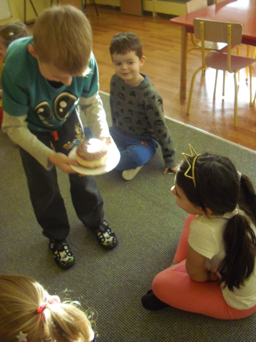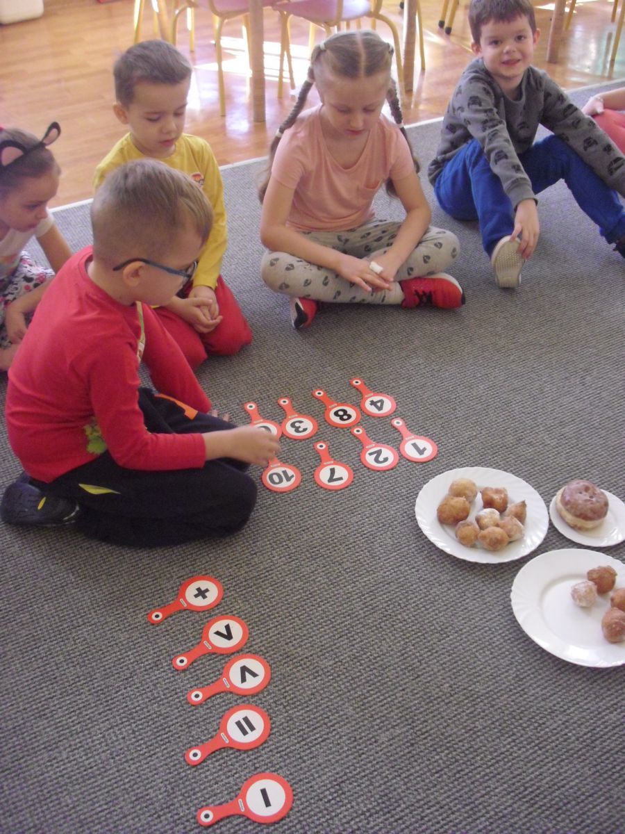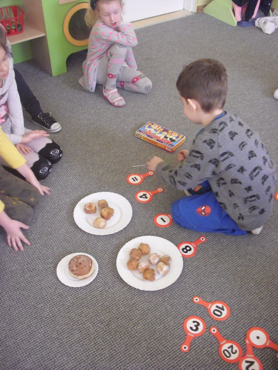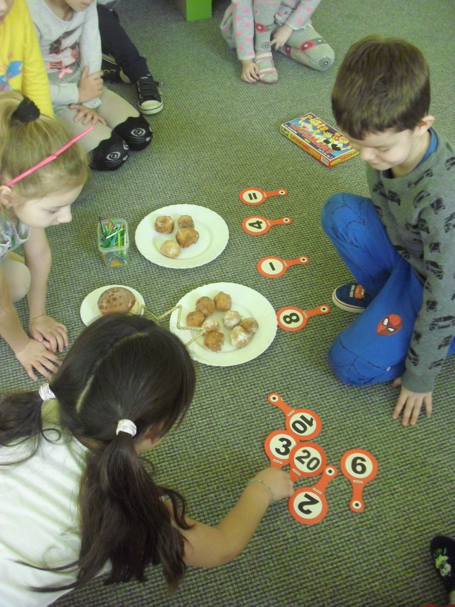 W tym roku tłusty czwartek obchodziliśmy 28 lutego . Najważniejszym akcentem tłustego czwartku są pączki. Oczywiście nie odbyło się bez ich degustacji. Wszyscy zajadali się słodkimi pysznościami. Była to okazja do świetnej zabawy, ale także do przypomnienia i kultywowania naszych narodowych tradycji i zwyczajów. Przy okazji przeliczaliśmy pączki, utrwaliliśmy znaki większości i mniejszości. Taki zwyczaj bardzo nam się podoba i jesteśmy jego gorącymi zwolennikami.