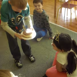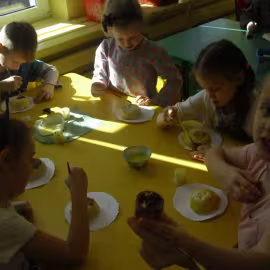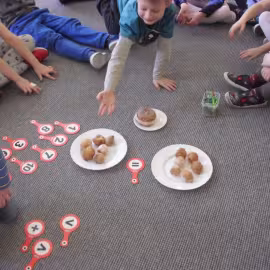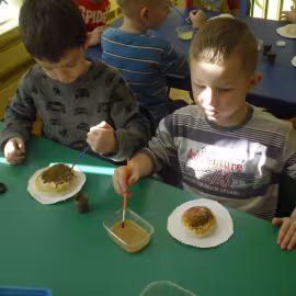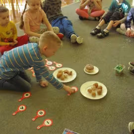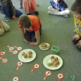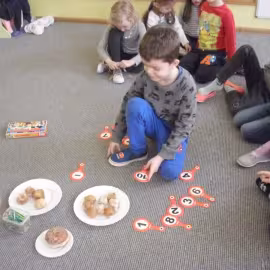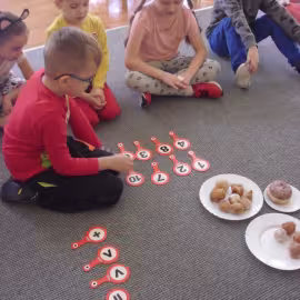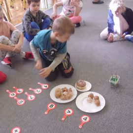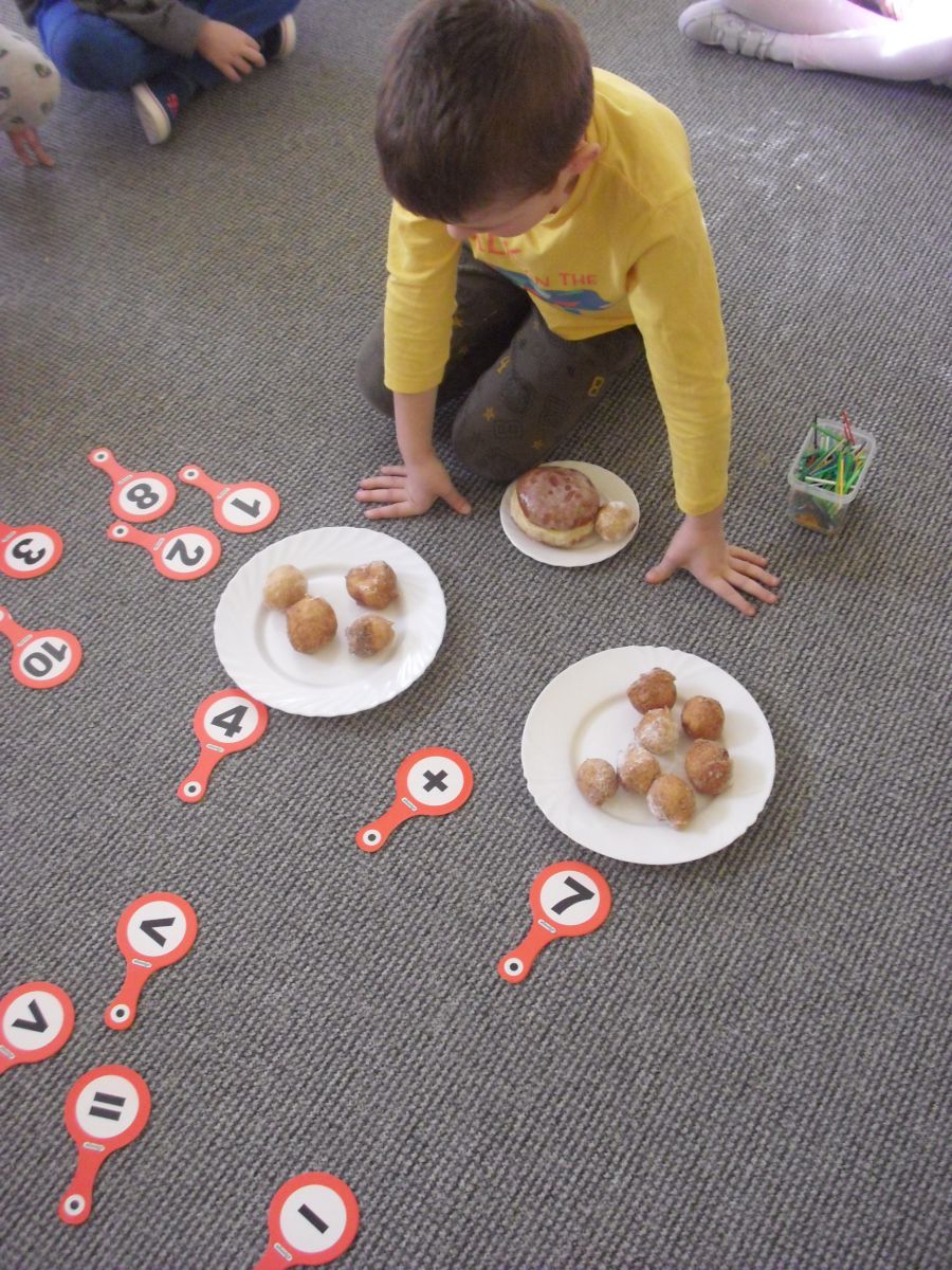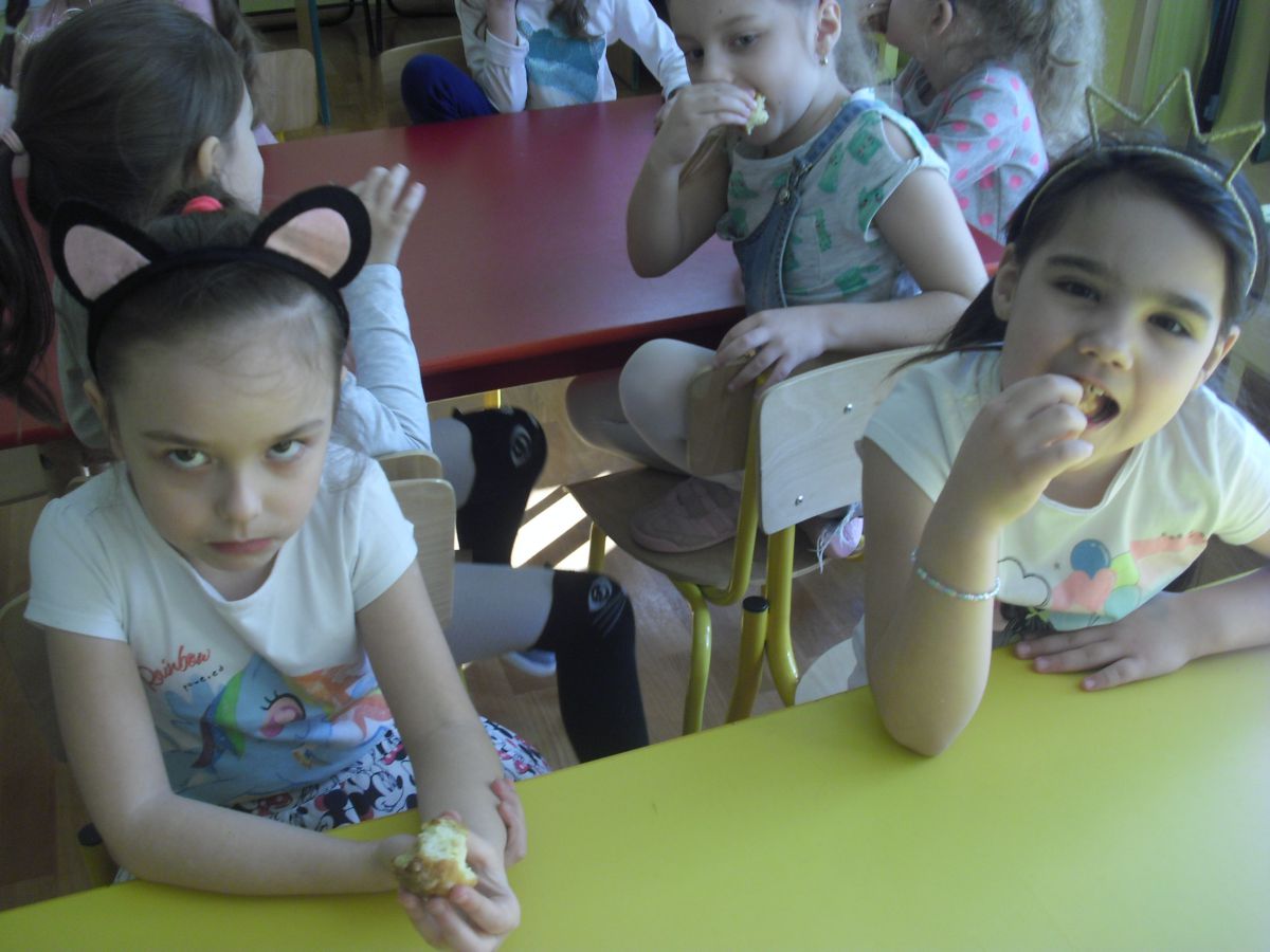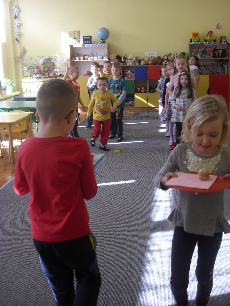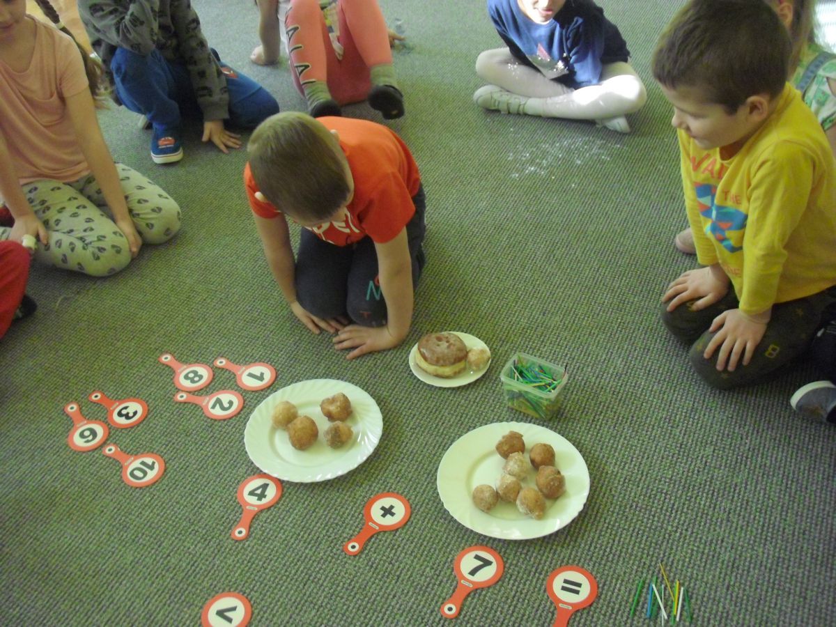 W tym roku tłusty czwartek obchodziliśmy 28 lutego . Najważniejszym akcentem tłustego czwartku są pączki. Oczywiście nie odbyło się bez ich degustacji. Wszyscy zajadali się słodkimi pysznościami. Była to okazja do świetnej zabawy, ale także do przypomnienia i kultywowania naszych narodowych tradycji i zwyczajów. Przy okazji przeliczaliśmy pączki, utrwaliliśmy znaki większości i mniejszości. Taki zwyczaj bardzo nam się podoba i jesteśmy jego gorącymi zwolennikami.