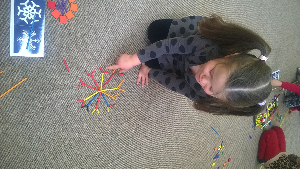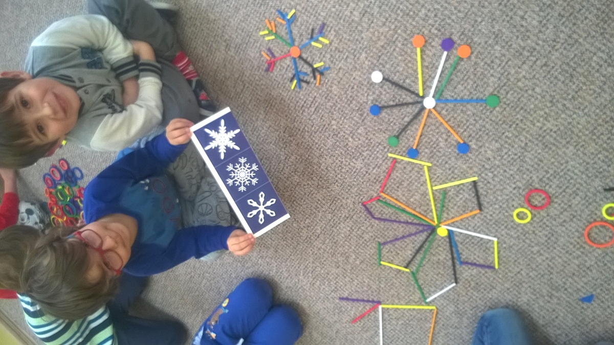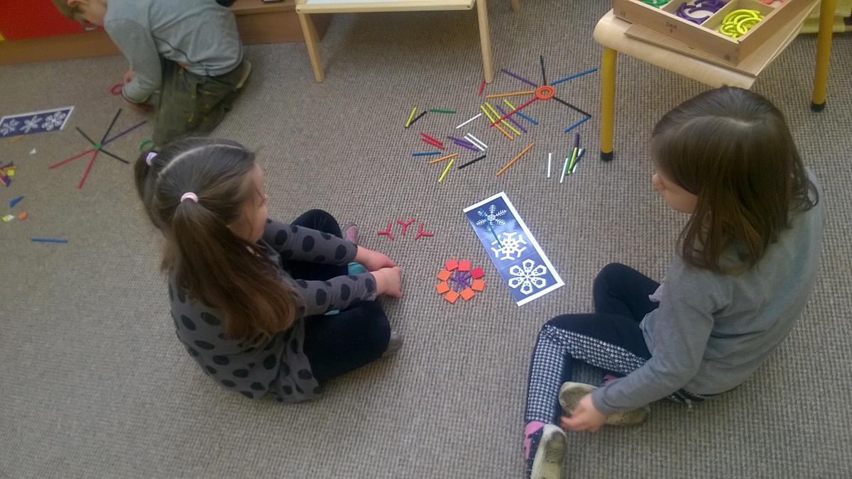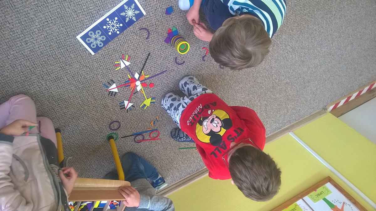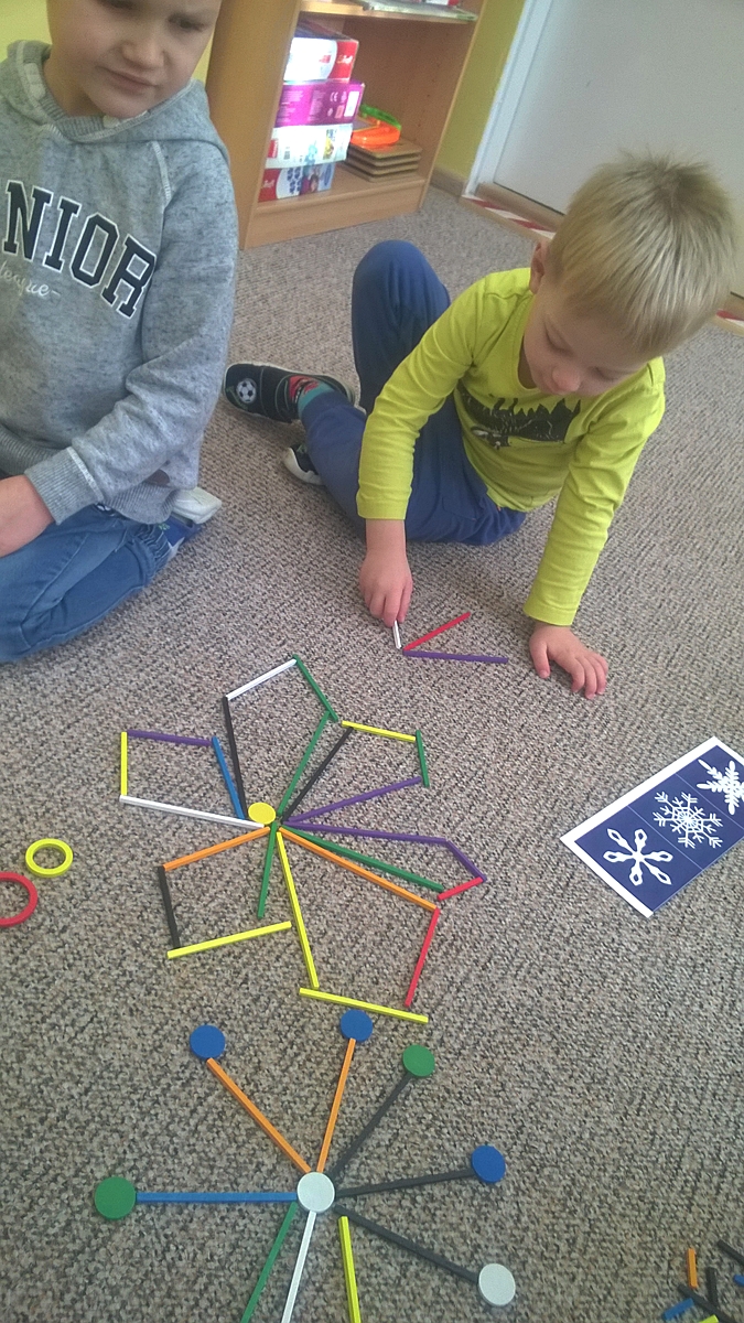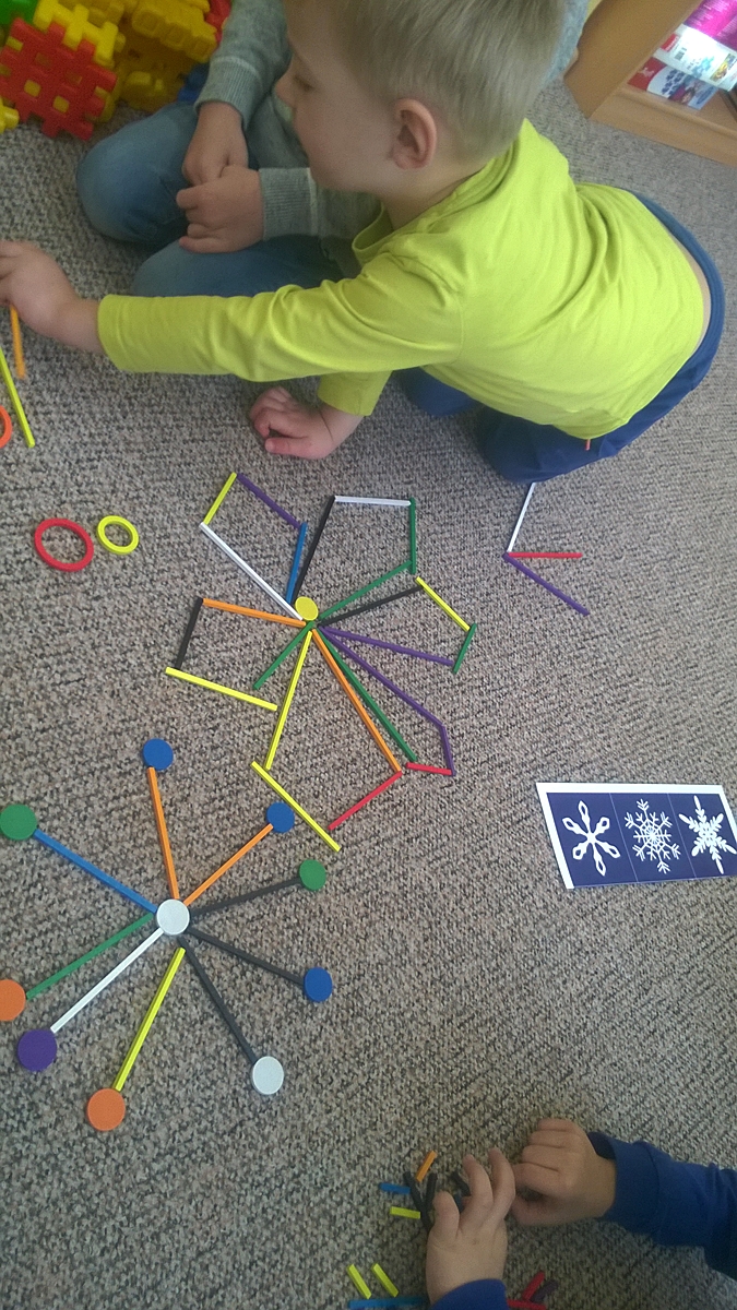 Układanie rytmicznych wzorów śnieżynek z wykorzystaniem KLOCKÓW FROEBLA