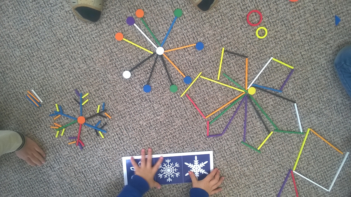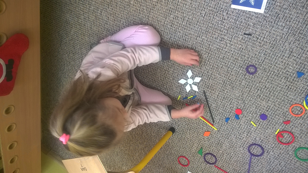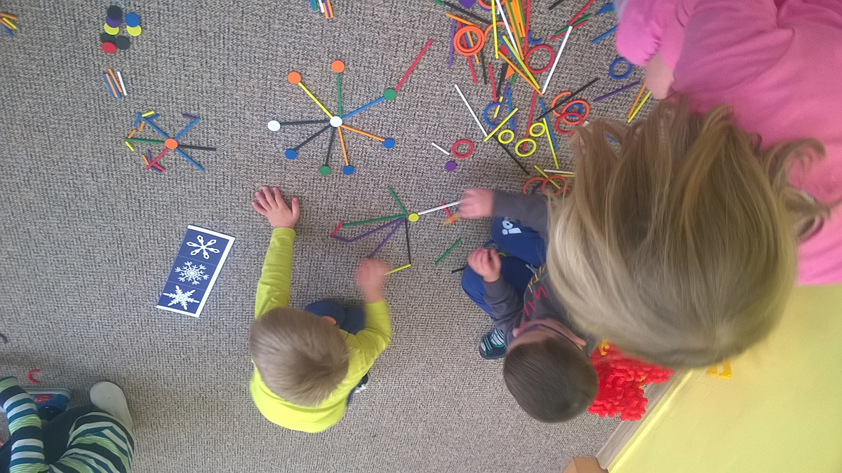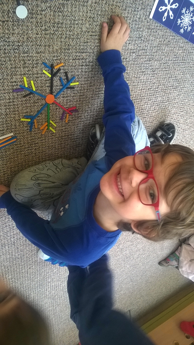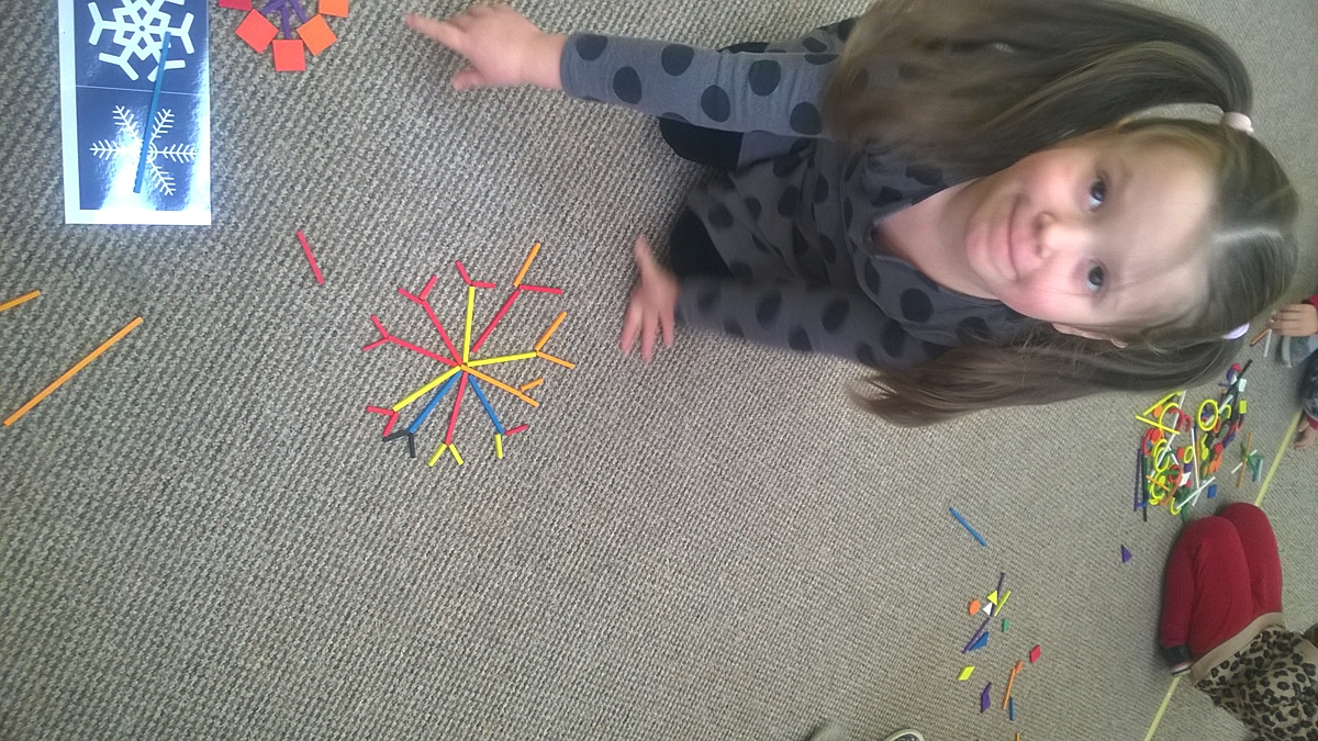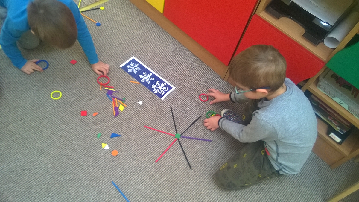 Układanie rytmicznych wzorów śnieżynek z wykorzystaniem KLOCKÓW FROEBLA