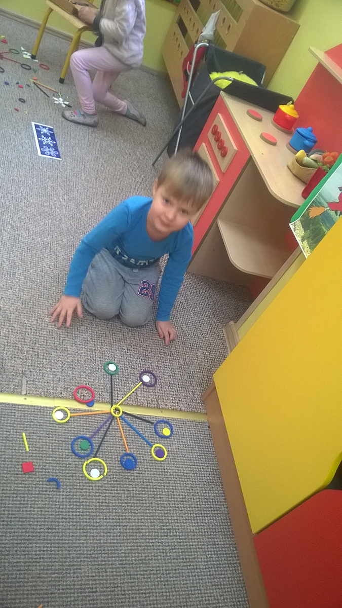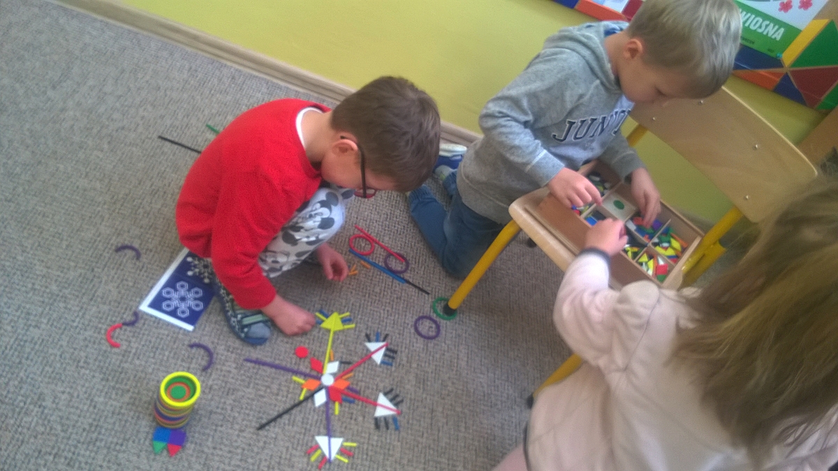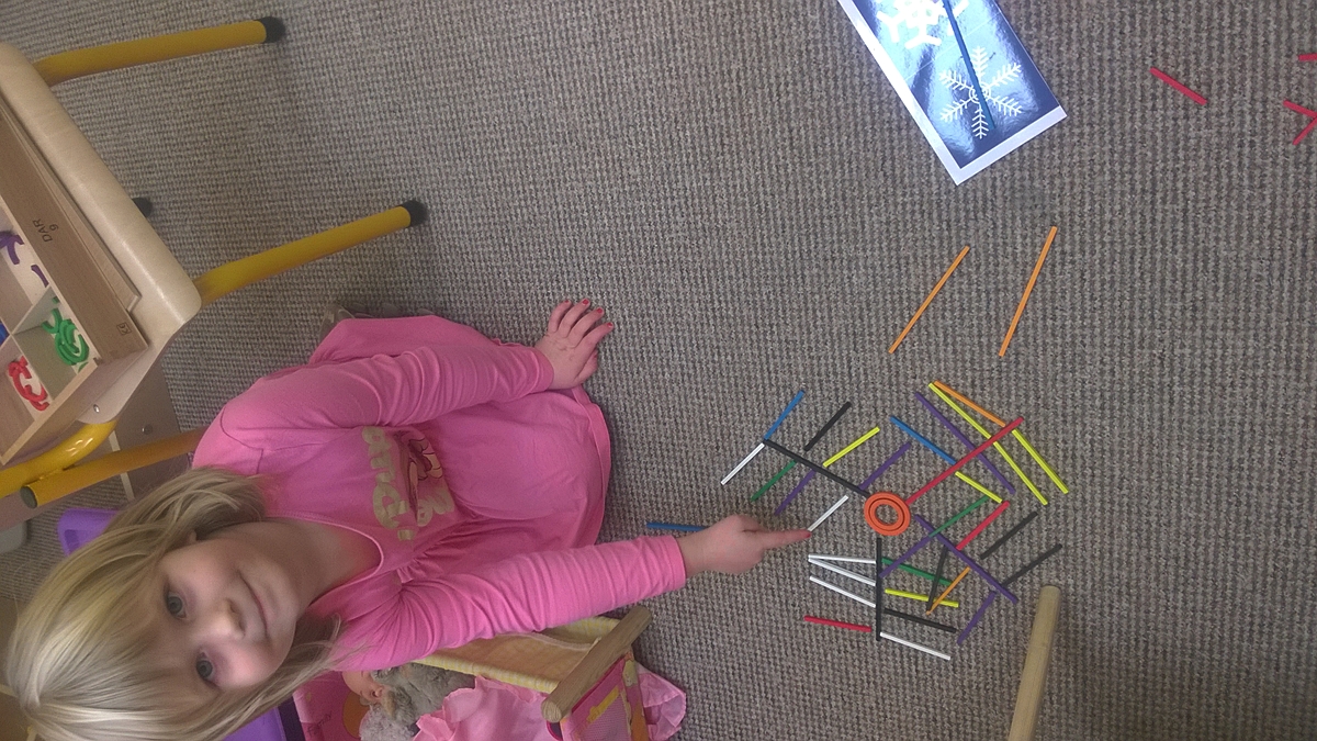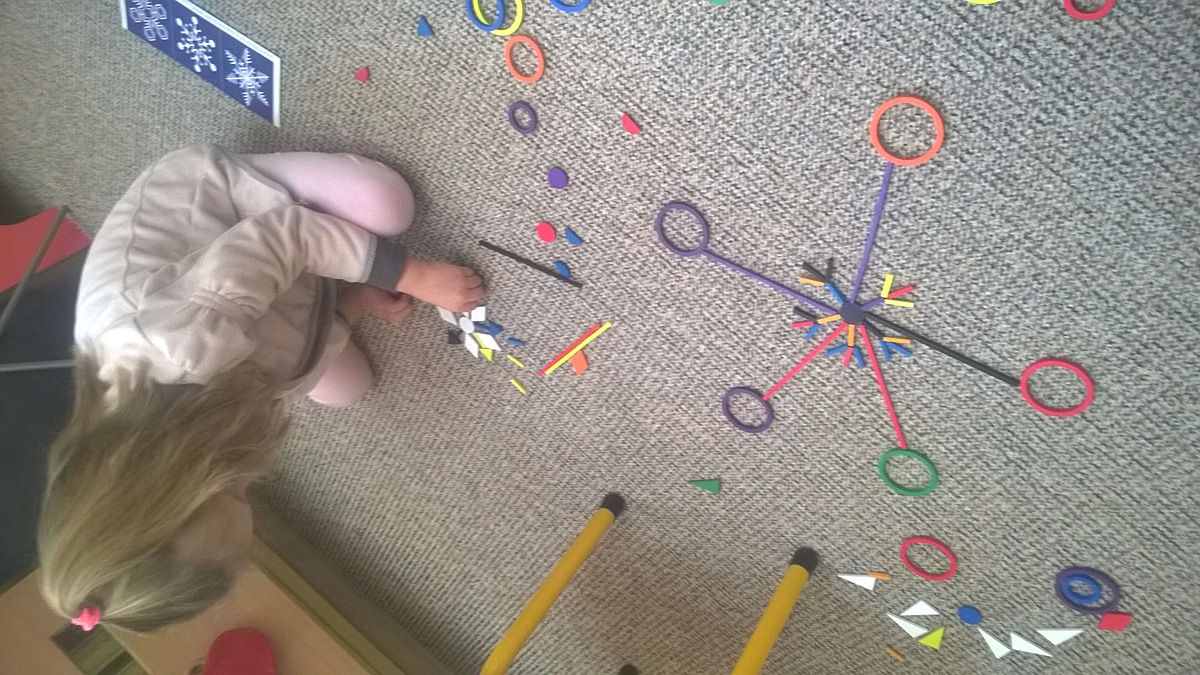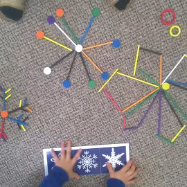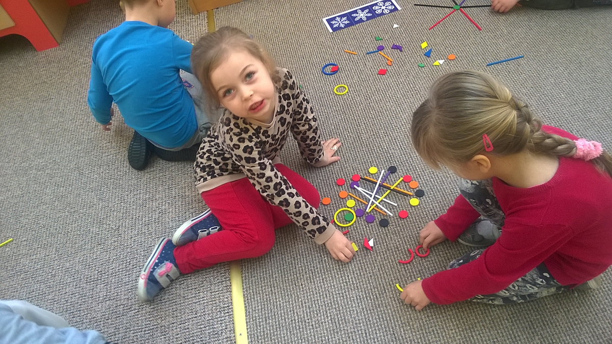 Układanie rytmicznych wzorów śnieżynek z wykorzystaniem KLOCKÓW FROEBLA