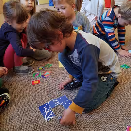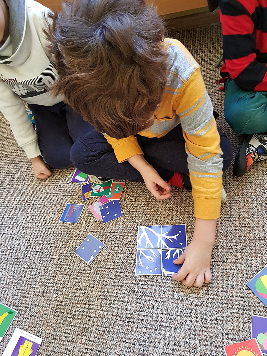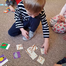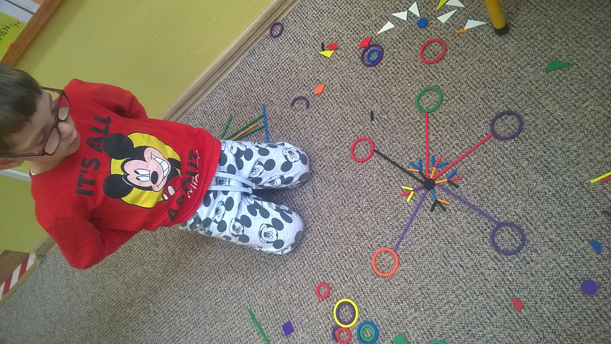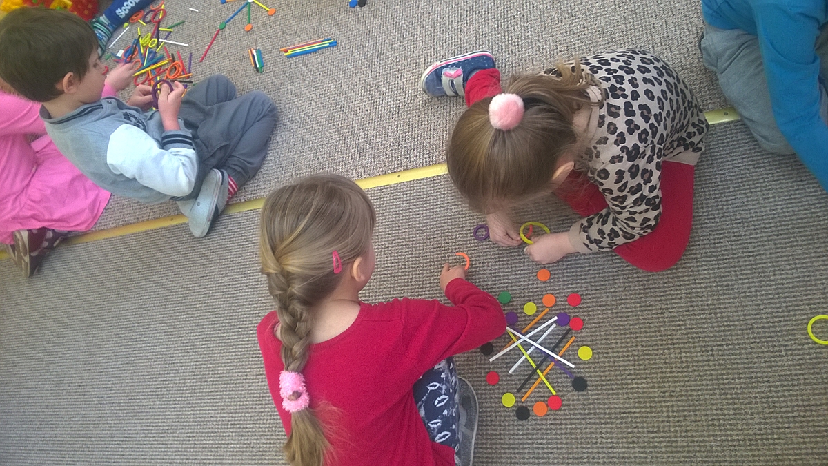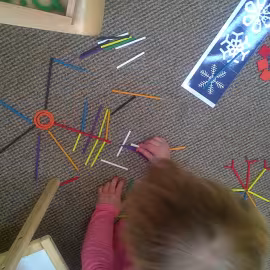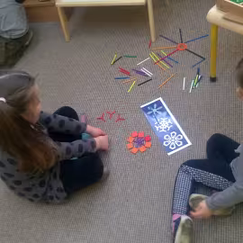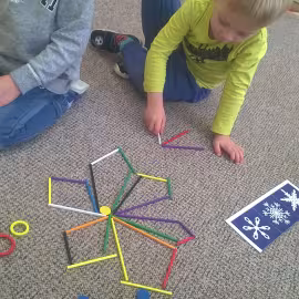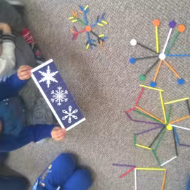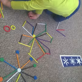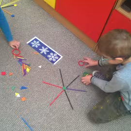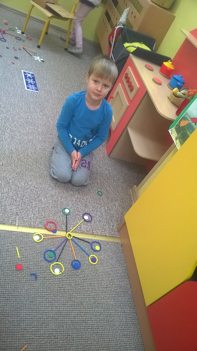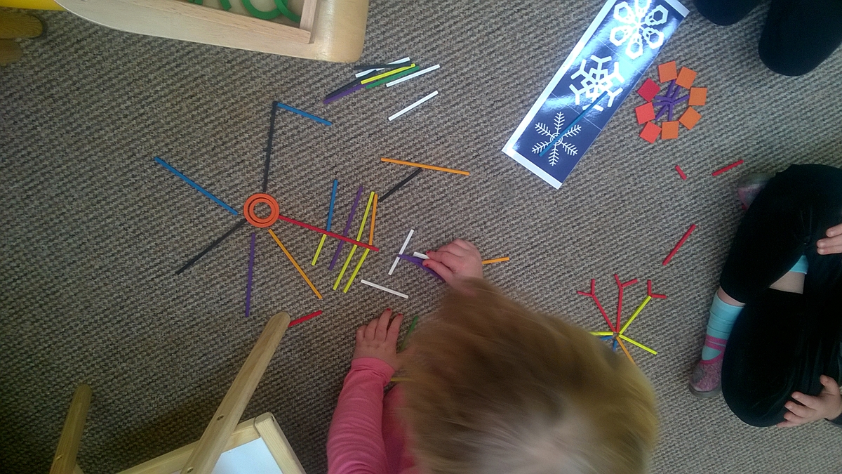 Układanie rytmicznych wzorów śnieżynek z wykorzystaniem KLOCKÓW FROEBLA
