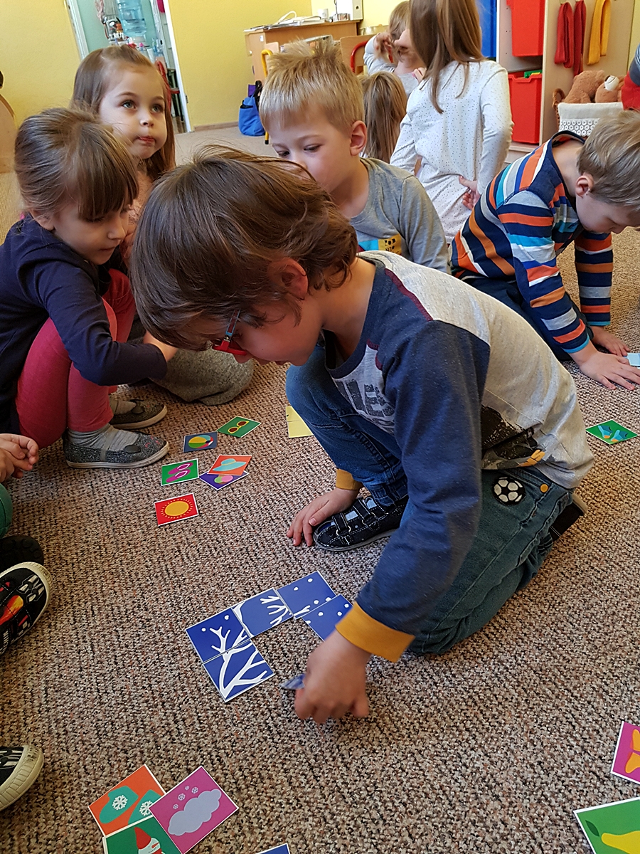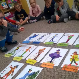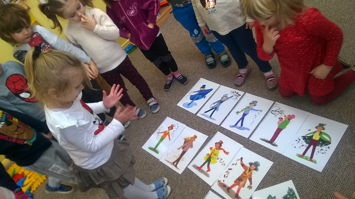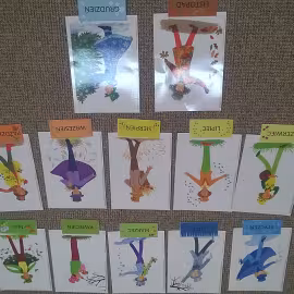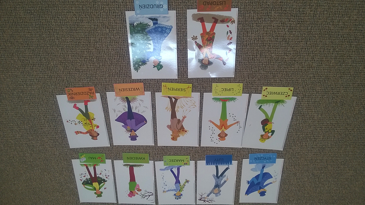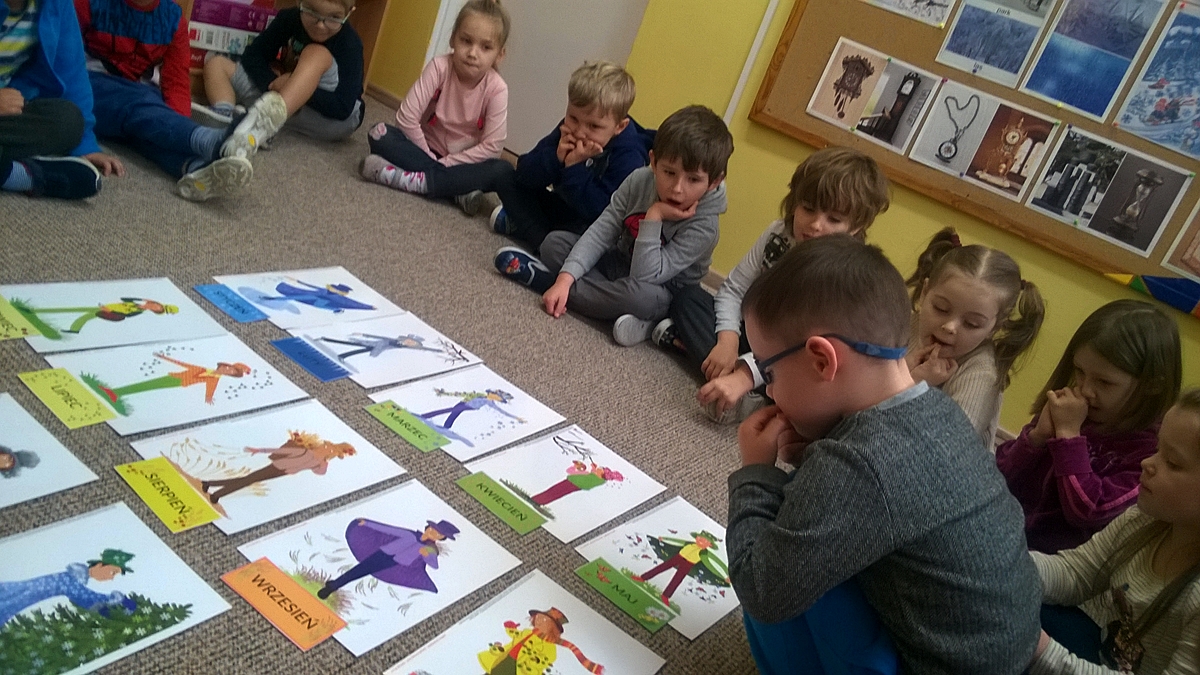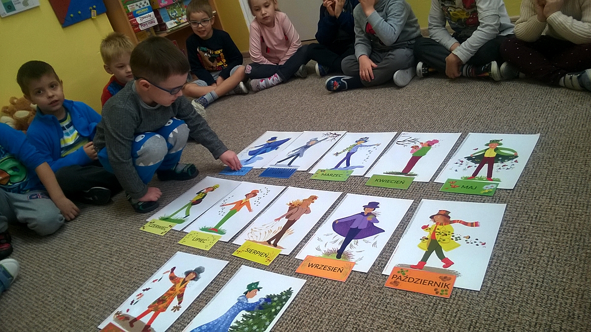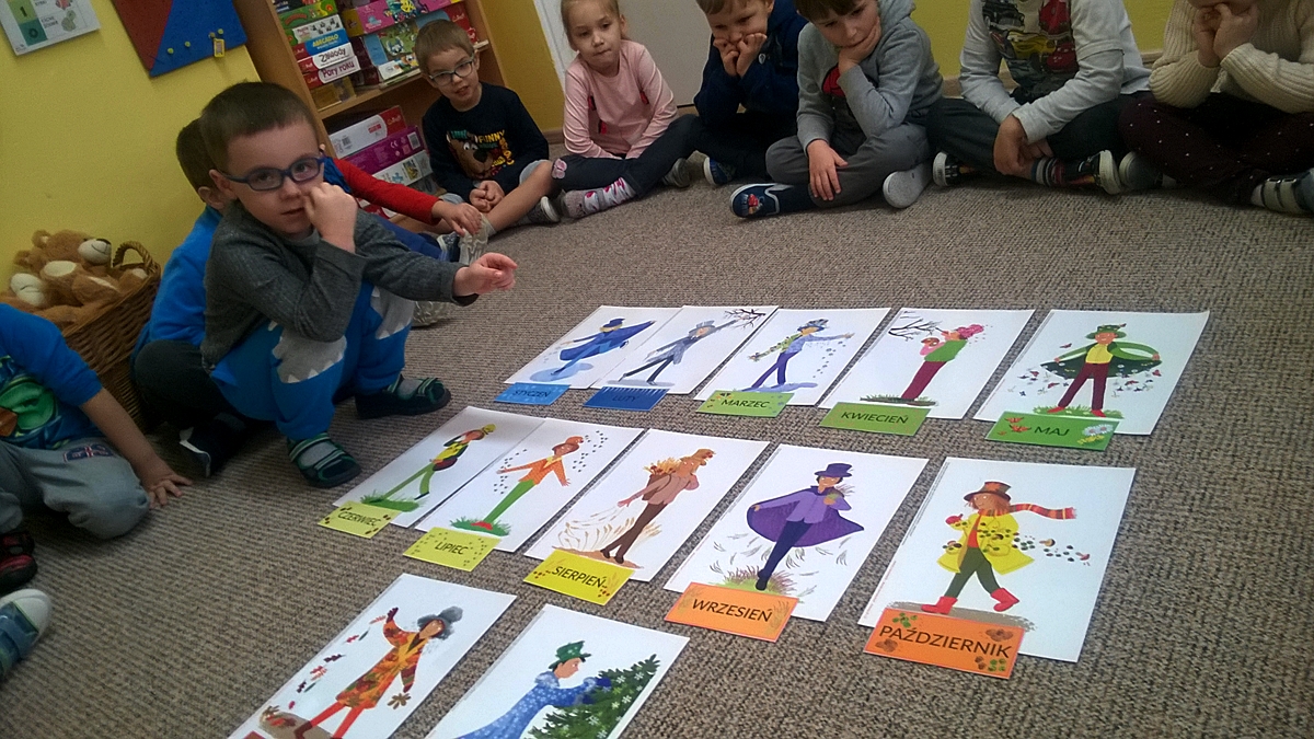 - dostrzeganie następstwa pór roku, dni tygodnia, miesięcy w roku oraz układanie kalendarzy z zaznaczeniem regularności,