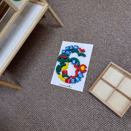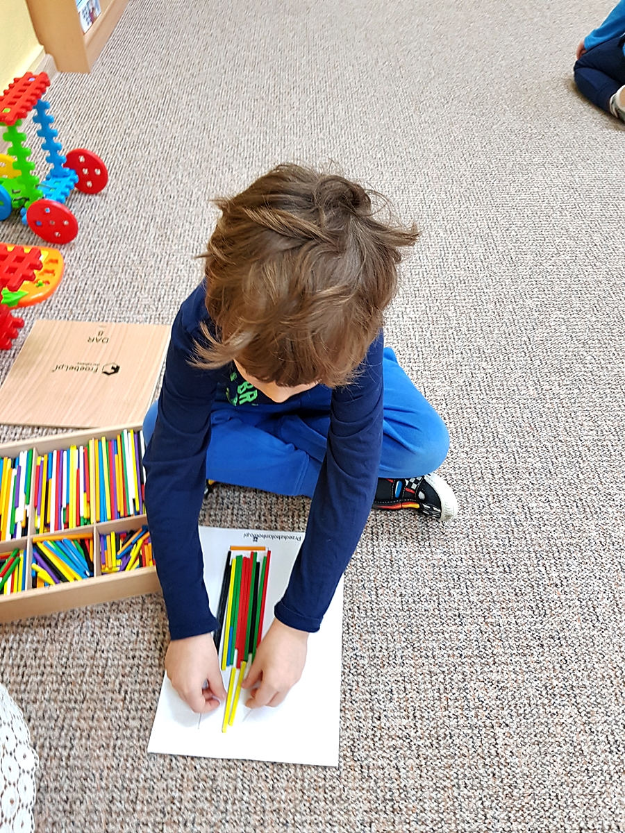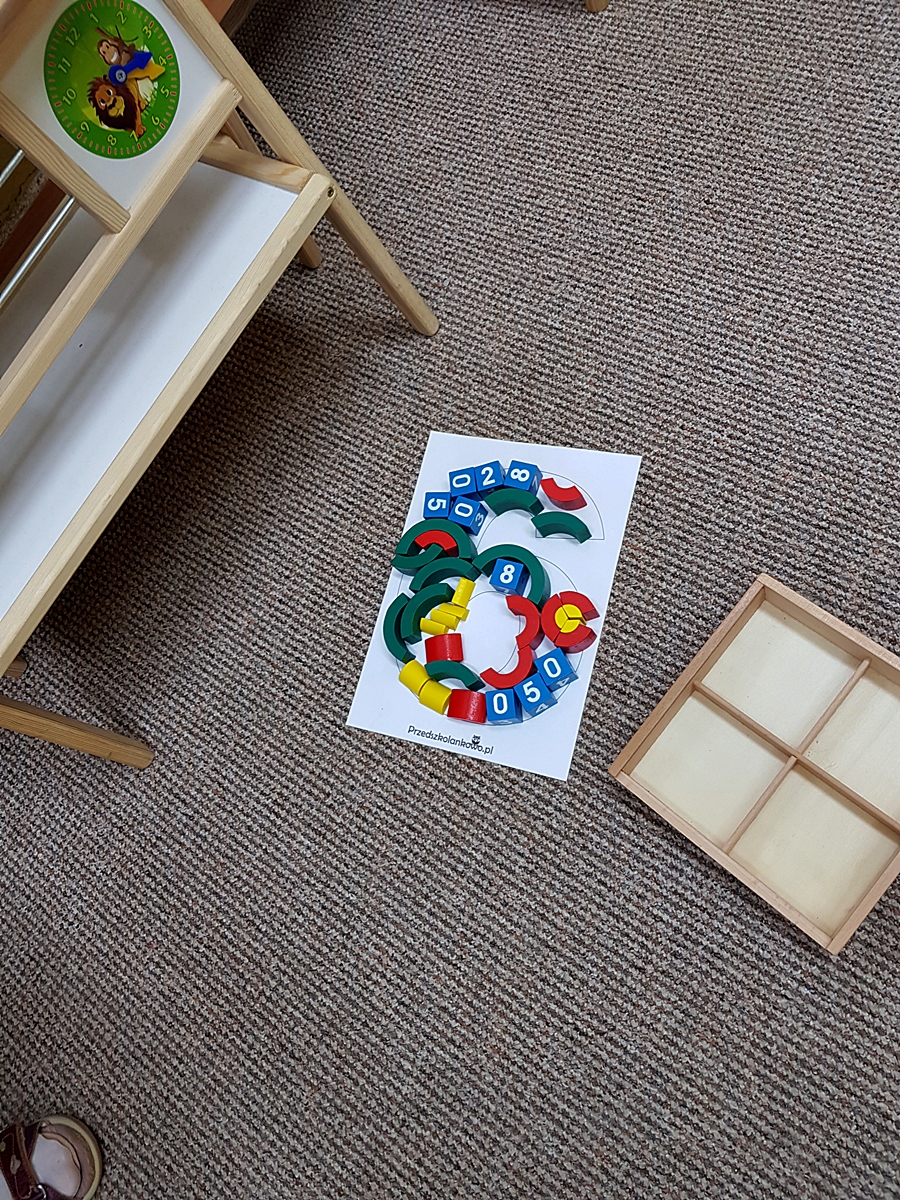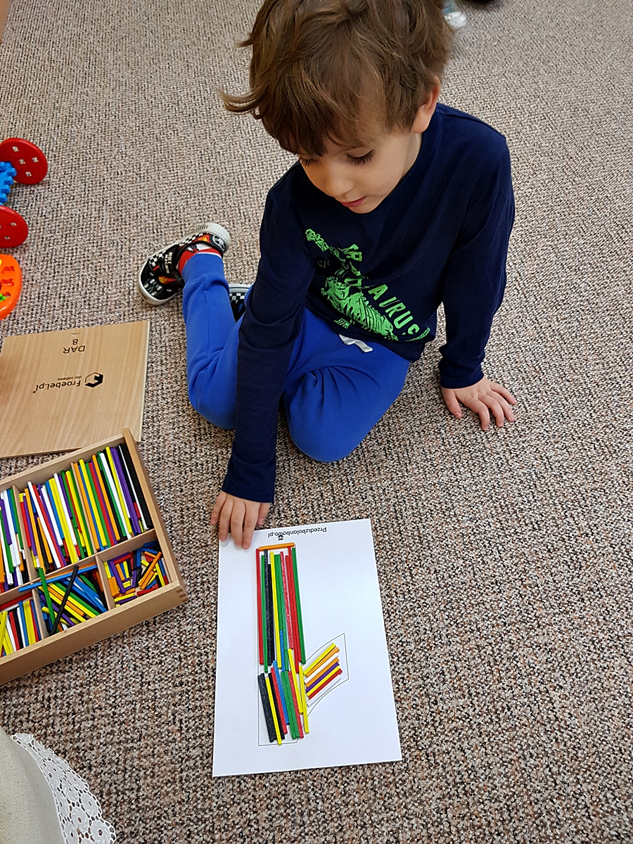 Aktywności z guzikami połączyliśmy z zabawami KLOCKAMI FROEBLA jak widać na zdjęciach.