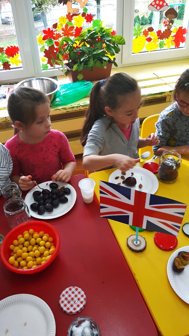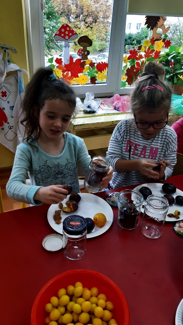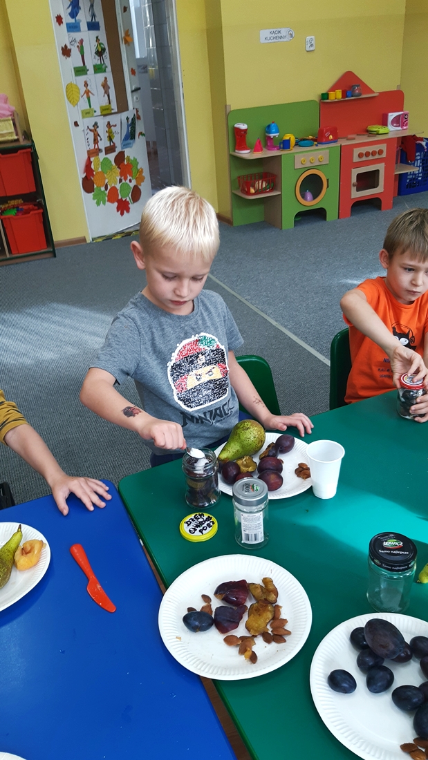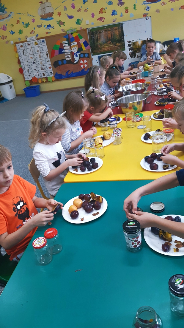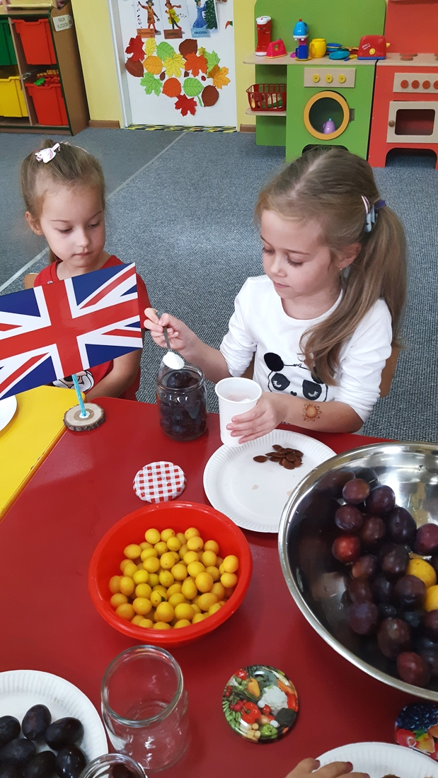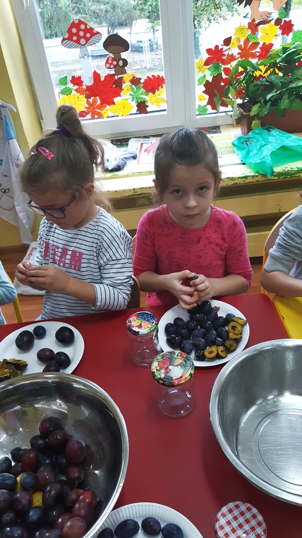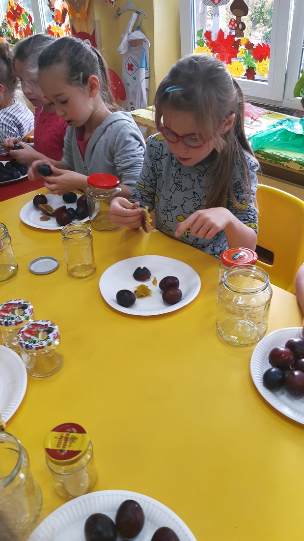Miniony tydzień upłynął nam owocowo. Jesienne sady obfitują w jabłka, gruszki i śliwki, więc wraz z przedszkolakami postanowiliśmy zrobić z nich przetwory – kompoty owocowe. Najpierw obejrzeliśmy film edukacyjny pt. „Zakręcone owoce”, następnie omówiliśmy krok po kroku zasady wykonywania kompotów owocowych, również w języku angielskim. Następnie przystąpiliśmy do działania. Nasze kompoty będą prawdziwym przysmakiem na zimowe dni w przedszkolu!