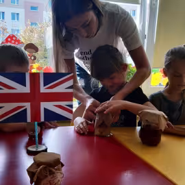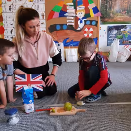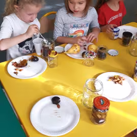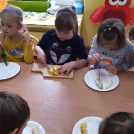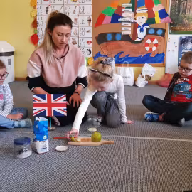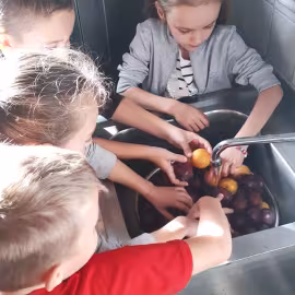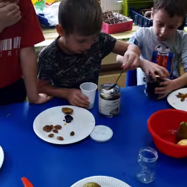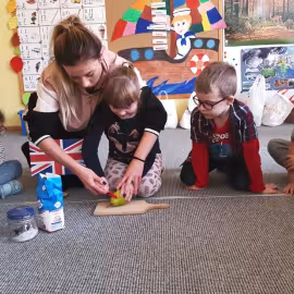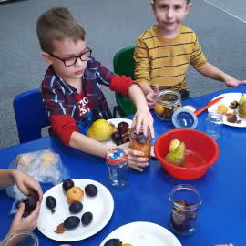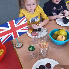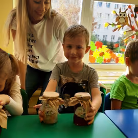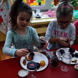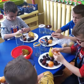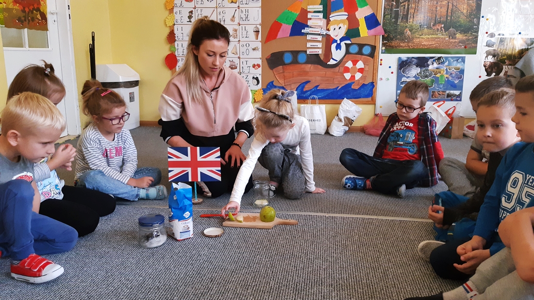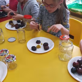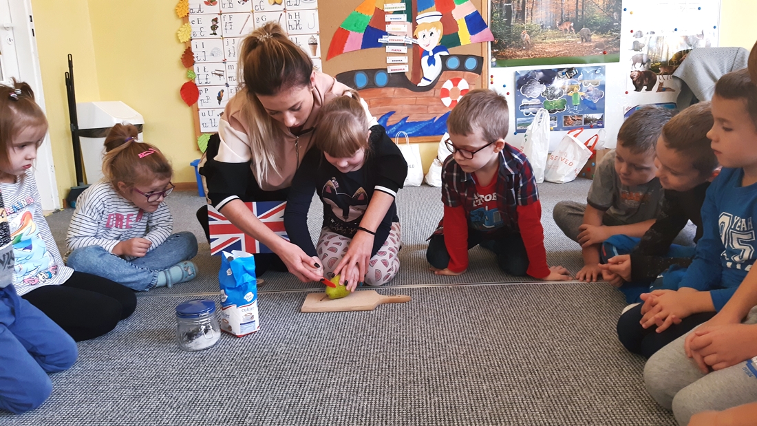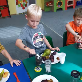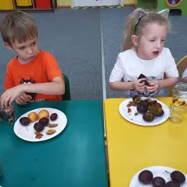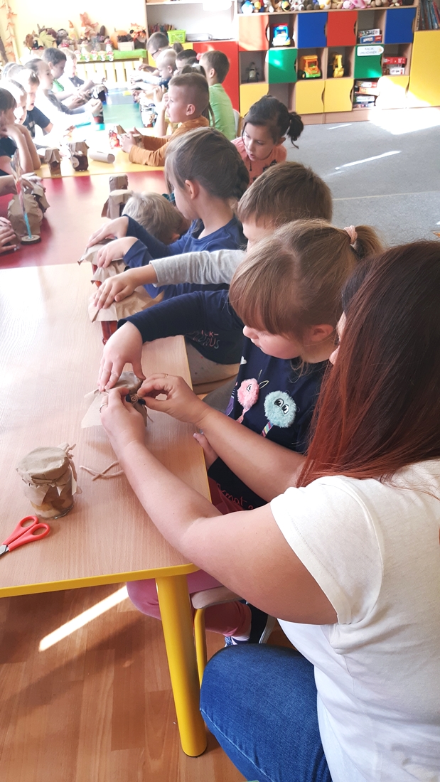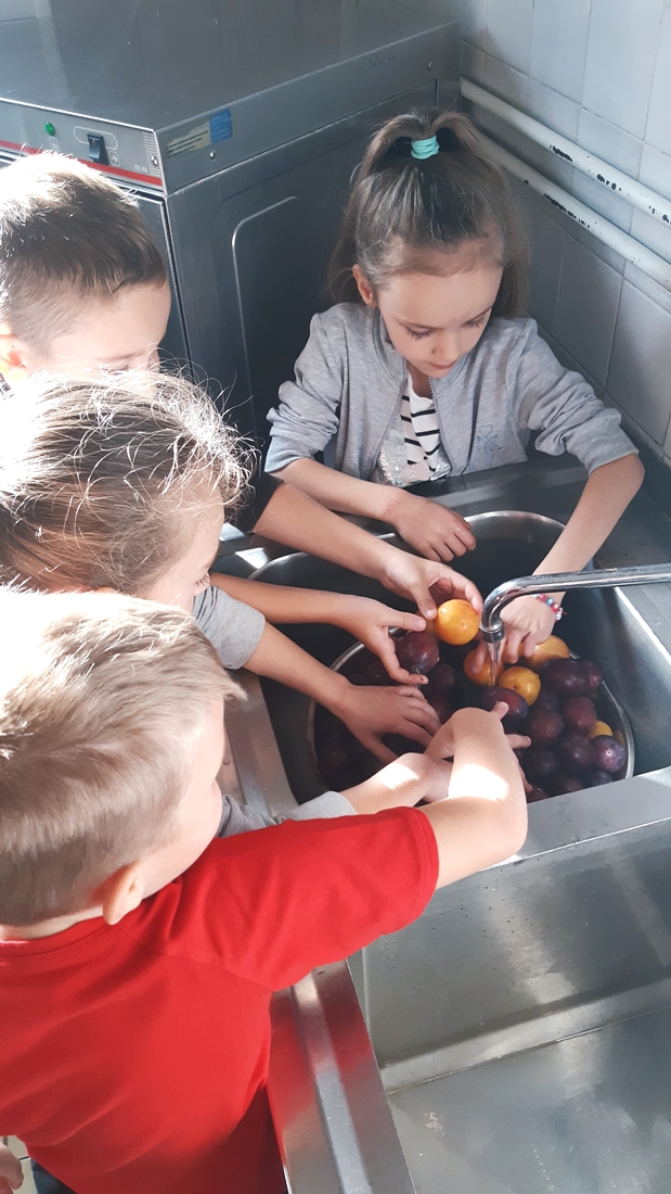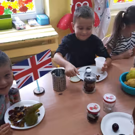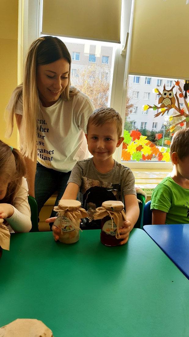 Miniony tydzień upłynął nam owocowo. Jesienne sady obfitują w jabłka, gruszki i śliwki, więc wraz z przedszkolakami postanowiliśmy zrobić z nich przetwory – kompoty owocowe. Najpierw obejrzeliśmy film edukacyjny pt. „Zakręcone owoce”, następnie omówiliśmy krok po kroku zasady wykonywania kompotów owocowych, również w języku angielskim. Następnie przystąpiliśmy do działania. Nasze kompoty będą prawdziwym przysmakiem na zimowe dni w przedszkolu!