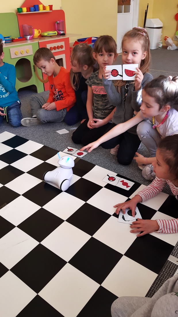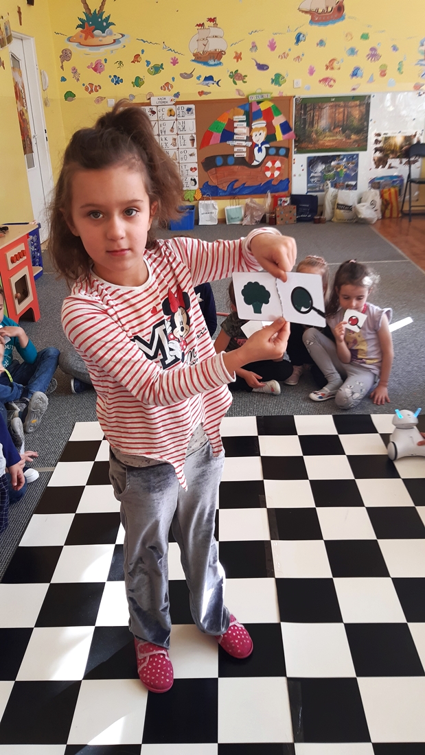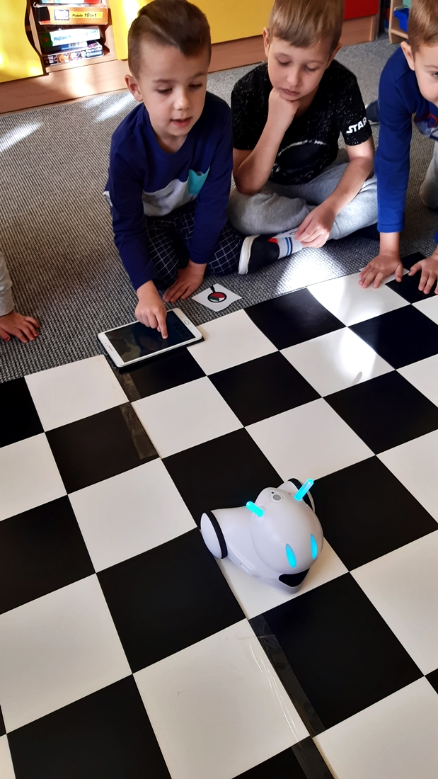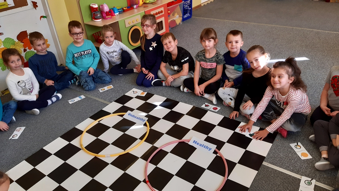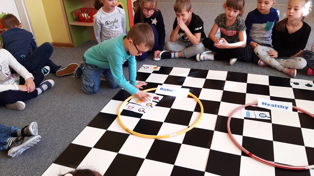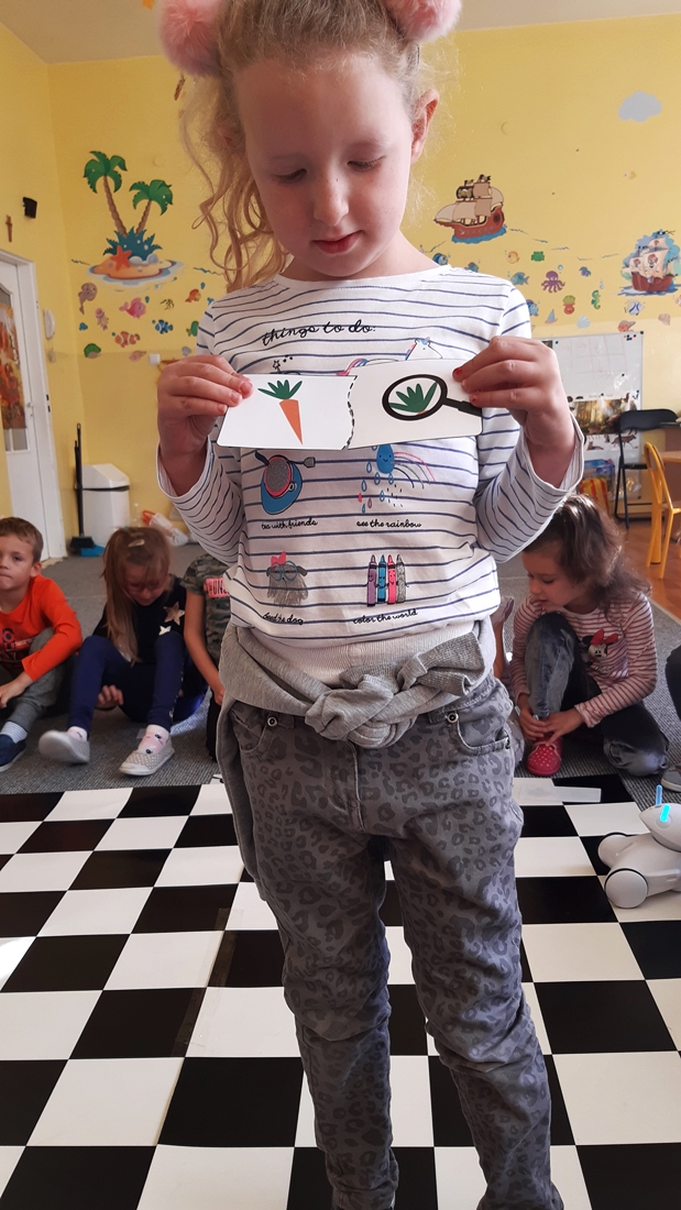 Realizując tematykę dotyczącą dbania o własne zdrowie, grupa „Żeglarzy” i „Marynarzy” w zabawie dydaktycznej „Healthy and Unhealthy Food” z wykorzystaniem robota edukacyjnego Photon, dokonała klasyfikacji zdrowej i niezdrowej żywności posługując się wybranymi słówkami w języku angielskim.