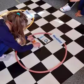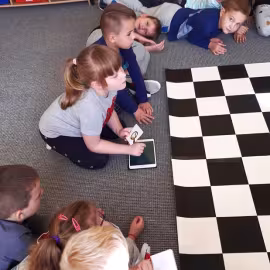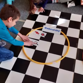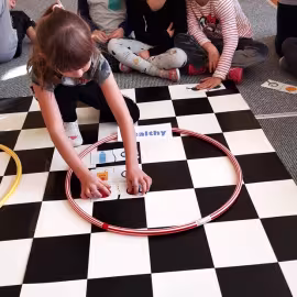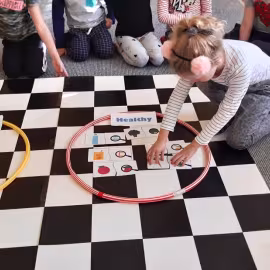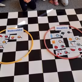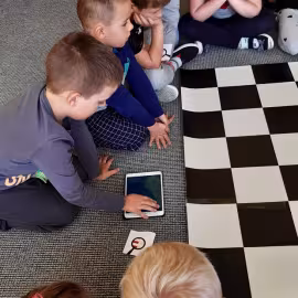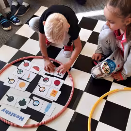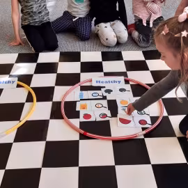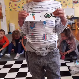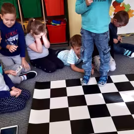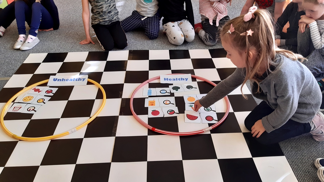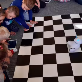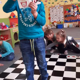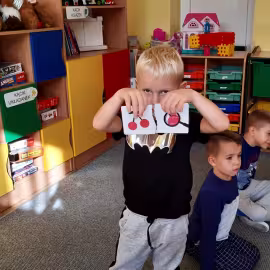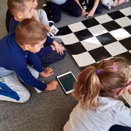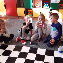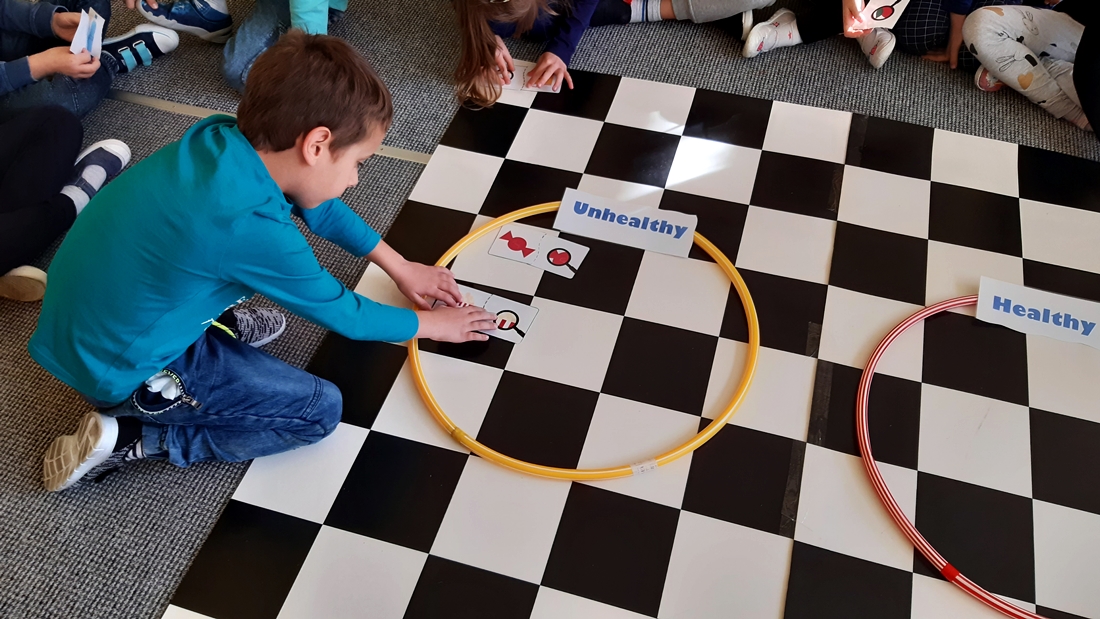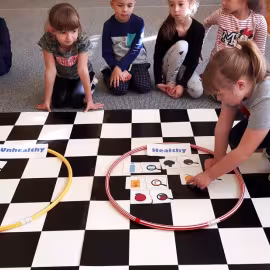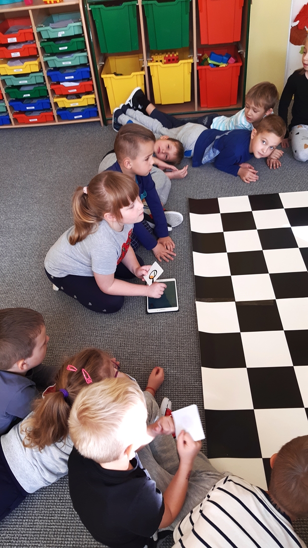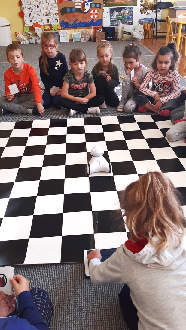 Realizując tematykę dotyczącą dbania o własne zdrowie, grupa „Żeglarzy” i „Marynarzy” w zabawie dydaktycznej „Healthy and Unhealthy Food” z wykorzystaniem robota edukacyjnego Photon, dokonała klasyfikacji zdrowej i niezdrowej żywności posługując się wybranymi słówkami w języku angielskim.