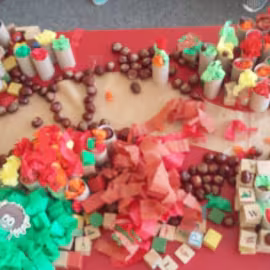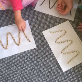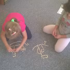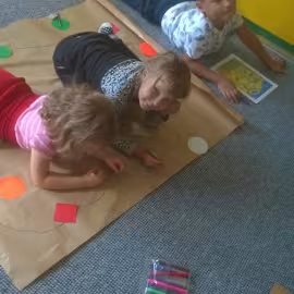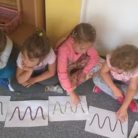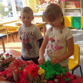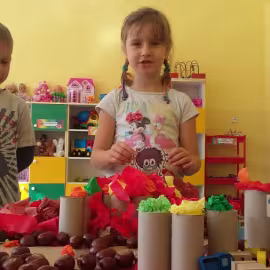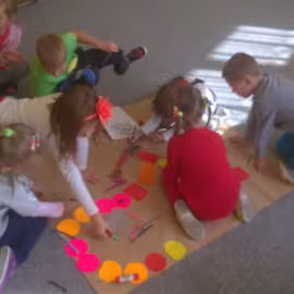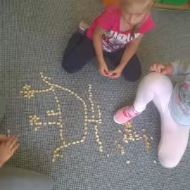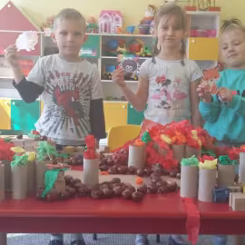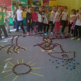 Pracujemy według założeń Fröbla .Rozwijamy u dzieci umiejętności matematyczne, postawę twórczą, umiejętność współpracy. Chcemy, aby dzieci bawiły się prostymi zabawkami, które maksymalnie rozwijają kreatywność. Chcemy, aby nasze dzieci były szczęśliwe. Wracamy więc do źródeł – pochylamy się nad dorobkiem i świetnymi pomysłami sprzed stu lat. Organizujemy interesujące, edukacyjne zabawy prowadzone metodą Fröbla podczas których dzieci rozwijają koordynację wzrokowo–ruchową, doskonalą umiejętność posługiwania się liczebnikami, a także utrwalają nazwy kolorów.