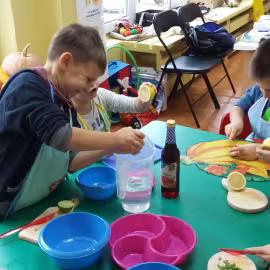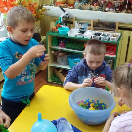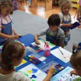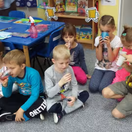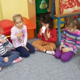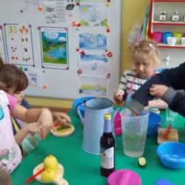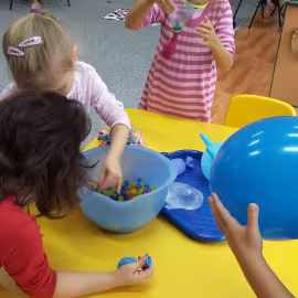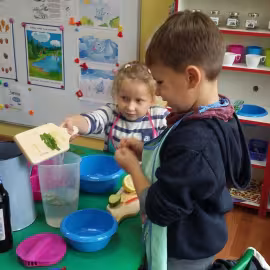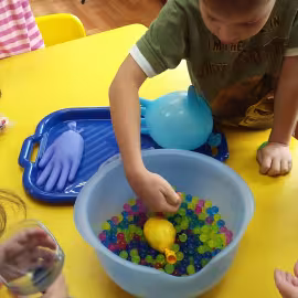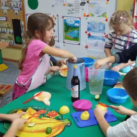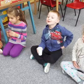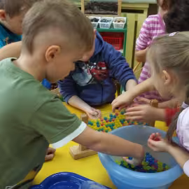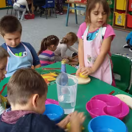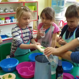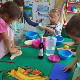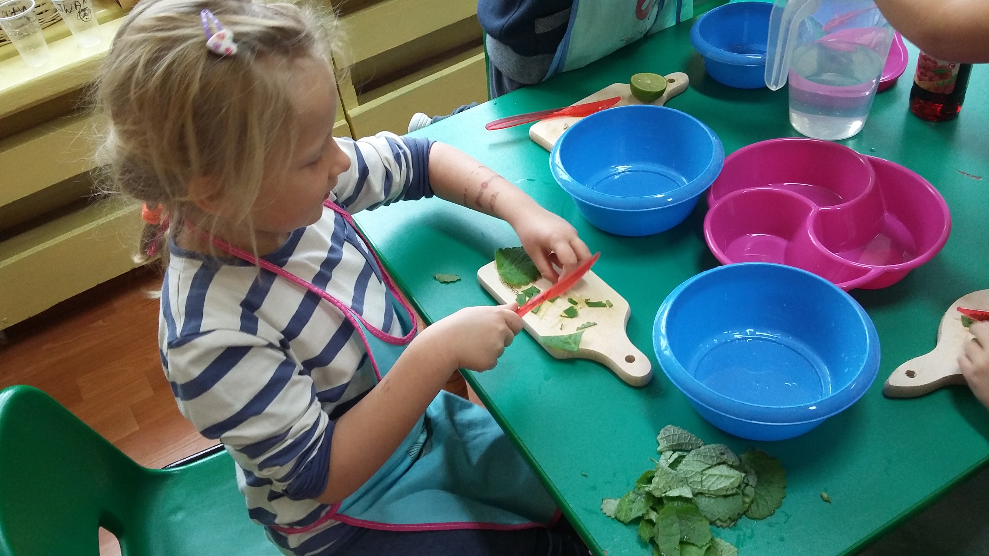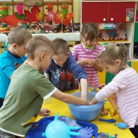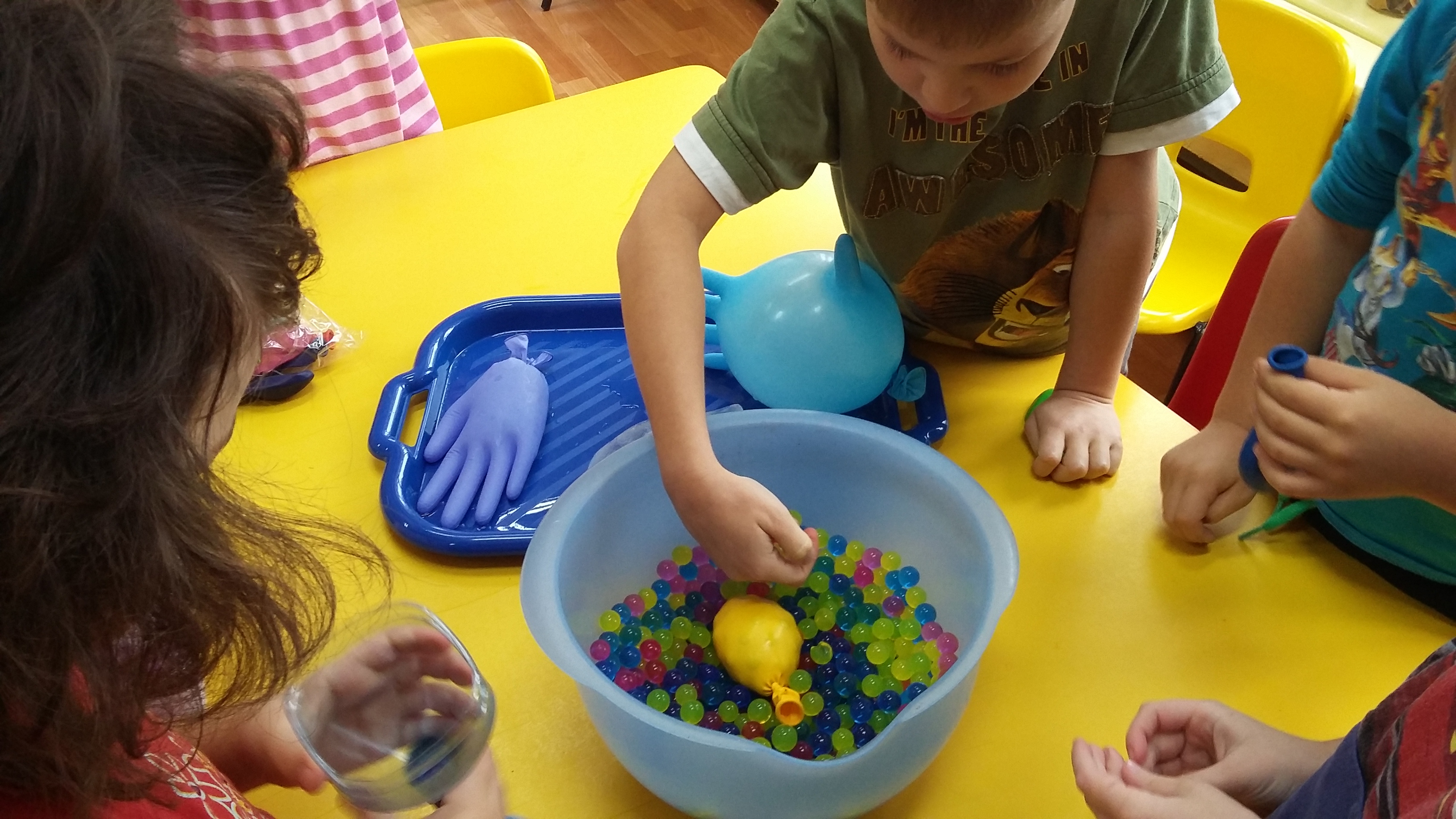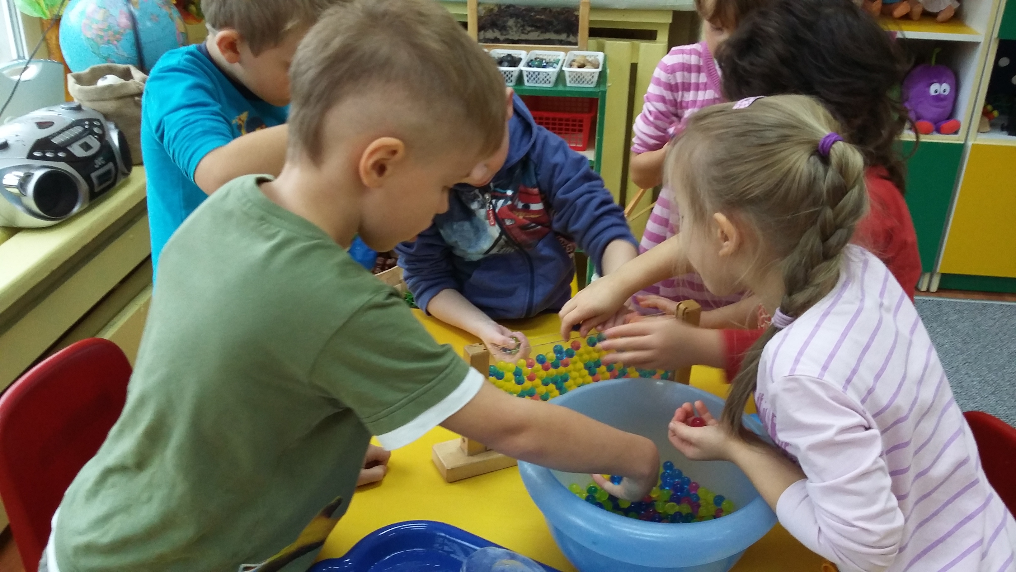 W kąciku „Darów” dzieci tworzyły ilustracje z darów (rzeka, jezioro, morze, deszcz, śnieg). W kąciku twórczym wykonywały pracę plastyczną techniką „Mokre na mokrym” –malowanie wodą i farbami akwarelowymi. W kąciku badawczym obserwowały wodę w różnych stanach skupienia i wykonywały gniotka sensorycznego z żelu florystycznego i balona. W kąciku gospodarczym przygotowywały wodę z cytryną, miętą i sokiem owocowym.
