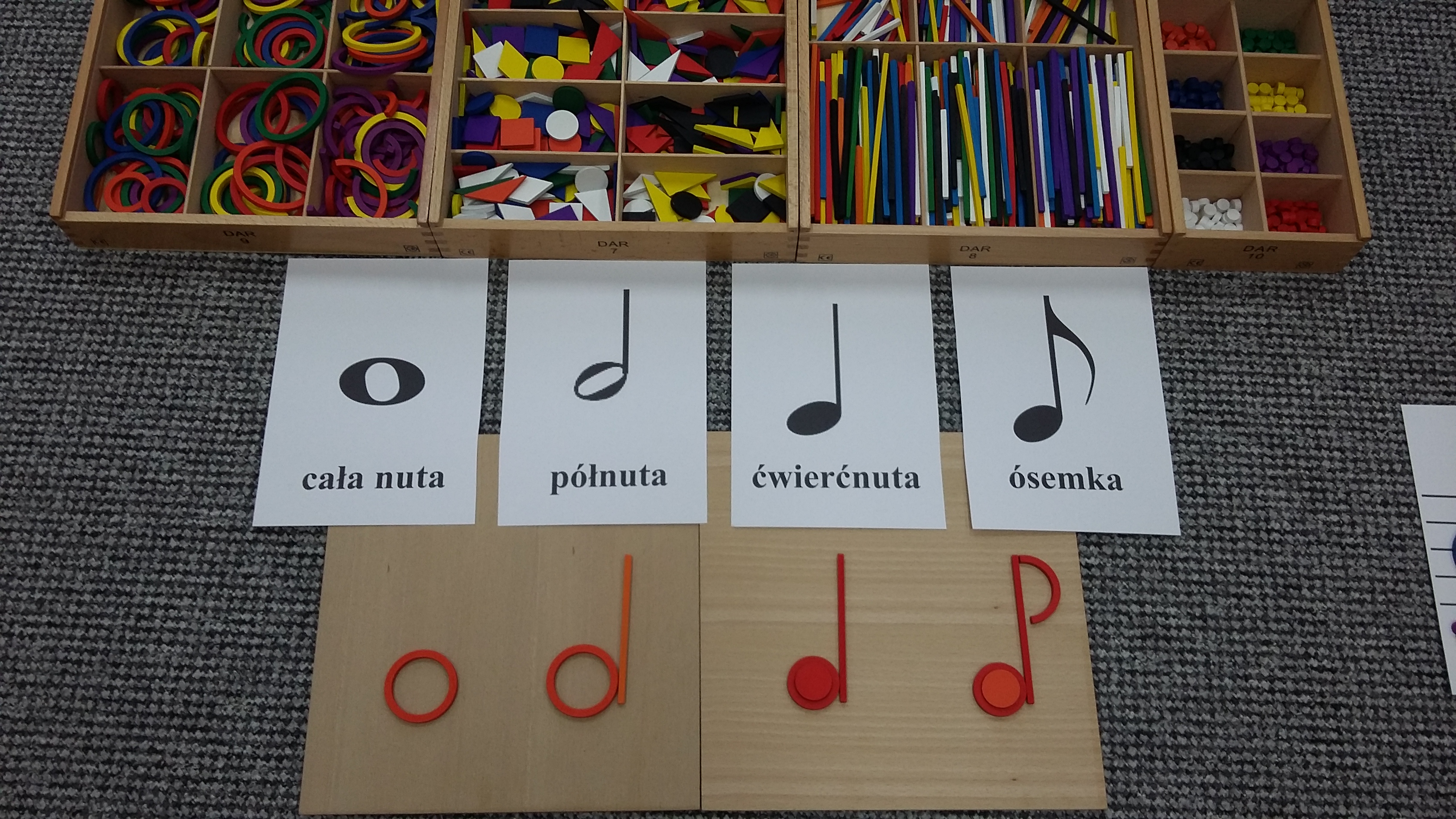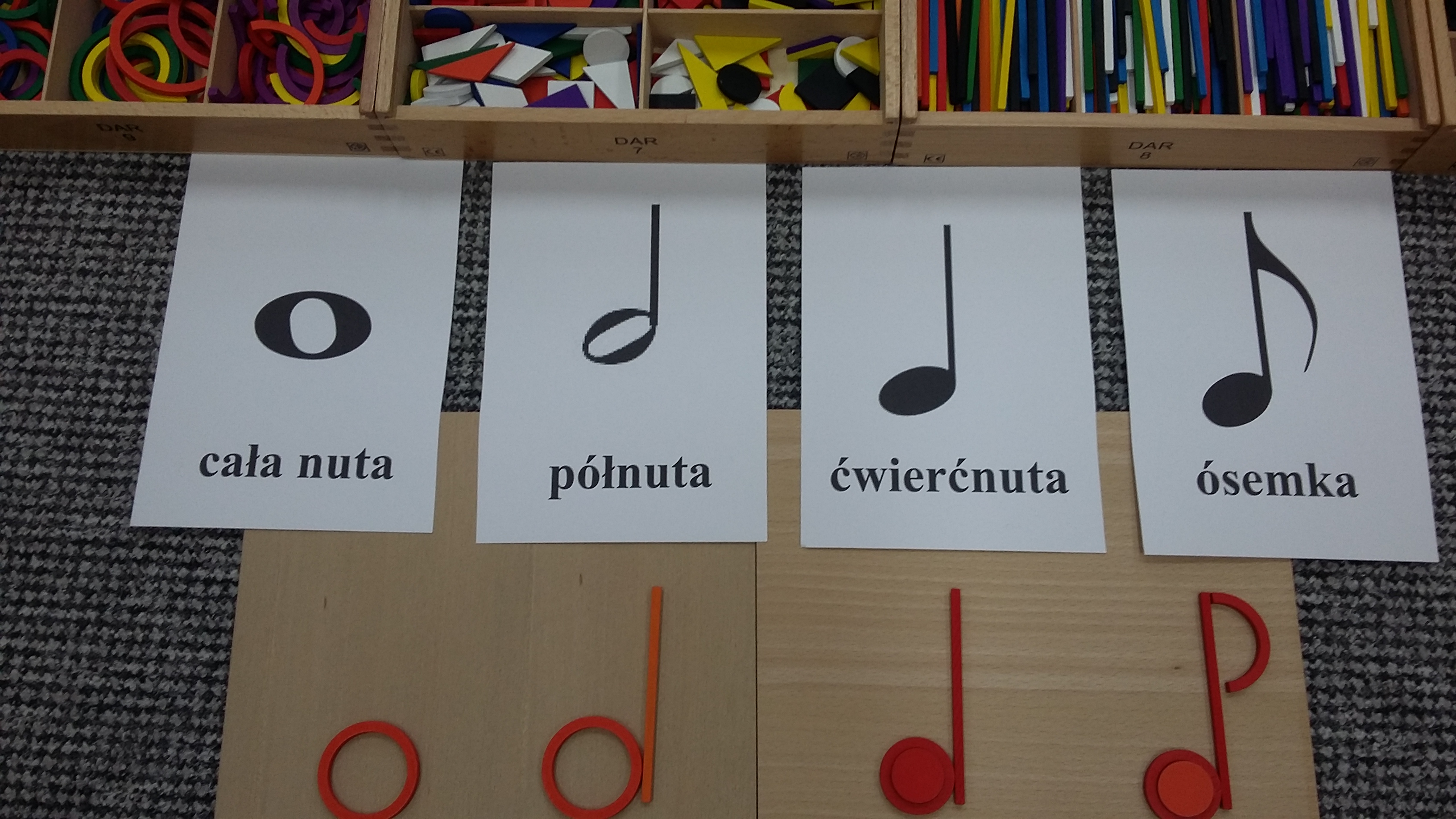 Na początku poznaliśmy nazwy nut, zaczynając od całej nuty, a kończąc na ósemce. Oczywiście pomogły nam w ty dary.
