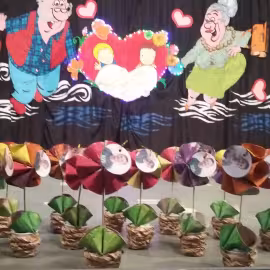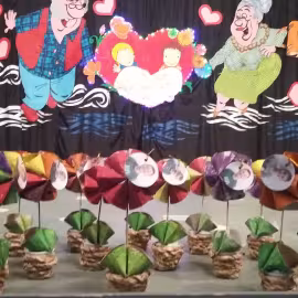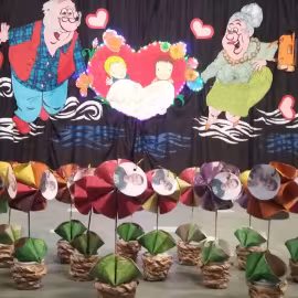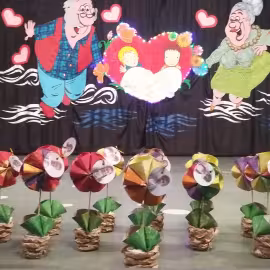 Grupa „Żeglarzy” postanowiła przygotować dla swoich Babci i Dziadków niecodzienne prezenty wykonane w nurcie pedagogiki froeblowskiej. Postanowiliśmy wykorzystać rolki papieru toaletowego i papier pakowy do wykonania efektownych kwiatków dla kochanych Babć. Dla Dziadziusiów wdzięczne wnuki zaplanowały serca, które zrobiliśmy ze starych foliowych koszulek, zszywek i z sercem wygniecionych kulek z czerwonej bibuły. Mamy nadzieję, że samodzielnie wykonane i niepowtarzalne prezenty sprawiły radość naszym solenizantom oraz pozostaną pamiątką uroczystych obchodów Dnia Babci i Dziadka w naszym przedszkolu.