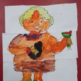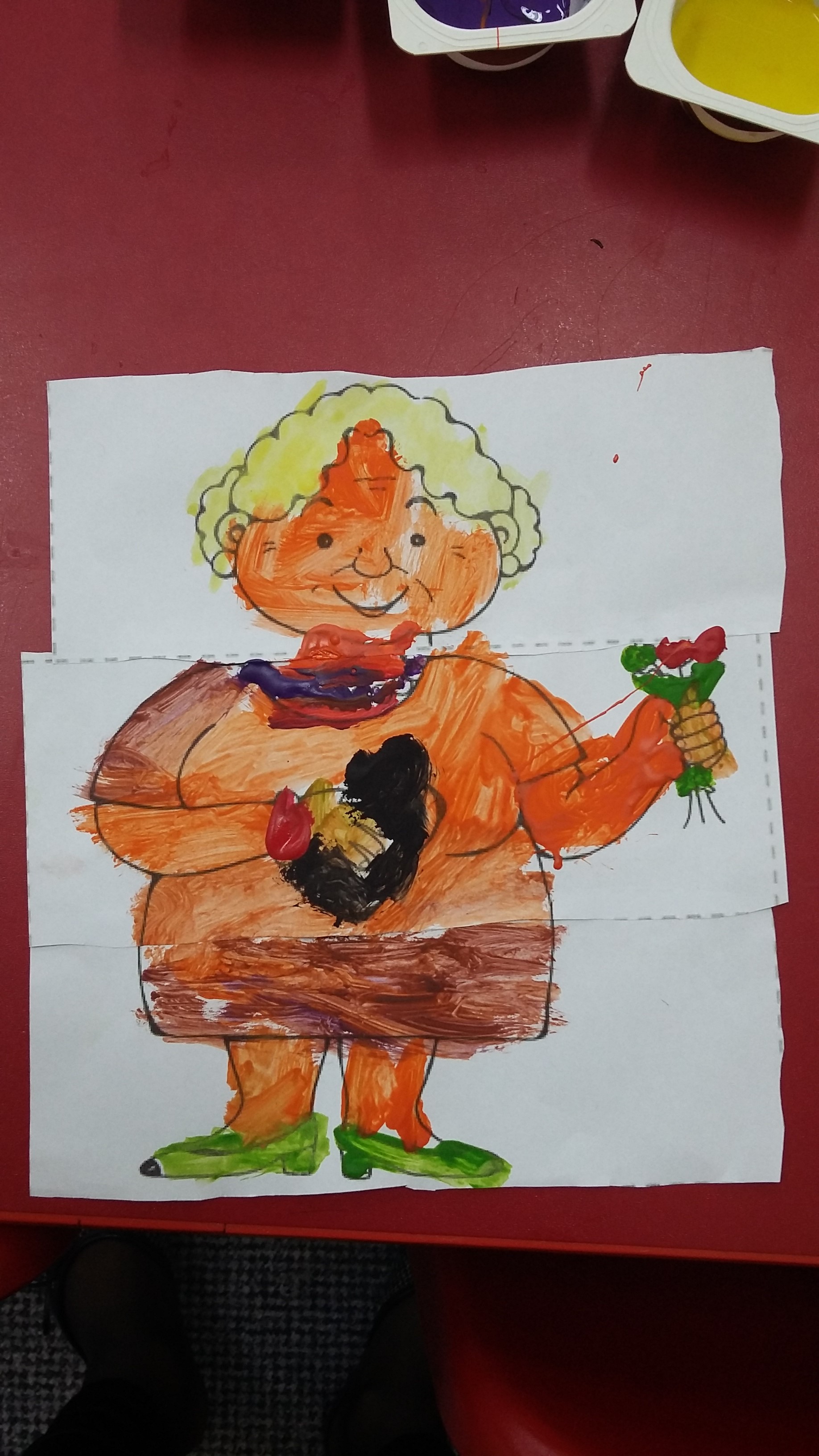 Babcia z Dziadkiem byli bohaterami naszych froeblowskich zajęć. Najpierw przedszkolaki wysłuchały wyliczanki o Babci i Dziadku w formie teatrzyku stolikowego: