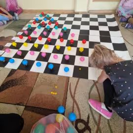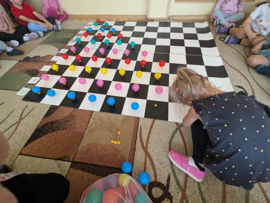 Grupa II z użyciem kratownicy i kolorowych piłeczek układała sekwencje.