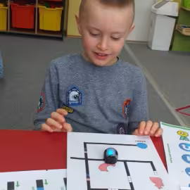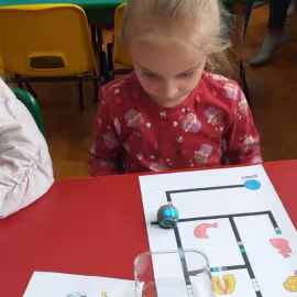 Po zajęciach teoretycznych przyszedł czas na działanie! Grupa VI ćwiczyła swoje umiejętności na ozobotach. Ozoboty są idealnym przejściem pomiędzy kodowaniem offline a kodowaniem za pomocą programów komputerowych. Ozoboty mają zdolność rozpoznawania kolorów dzięki czemu programowanie dla dzieci jest łatwiejsze.