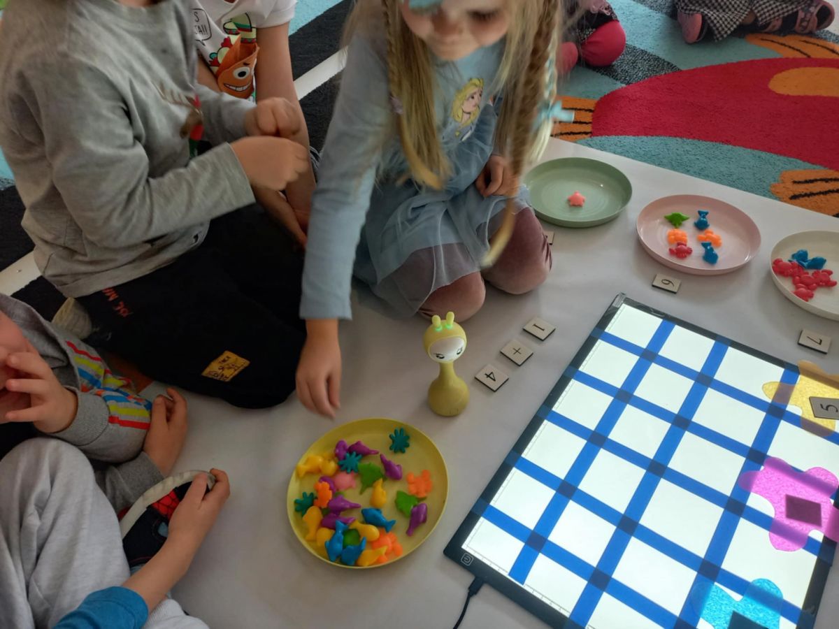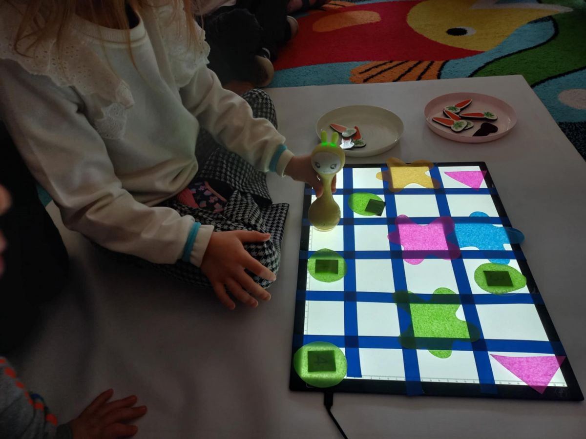 „Zabawy w kodowanie w łagodny i przyjazny sposób wprowadzają dzieci w świat, który uczy logicznego myślenia, obserwacji i dedukcji.” Dzieci z grupy V do zabaw w kodowanie często używają króliczka Alilo .