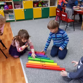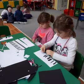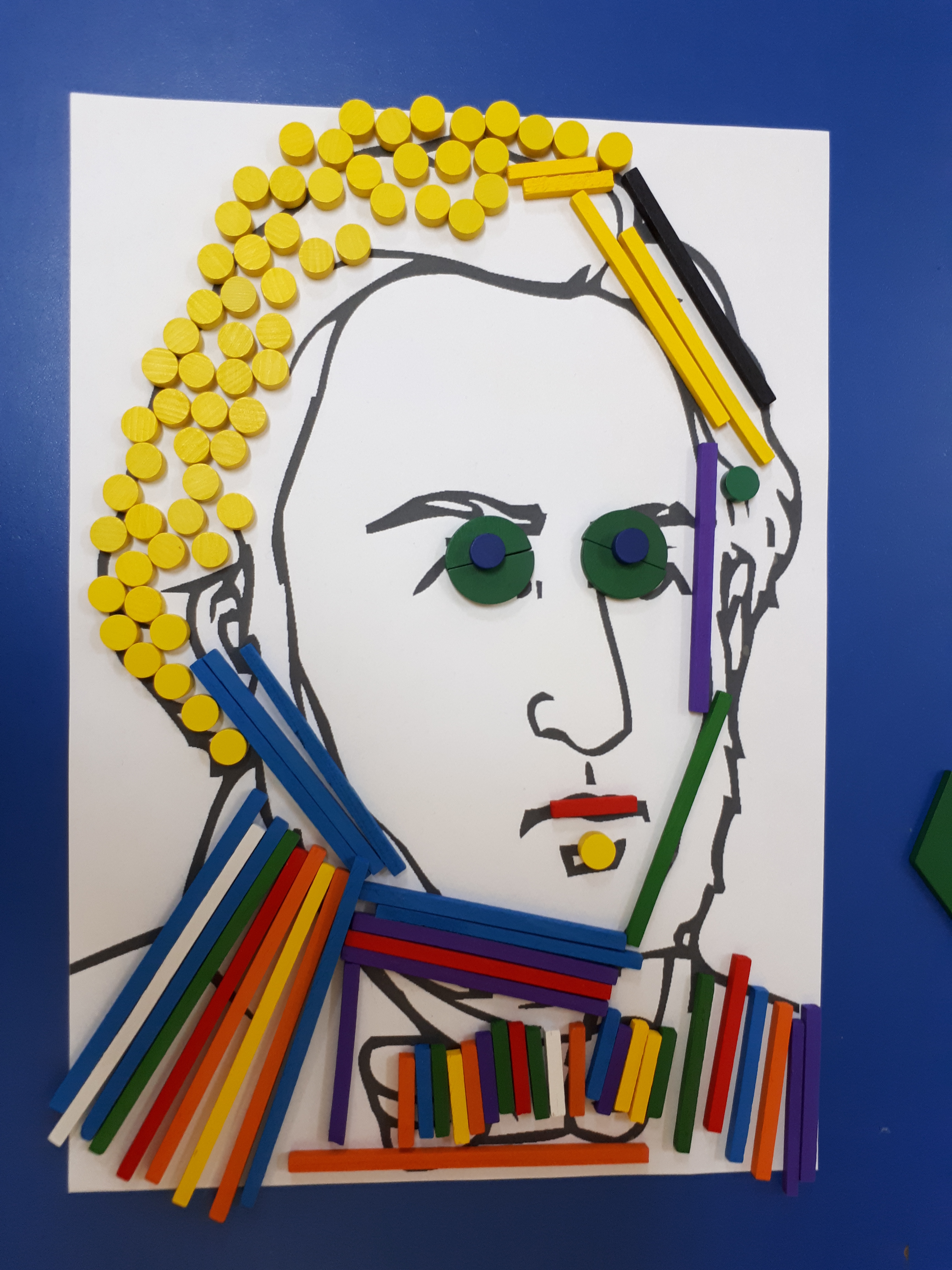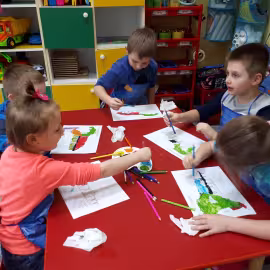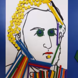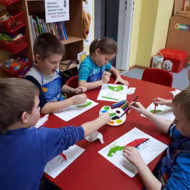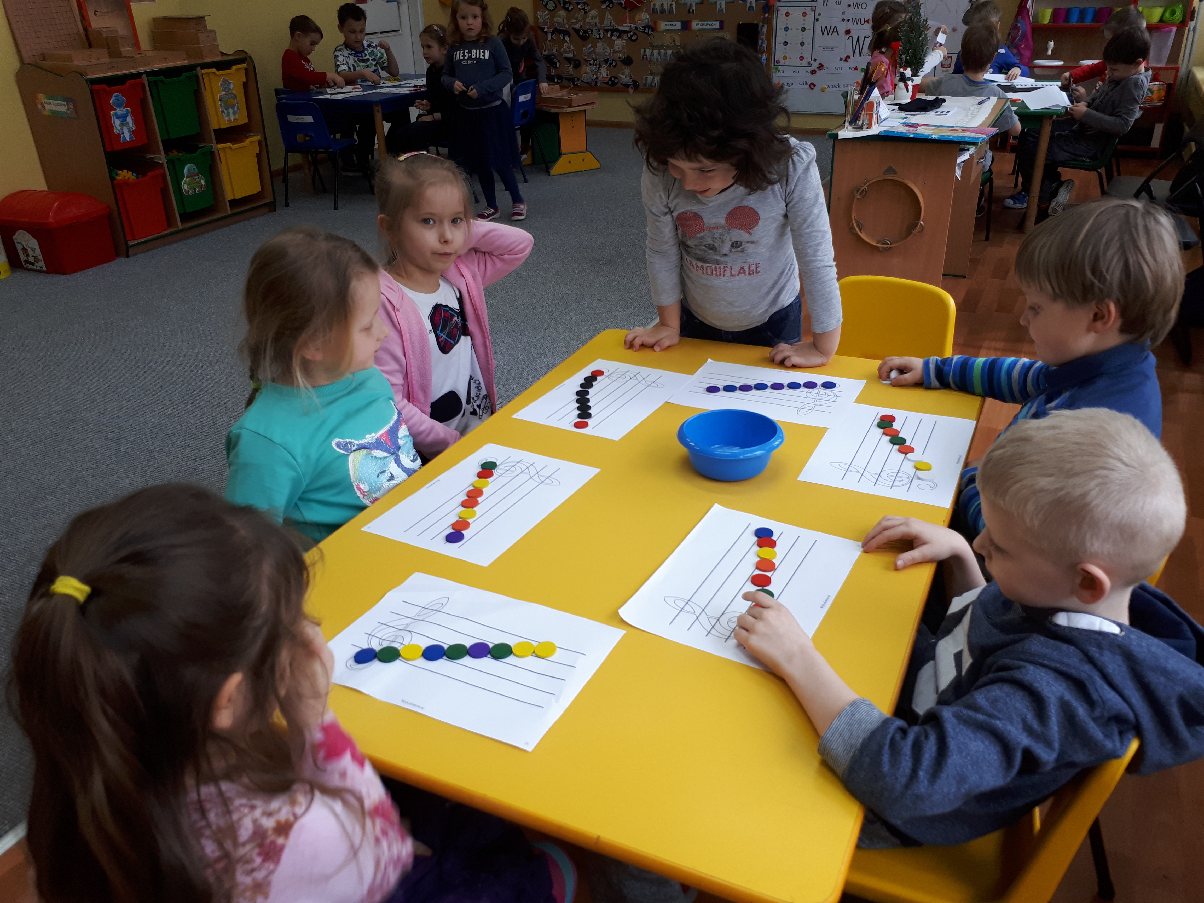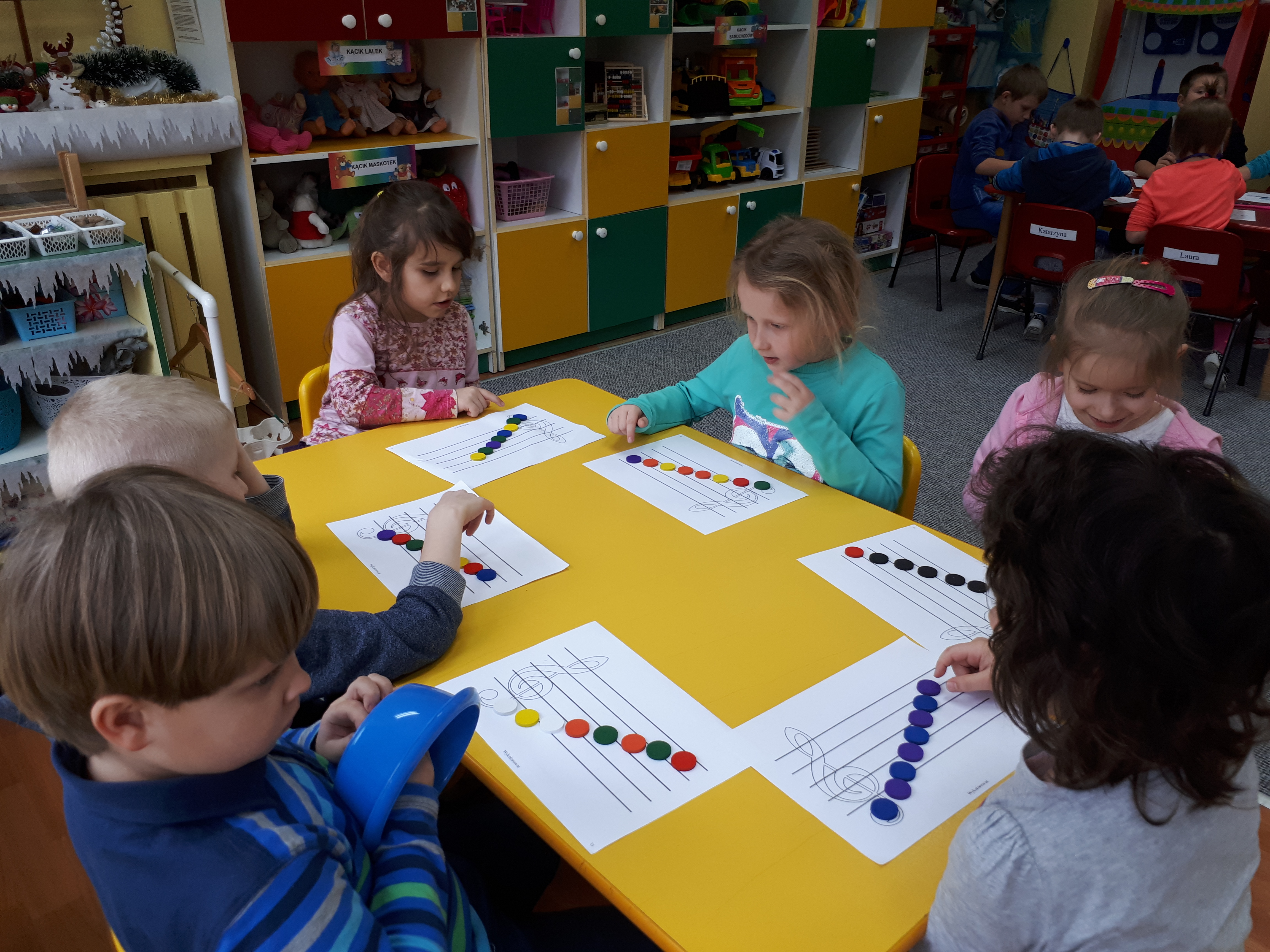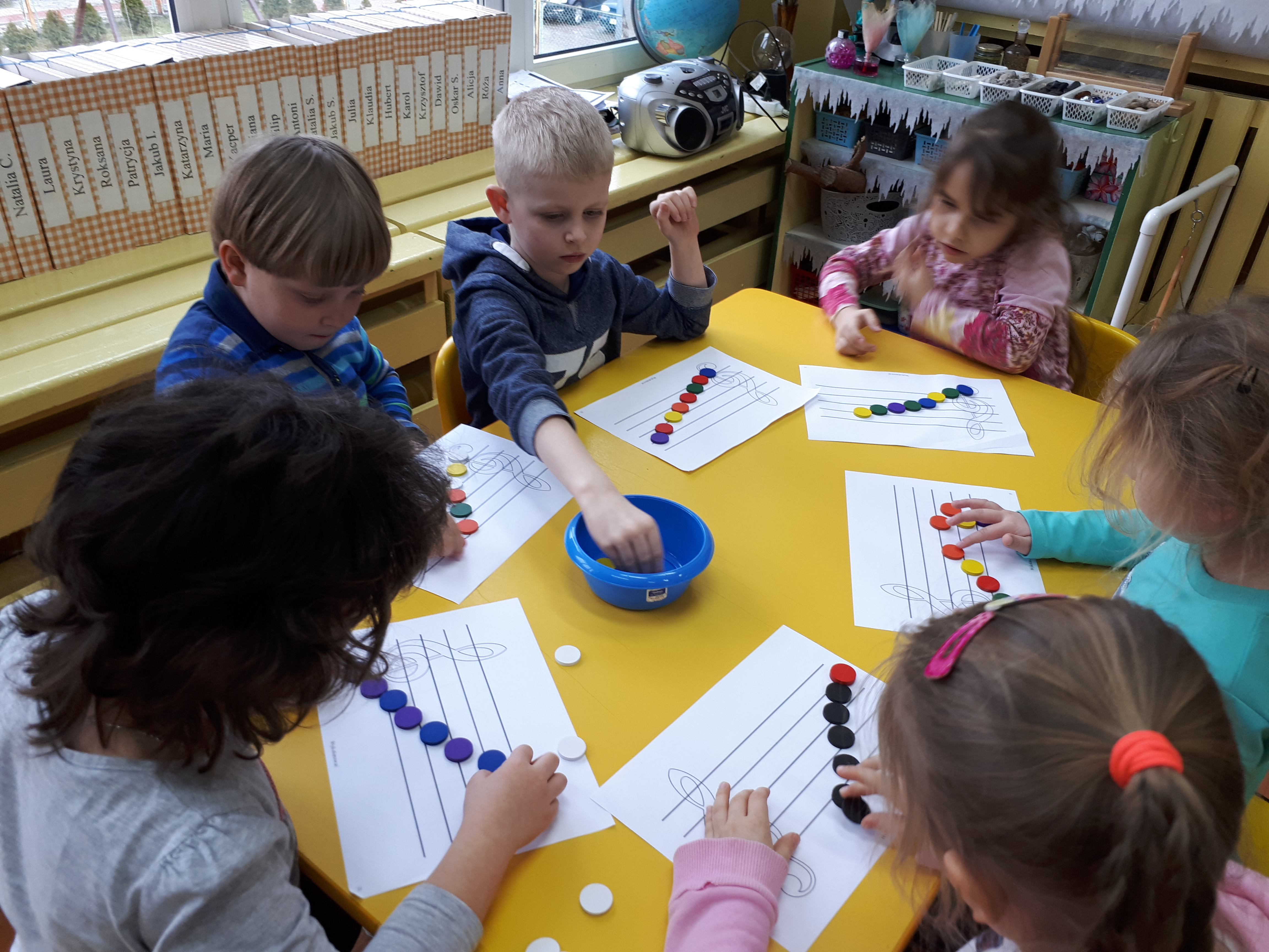 W grupie starszaków poznaliśmy sylwetkę wielkiego Polaka – Fryderyka Chopina. Dodatkowo kształtowaliśmy umiejętności słuchania muzyki poważnej oraz wyobraźni muzycznej poprzez improwizację ruchową i plastyczną. Na początku zajęć w porannym kole wysłuchaliśmy wiersz Heleny Bechlerowej „Kiedy mamusia gra” i poznaliśmy krótką historię życia Fryderyka Chopina. Dzieci były pod wrażeniem faktu, że pierwsze utwory mały Fryderyk skomponował w wieku 7 lat. Później podczas pracy w kącikach zabawowo- zadaniowych zgłębialiśmy tajemnice geniuszu wielkiego Polaka. W kąciku darów dzieci układały portrety młodego Fryderyka. W kąciku twórczym malowały pomnik i dom Fryderyka Chopina, który znajduje się w Żelazowej Woli metodą „kropki”- zanurzając końcówkę ołówka w farbie i odbijając na kartce. W kąciku badawczym dzieci z darów układały na pięciolinii gamę i wygrywały je na Bum Bum Rurkach. W kąciku gospodarczym przedszkolaki projektowały klawiaturę fortepianu z biało- czarnego kartonu. Ważne jest, aby od najmłodszych lat dziecko miało kontakt z wartościami wyższego rzędu. Poznawanie dobytku kulturowego swojego kraju, poznawanie ludzi kultury rozwija w dziecku wrażliwości estetyczne, uczy wrażliwości na piękno, a także prawidłowego odbioru, rozumienia i przeżywania utworów muzyki klasycznej