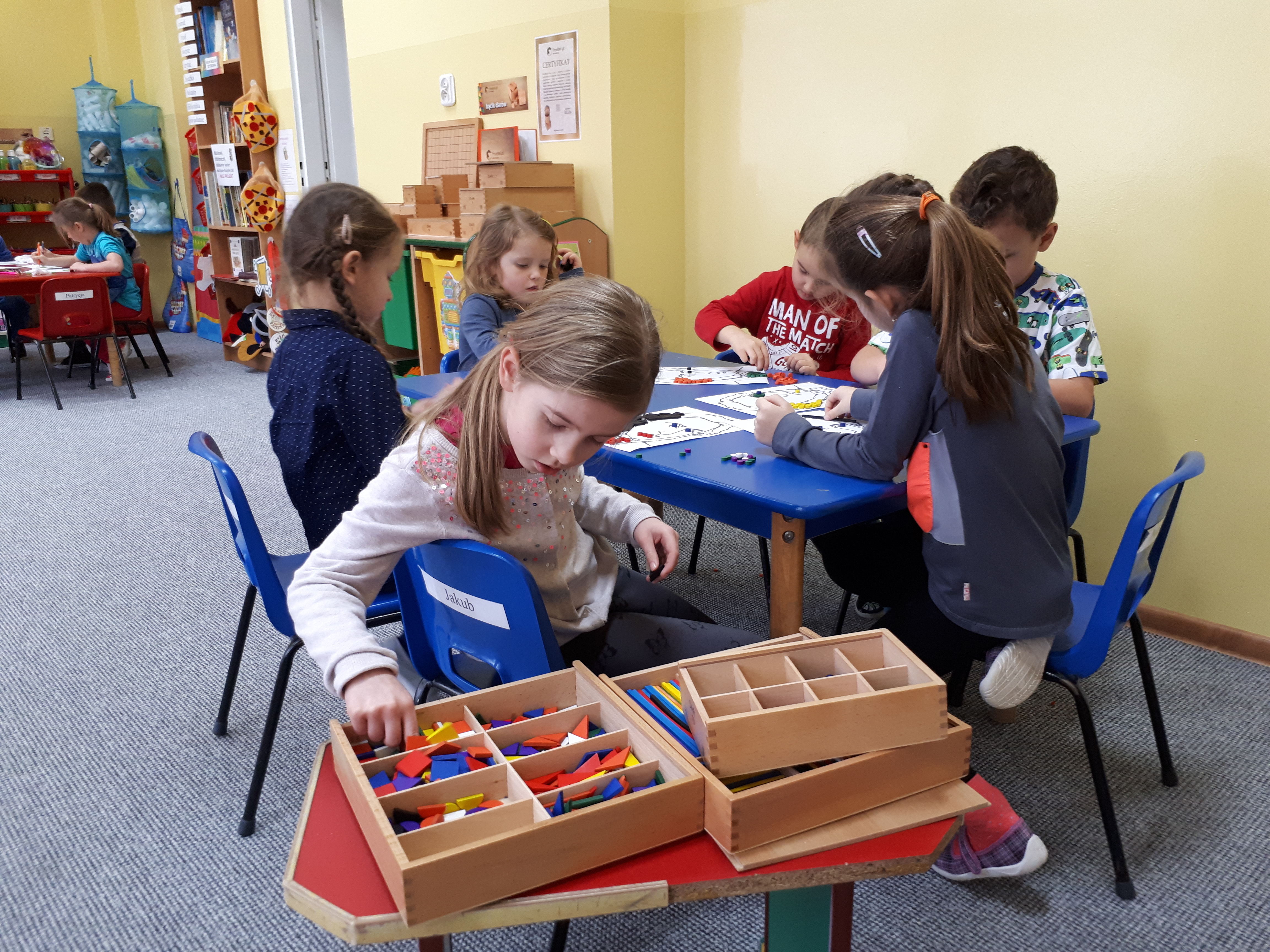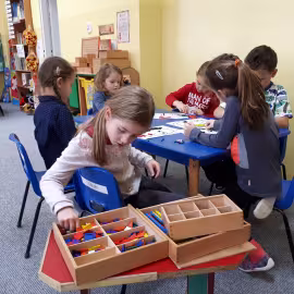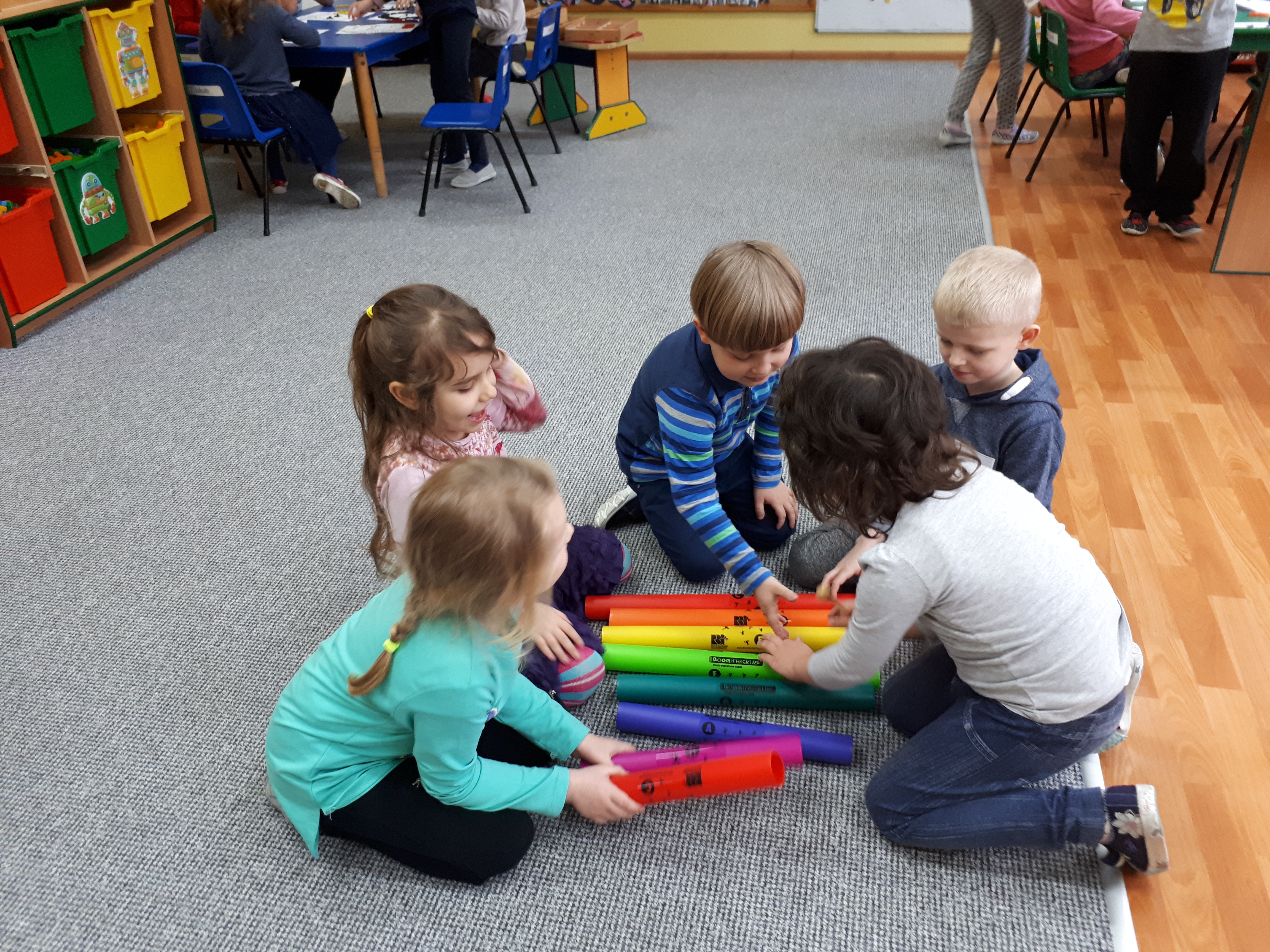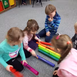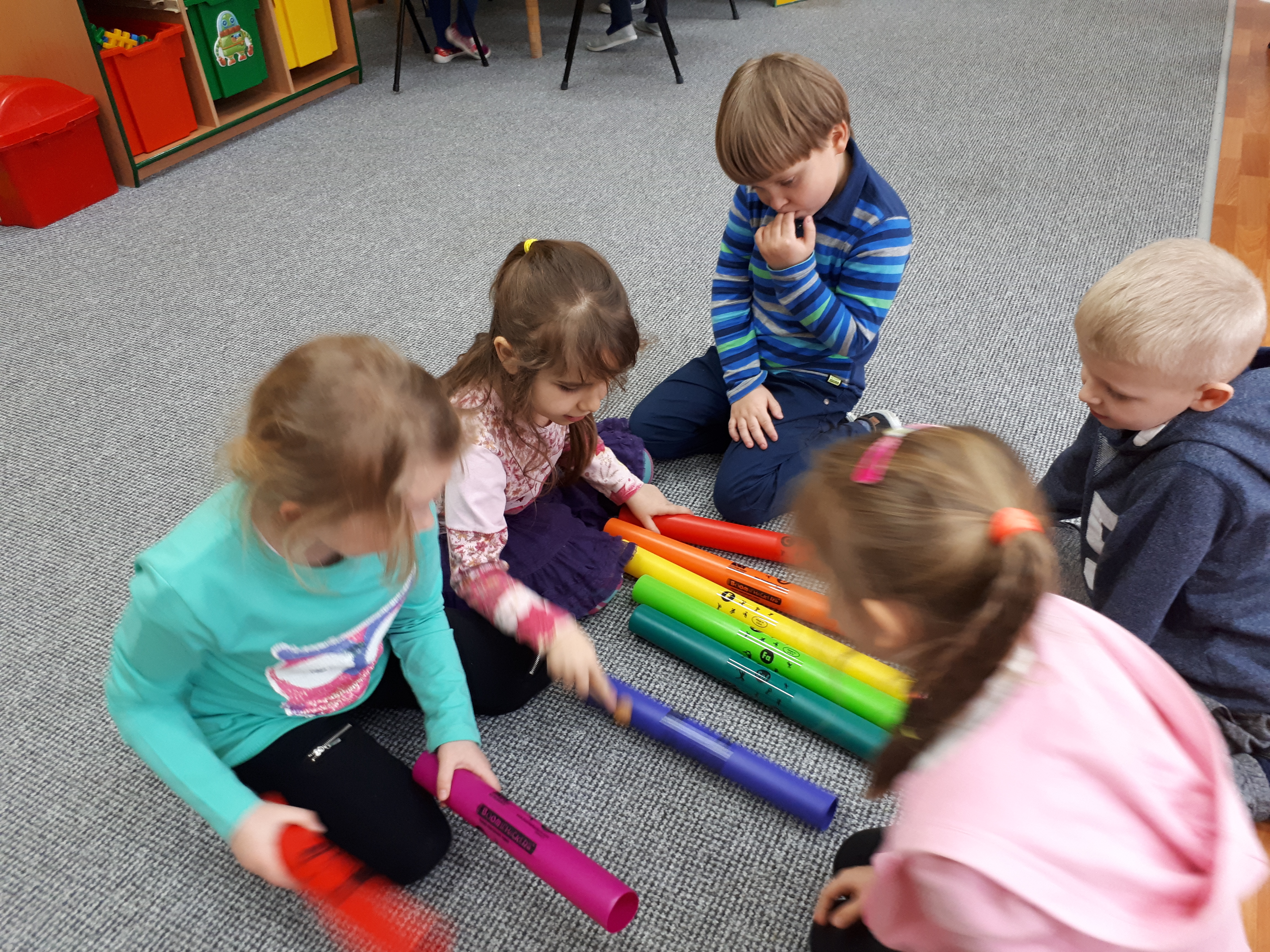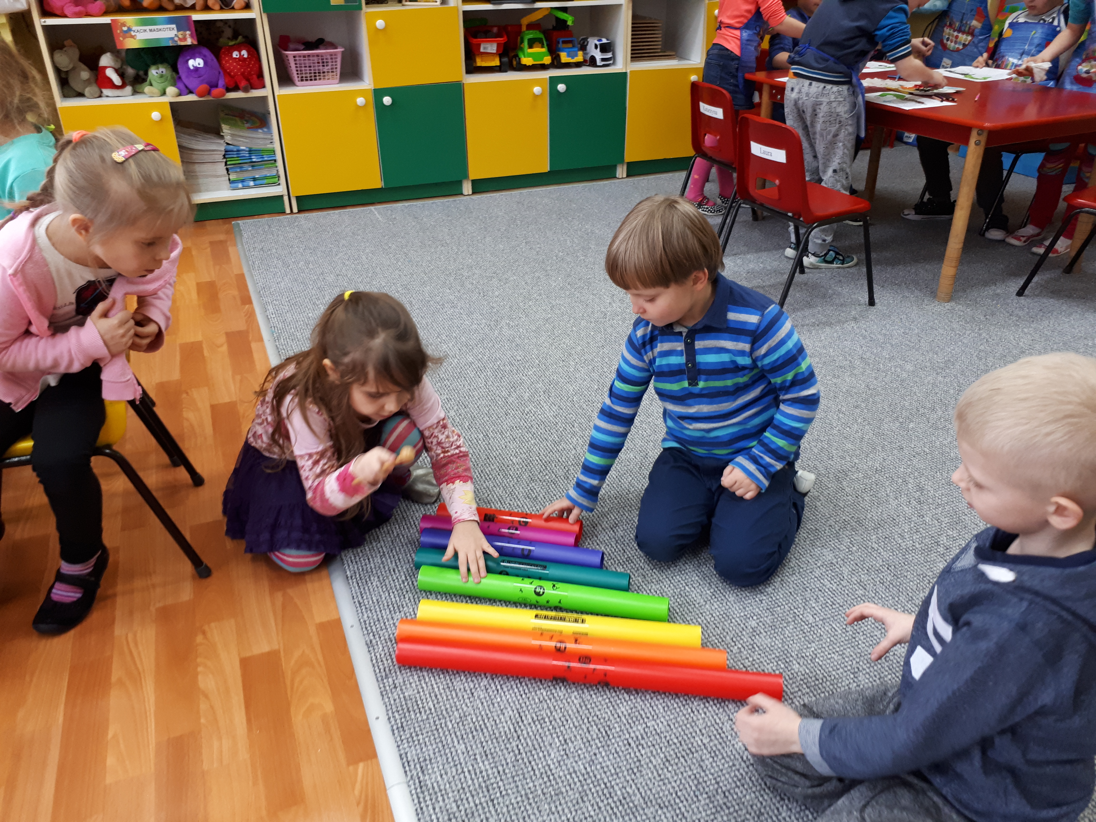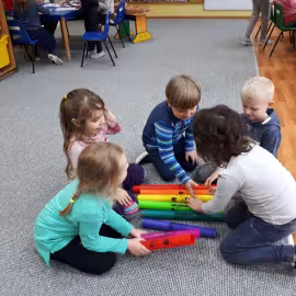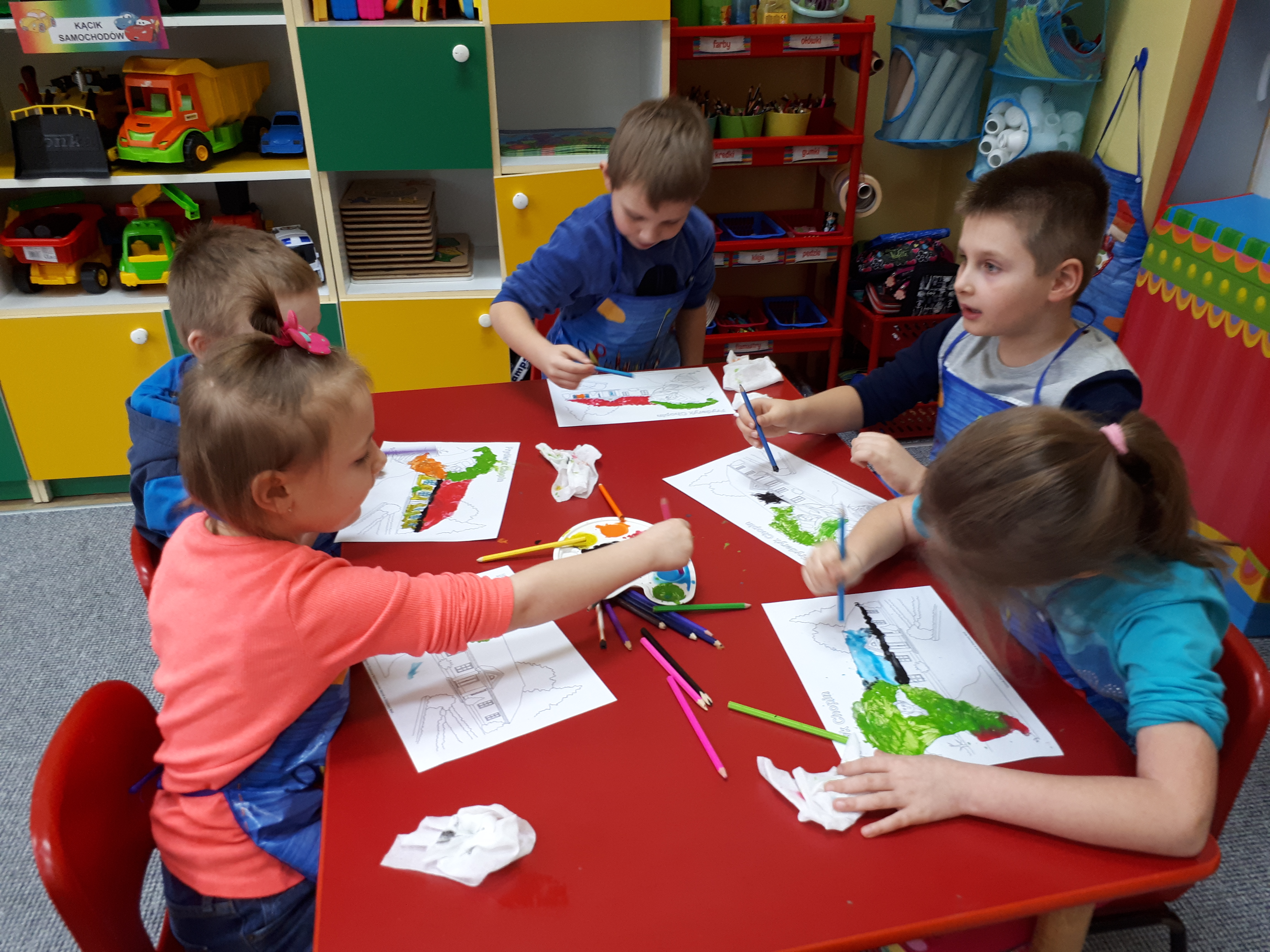 W grupie starszaków poznaliśmy sylwetkę wielkiego Polaka – Fryderyka Chopina. Dodatkowo kształtowaliśmy umiejętności słuchania muzyki poważnej oraz wyobraźni muzycznej poprzez improwizację ruchową i plastyczną. Na początku zajęć w porannym kole wysłuchaliśmy wiersz Heleny Bechlerowej „Kiedy mamusia gra” i poznaliśmy krótką historię życia Fryderyka Chopina. Dzieci były pod wrażeniem faktu, że pierwsze utwory mały Fryderyk skomponował w wieku 7 lat. Później podczas pracy w kącikach zabawowo- zadaniowych zgłębialiśmy tajemnice geniuszu wielkiego Polaka. W kąciku darów dzieci układały portrety młodego Fryderyka. W kąciku twórczym malowały pomnik i dom Fryderyka Chopina, który znajduje się w Żelazowej Woli metodą „kropki”- zanurzając końcówkę ołówka w farbie i odbijając na kartce. W kąciku badawczym dzieci z darów układały na pięciolinii gamę i wygrywały je na Bum Bum Rurkach. W kąciku gospodarczym przedszkolaki projektowały klawiaturę fortepianu z biało- czarnego kartonu. Ważne jest, aby od najmłodszych lat dziecko miało kontakt z wartościami wyższego rzędu. Poznawanie dobytku kulturowego swojego kraju, poznawanie ludzi kultury rozwija w dziecku wrażliwości estetyczne, uczy wrażliwości na piękno, a także prawidłowego odbioru, rozumienia i przeżywania utworów muzyki klasycznej