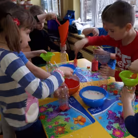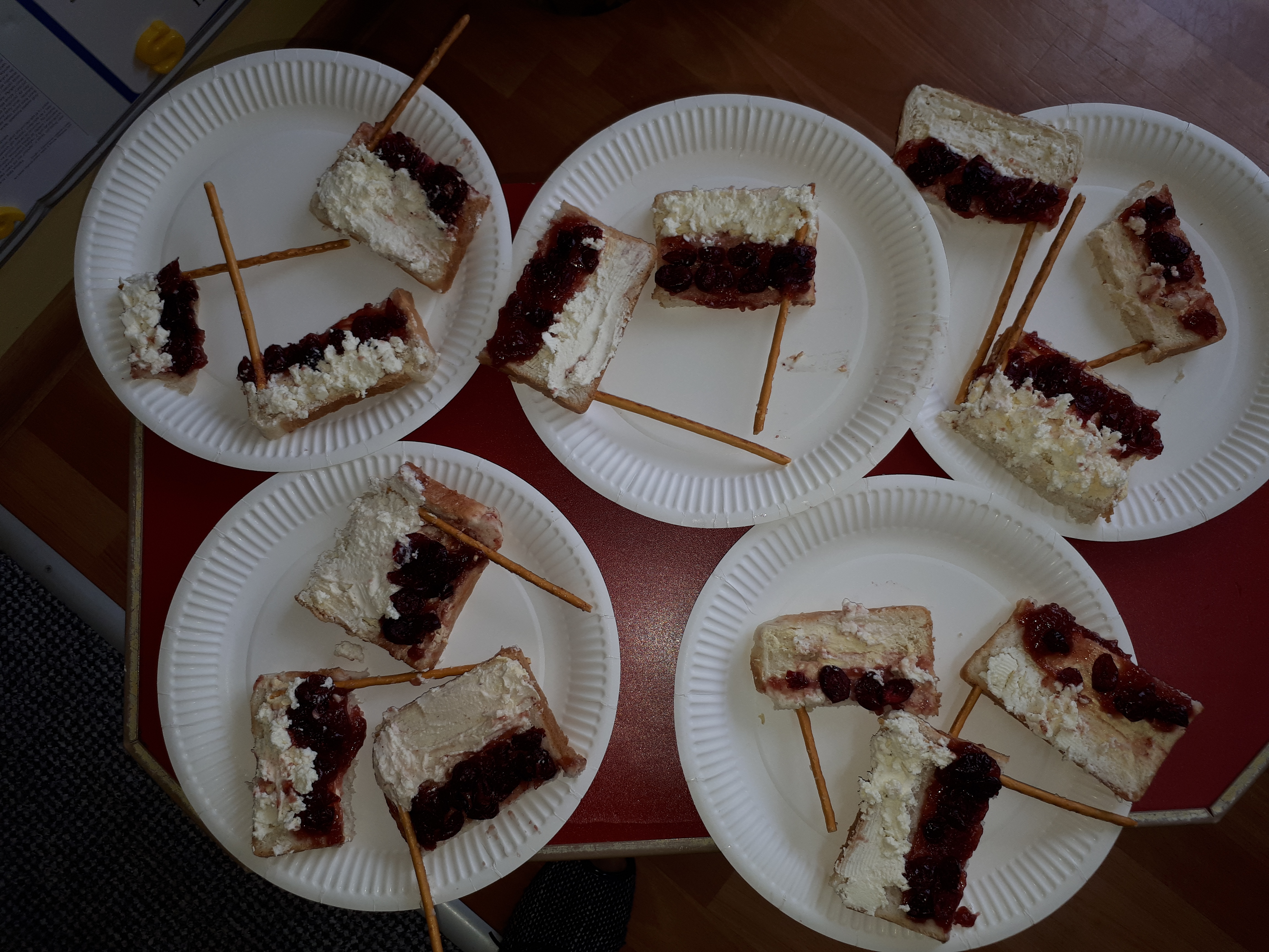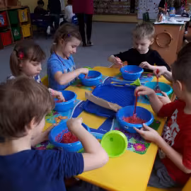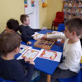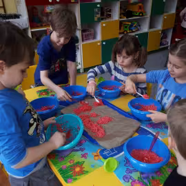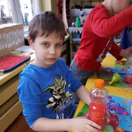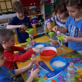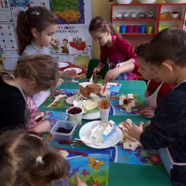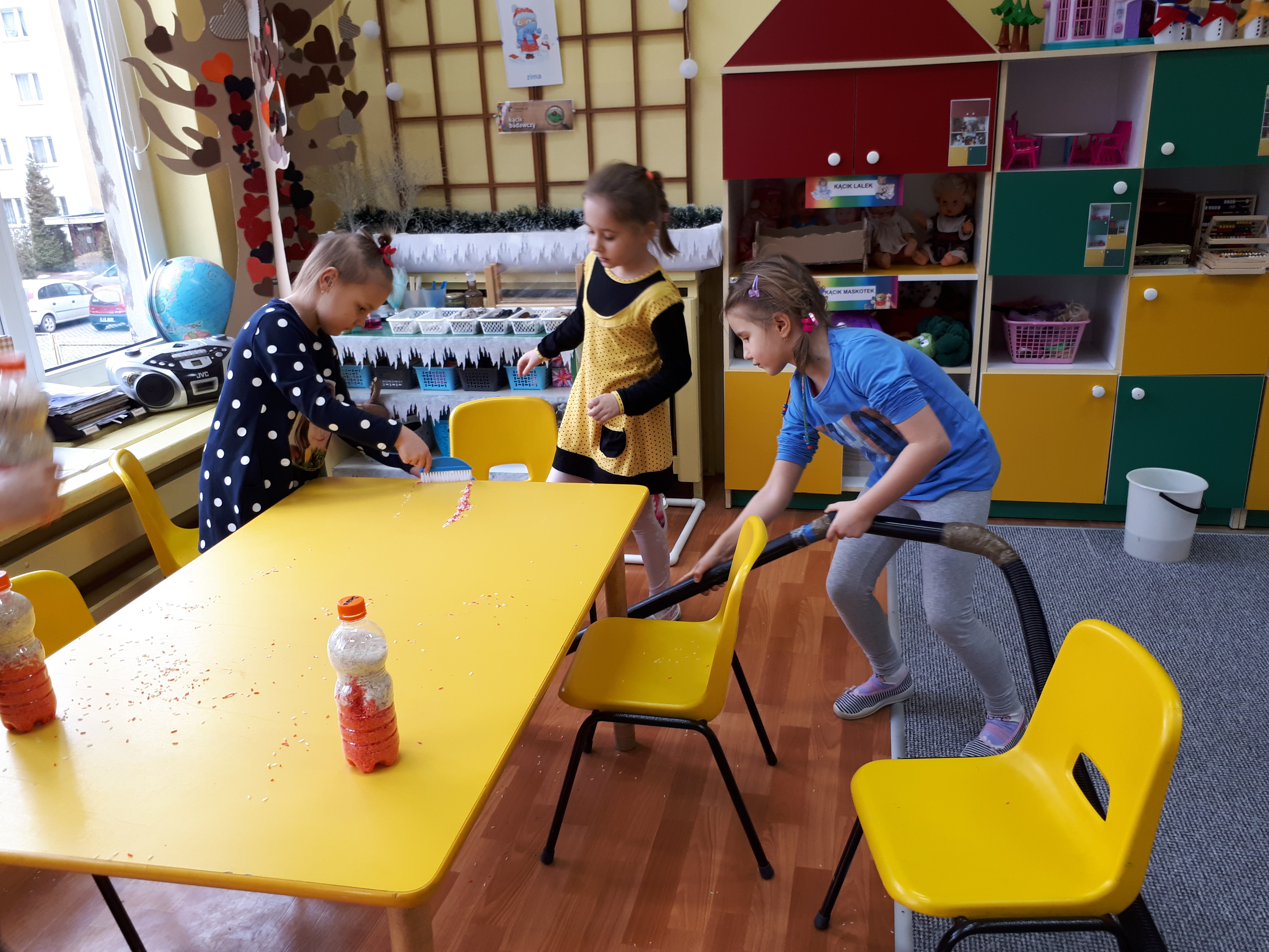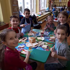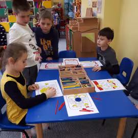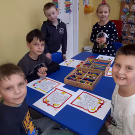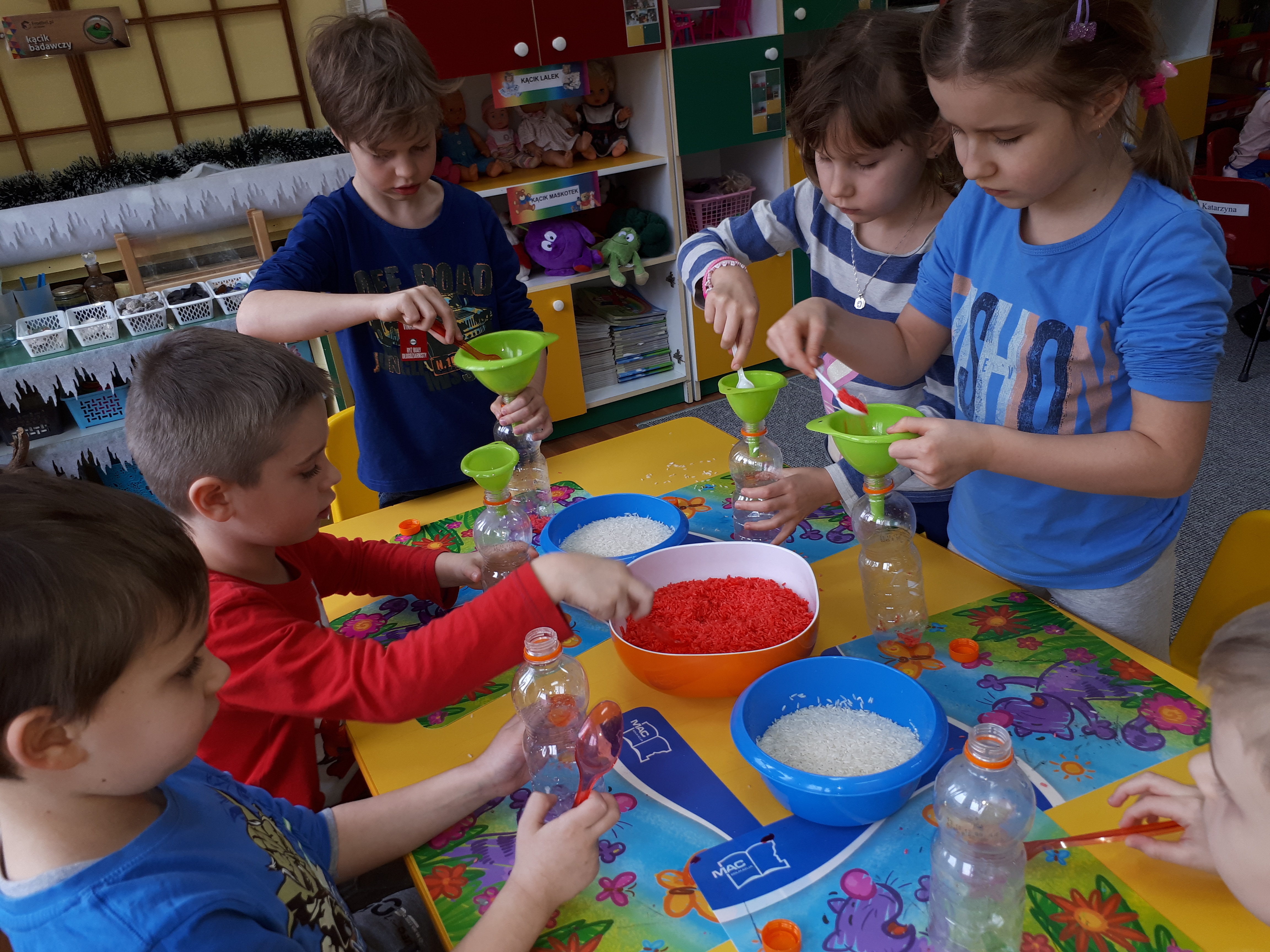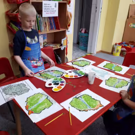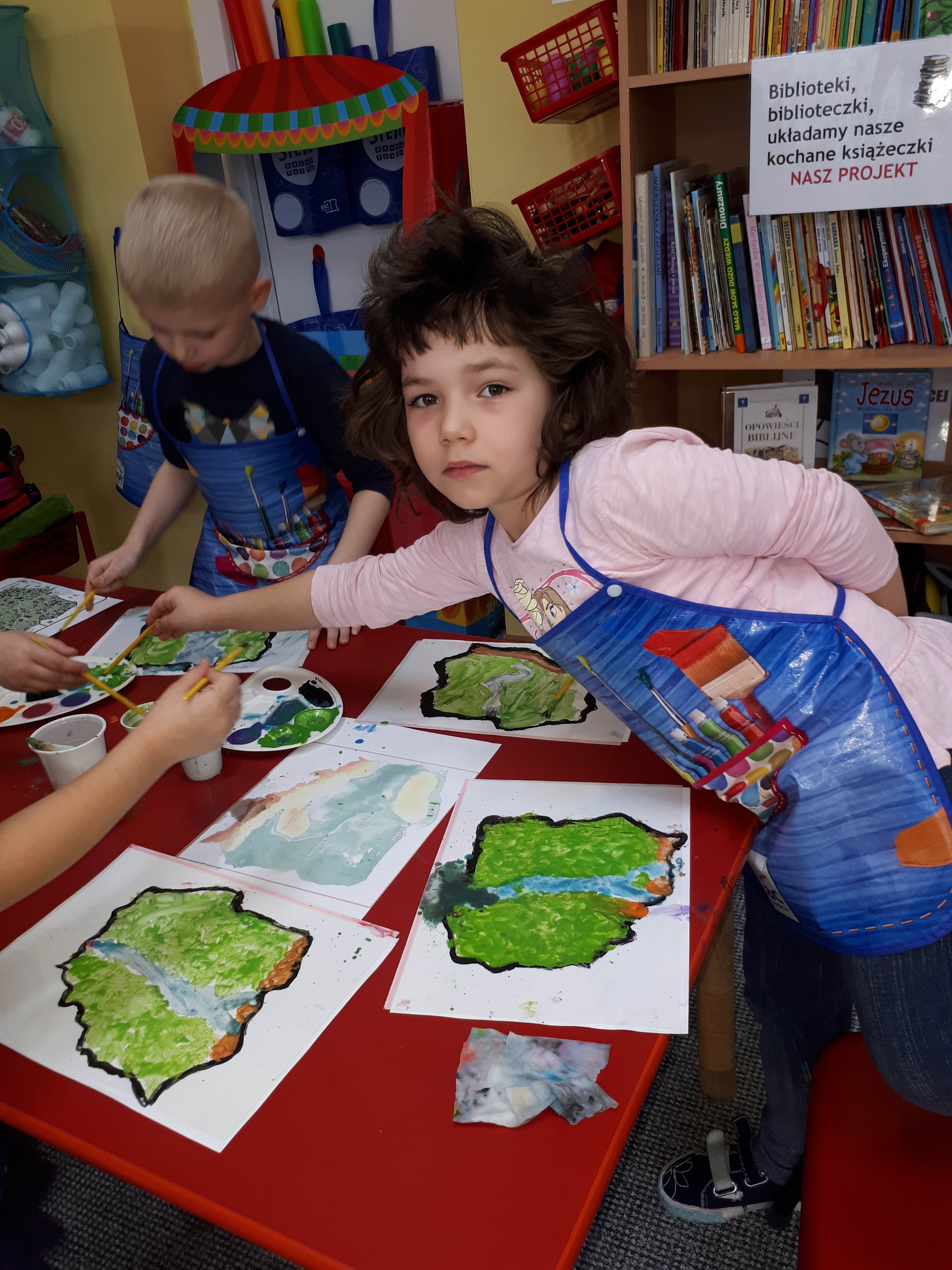 W ramach cyklu zajęć „Podróże po Polsce” dzieci przypomniały sobie wiadomości nt. tego jakie są symbole polskie oraz położenie ważnych punktów na mapie takich jak: Wisła, Morze Bałtyckie, góry. Starszaki kształtowaływ sobie tożsamość narodową poprzez zabawy i różne działania plastyczne. Dzieci utrwalały pojęcia i symbole, które powinny być bliskie zarówno małemu jak i dorosłemu Polakowi. Przedszkolaki zapoznały się z symbolami Polski, wiedzą, że stolicą Polski jest Warszawa i najdłuższą rzeką Wisła. Nasi mali Polacy wiedzą również, jak zachować się podczas słuchania hymnu narodowego. A uwieńczeniem narodowego tygodnia była praca w kącikach zabawowo- zadaniowych. W kąciku darów dzieci układały godło. W kąciku twórczym malowały mapę Polski na folii z użyciem mydlanych farb. W kąciku badawczym przedszkolaki barwiły ryż na czerwono przy pomocy bibuły, a później wykonywały barwy narodowe w butelce doskonaląc technikę przesypywania ryżu. W kąciku gospodarczym wykonywały flagę z chleba tostowego, serka twarogowego, sera feta, żurawiny, dżemu malinowego i słonego paluszka. Prace wyszły przepięknie, a po skończonej prezentacji i zjedzeniu przepysznych flag starszaki posprzątały swoje miejsca pracy.