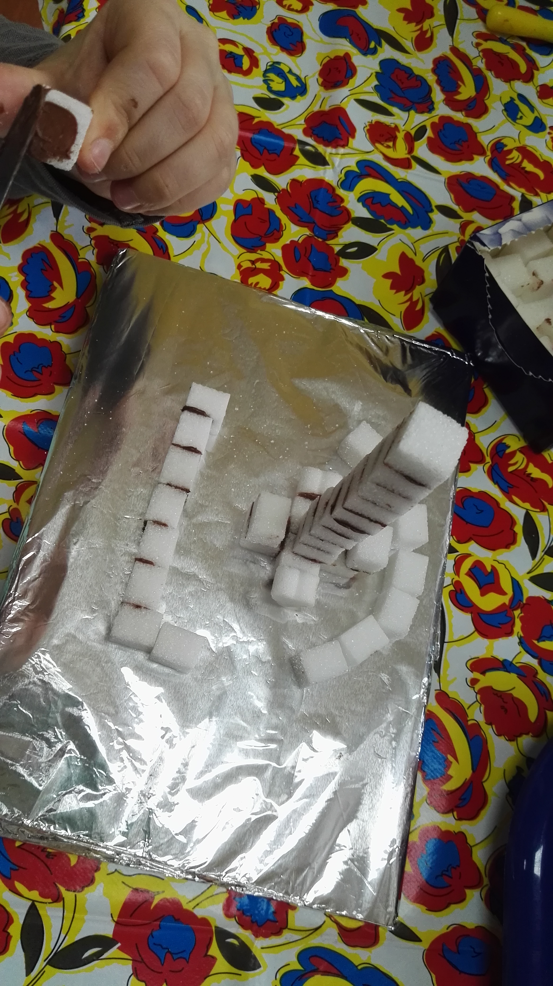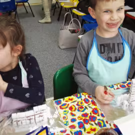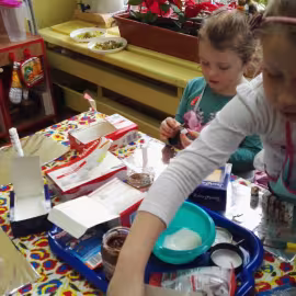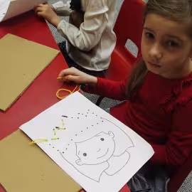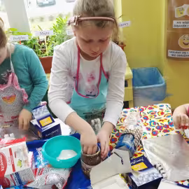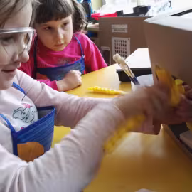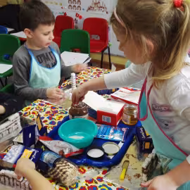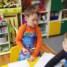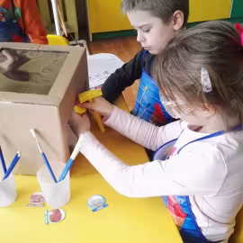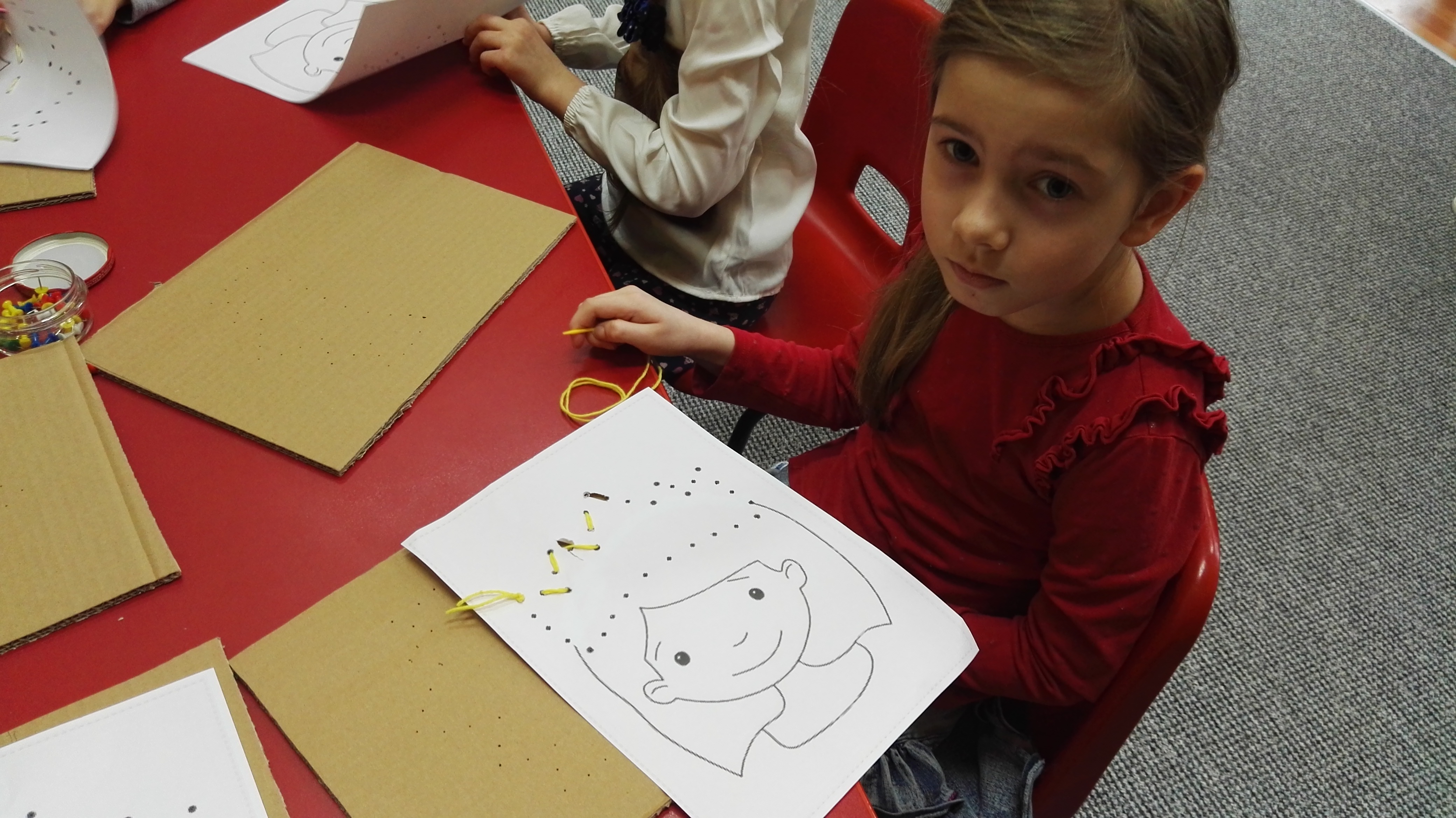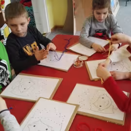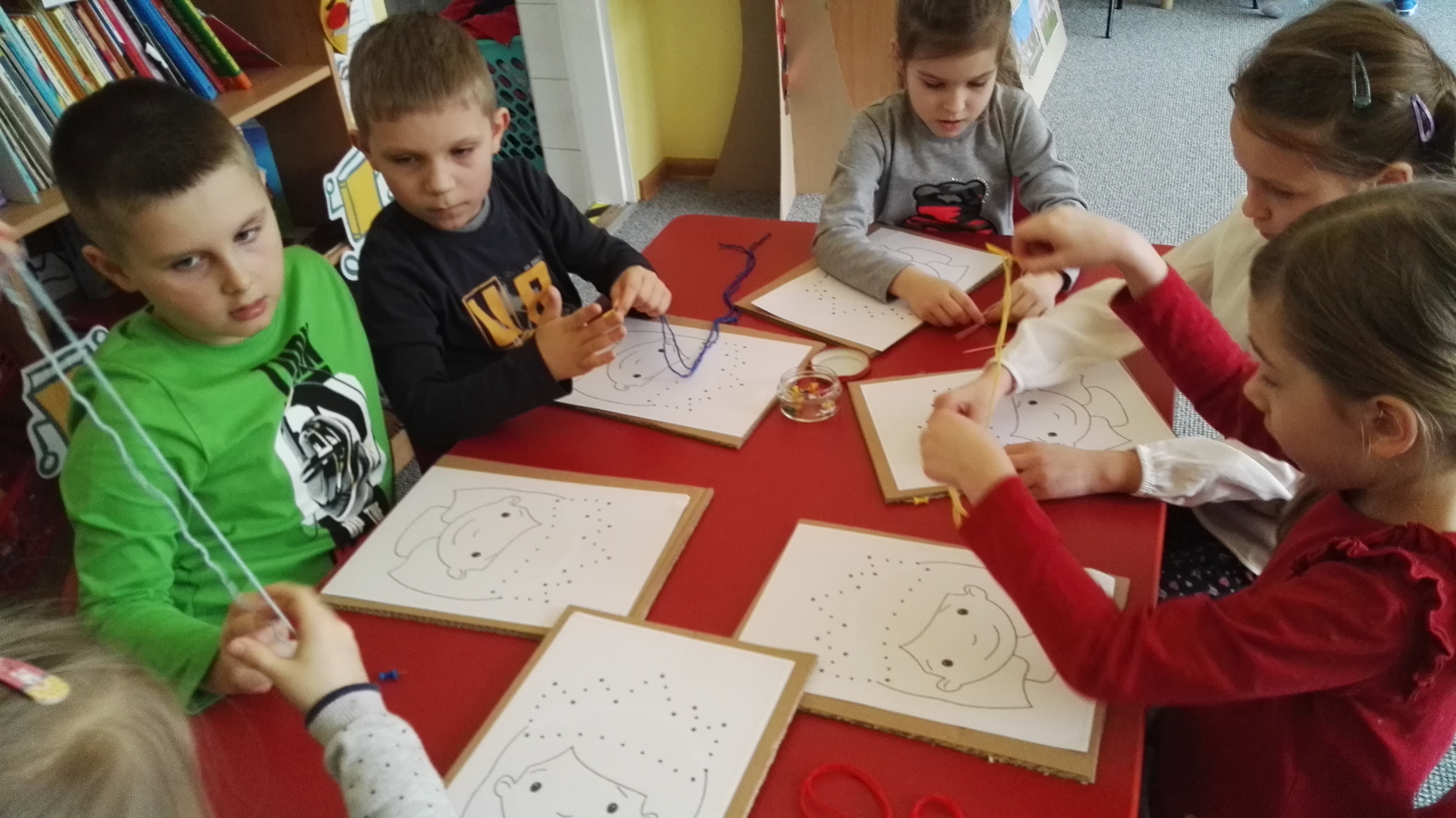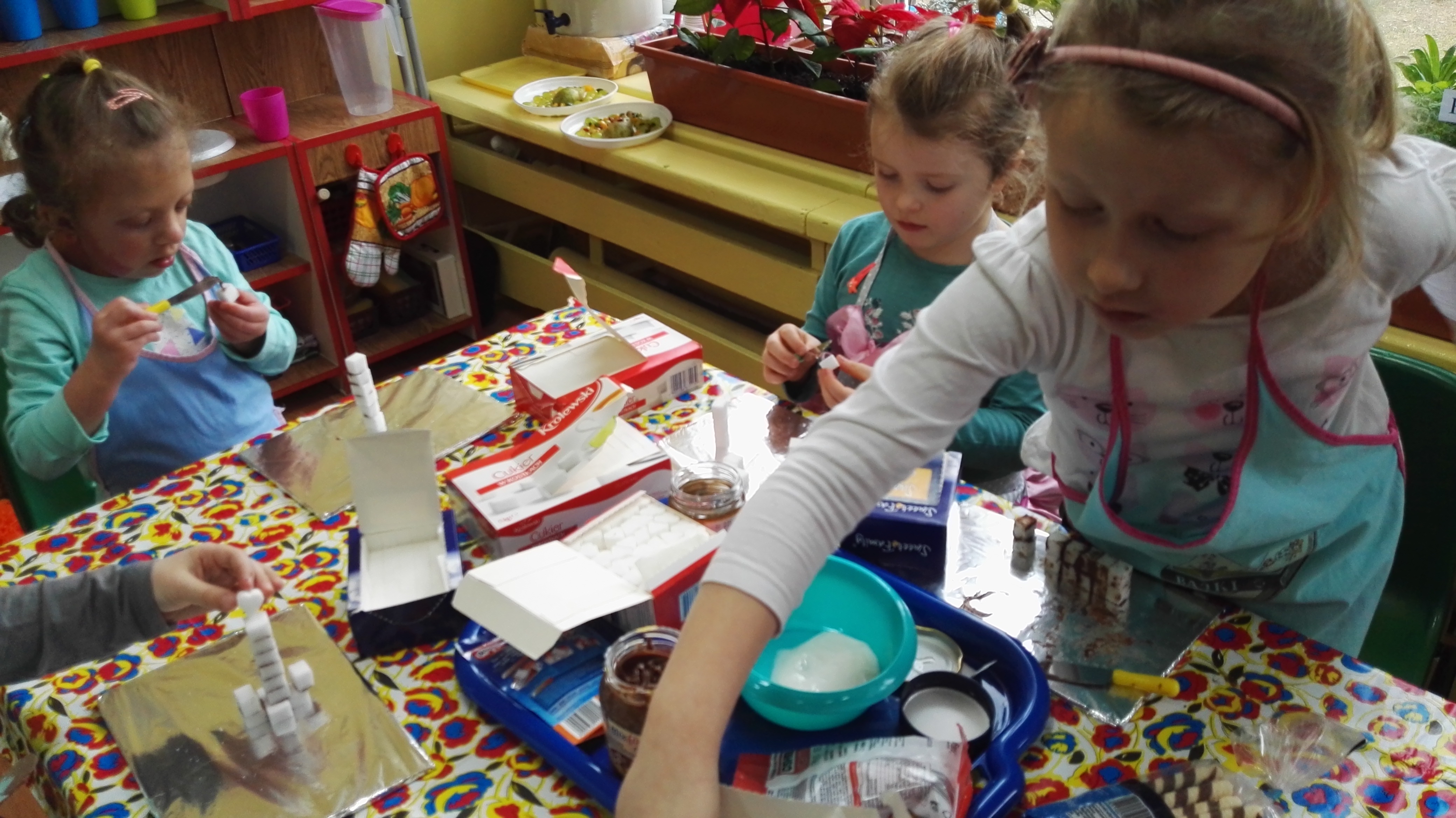 Nasze dzieci wzięły udział w zajęciach tzw. Porannego koła inspirowanych utworem E. Szelzburg – Zarembiny pt. „Królewna”. Ponadczasowy utwór opisujący kaprysy tytułowej królewny stał się pretekstem do inscenizacji w postaci teatrzyku stolikowego. Przedszkolaki przeliczały liczne elementy występujące w teatrzyku pokazując gościom, że nie jest im obca matematyzacja świata. Następnie wykonywały liczne zadania: przeliczały klocki, budowały wieże, pisały cyfry po piasku, budowały tron dla królewny wg. instrukcji. Następnie przystąpiły do pracy w kącikach zabawowo- zadaniowych. Kącik Darów- Królewna Kapryśna taki kaprys miała, że w pięknym pałacu zamieszkać chciała. Dzieci układały zamki z darów: 7, 8, 9 i 10. Kącik twórczy - królewna założyć korony nie chciała i wciąż płakała. Wyszyj dla królewny przepiękną koronę, żeby chciała chodzić w niej co dzień. Przedszkolaki perforowały koronę dla królewny, a następnie za pomocą plastikowych igieł wyszywały wzór. Kącik badawczy- królewna Kapryśna cały świat objechała, pięknych kamieni do swojej korony zapomniała. Dostała w prezencie tajemniczą skałę, ukryte są w niej skarby niebywałe. Dzieci wykuwały kamienie szlachetne z gipsowego bloku, oczyszczały je i nazywały. Kamienie te staną się początkiem naszej przedszkolnej kolekcji „Kamieni i minerałów”. Kącik gospodarczy - królewna Kapryśna taki kaprys miała, że oduczyć dzieci słodkości chciała. Zbuduj dla królewny zamek ze słodkich cegiełek, posklejaj je lukrem i miodem, niczym klejem. Przedszkolaki budowały modele wież i zamków z kostek cukru, które sklejały za pomocą lukru, masła czekoladowego i miodu. Nasze przedszkolaki we wszystkich kącikach spisały się na medal, były niezwykle skupione oraz fachowo i rzeczowo opowiadały o powierzonych im zadaniach. Gratulujemy!