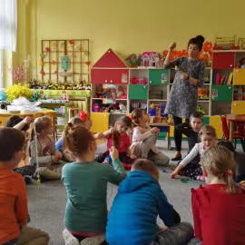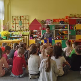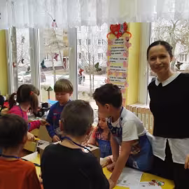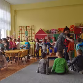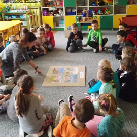 Do naszej froeblowskiej grupy zawitali nauczyciele i dyrektorzy z kieleckich przedszkoli zaproszeni na nasz froeblowski poranek. To innowacyjne zajęcia otwarte, które pokazują praktyczne zastosowanie koncepcji F. Froebla i jego „darów”.