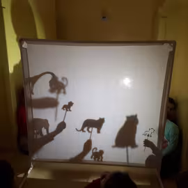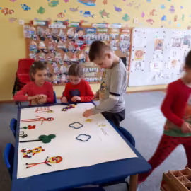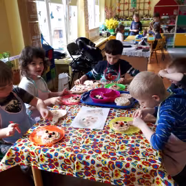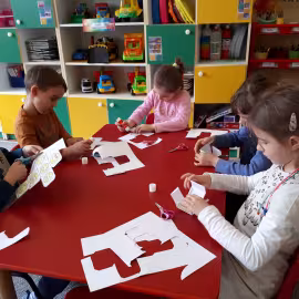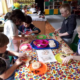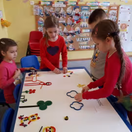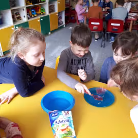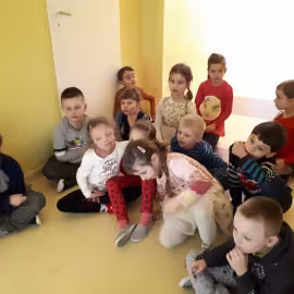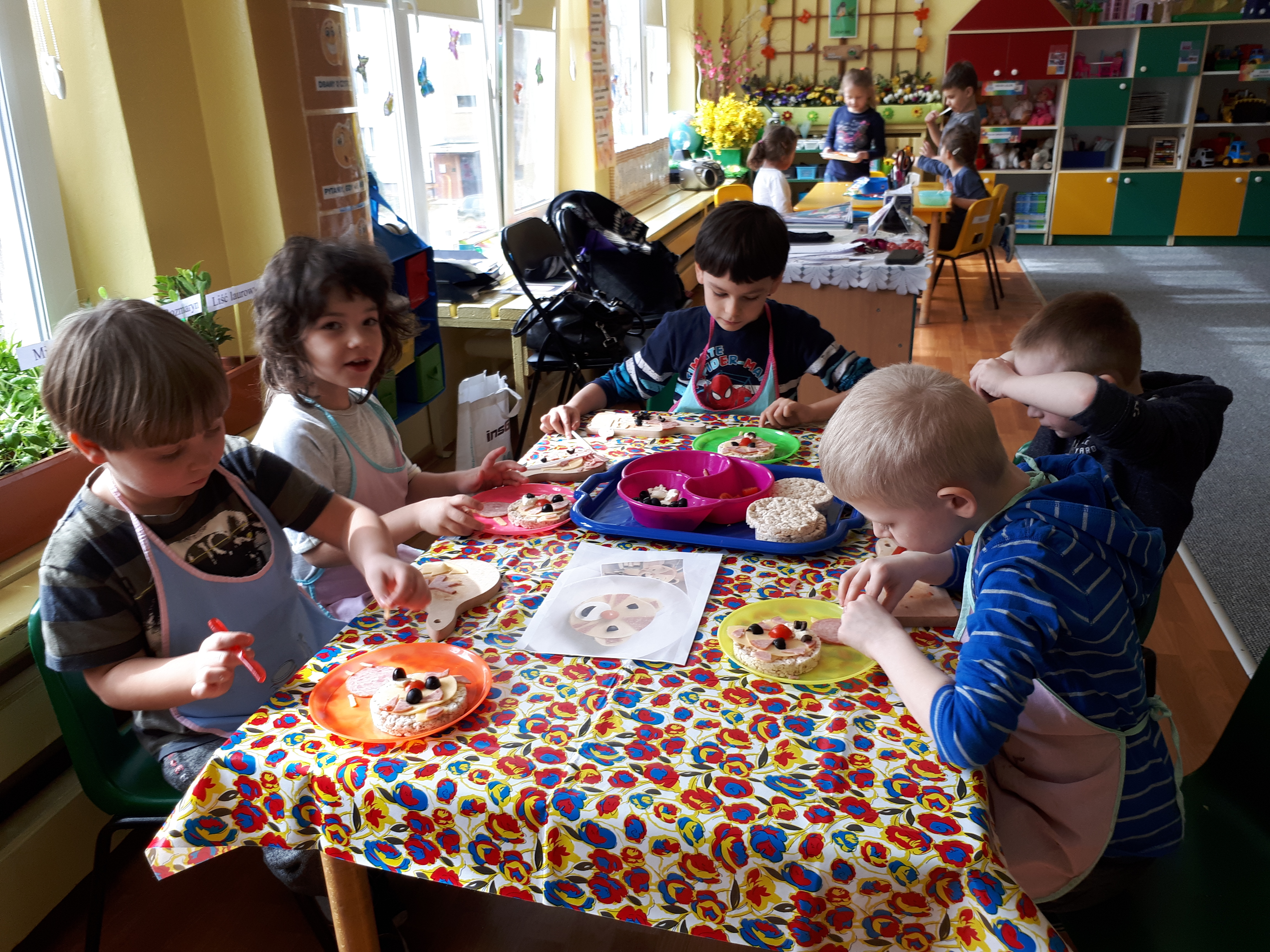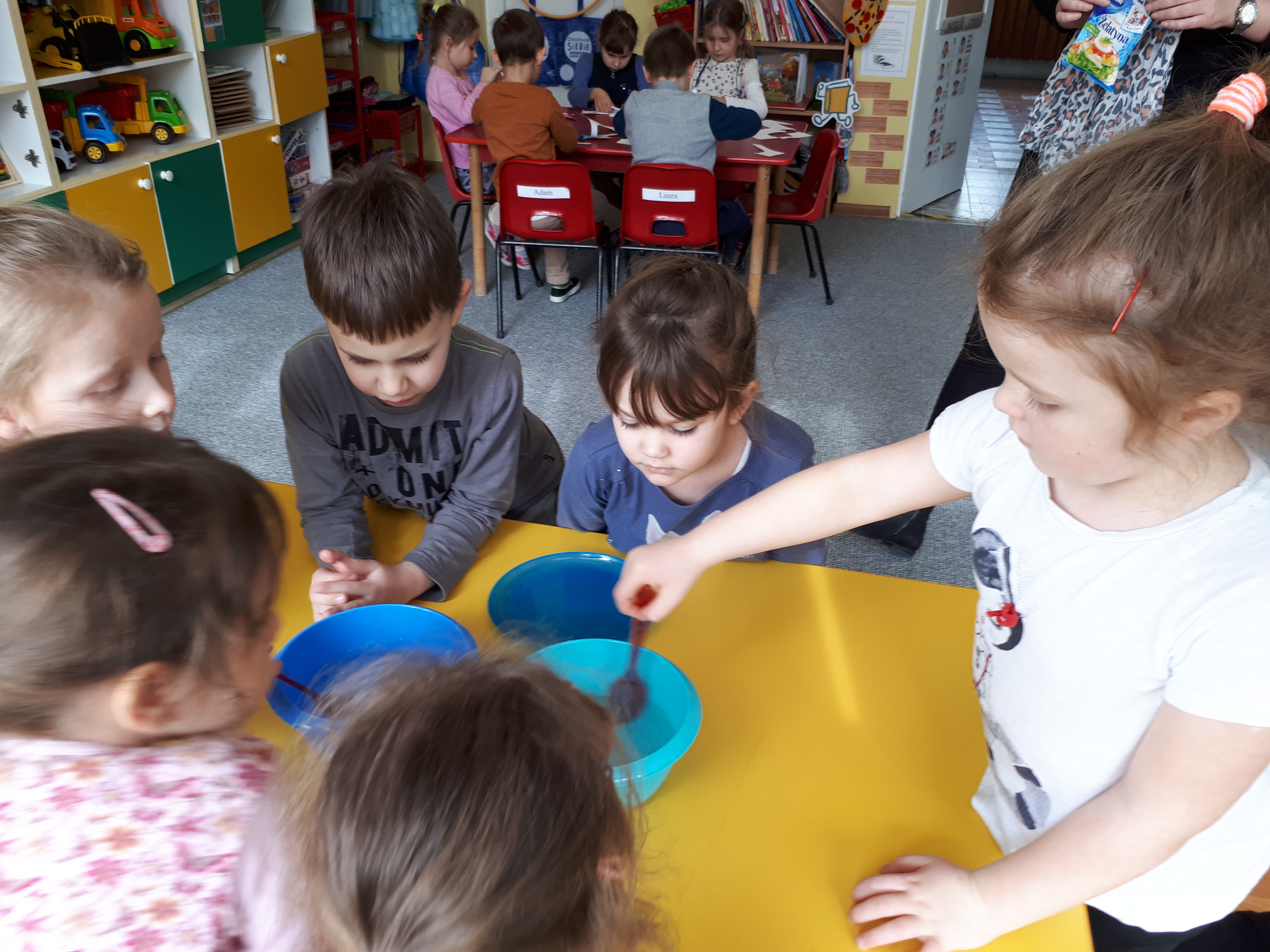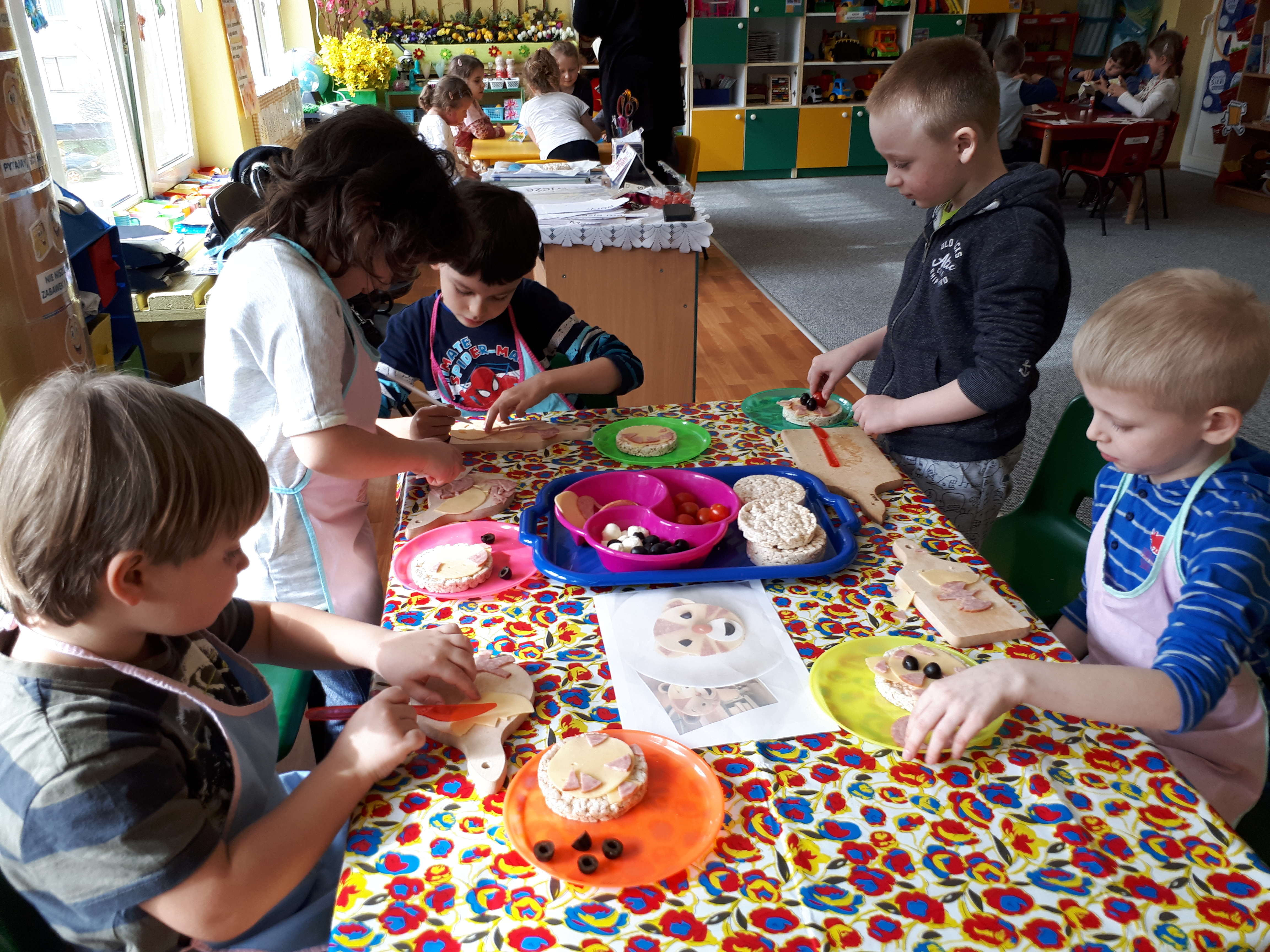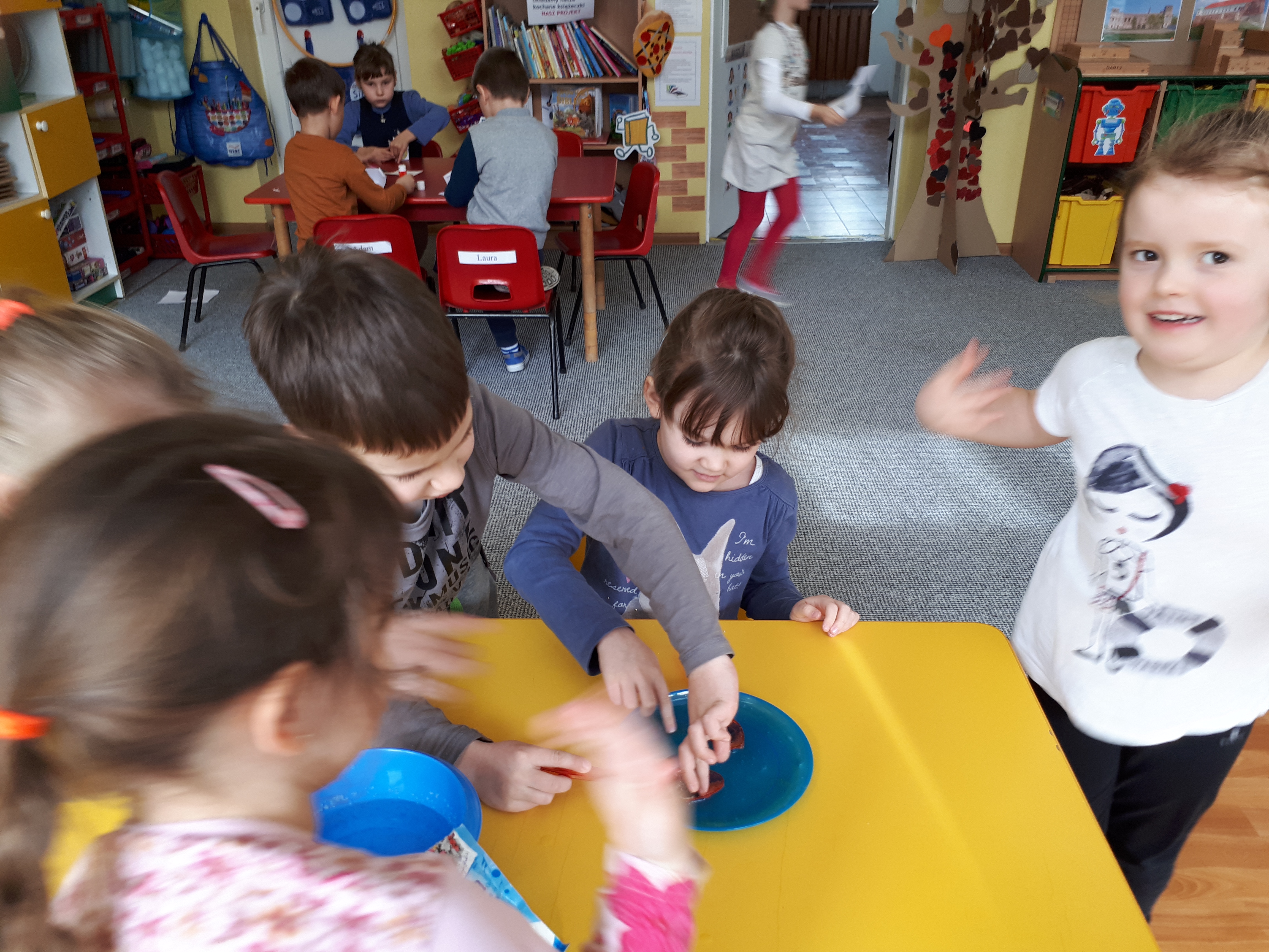 Bajki terapeutyczne mają na celu danie dzieciom wsparcia, pomoc w rozumieniu sytuacji trudnych, także uświadomienie doznawanych emocji, poznanie nowych strategii radzenia sobie i zastępczą kompensację, co powoduje, że występują w nich pewne elementy wspólne. Bajki terapeutyczne, to skuteczna metoda wychowania wrażliwego człowieka umiejącego radzić sobie w życiu pomimo napotykanych trudności. W bieżącym roku szkolnym poznajemy przygody zwierząt i roślin i pomagamy im w rozwiązywaniu małych-wielkich problemów. Tym razem postanowiliśmy rozwiązać problemy małego białego tygryska, który poprzez swoja inność został odrzucony przez otoczenie. Utwór został wystawiony w postaci teatrzyku cieni przez nasze dzieci. Po rozmowie dotyczącej treści teatrzyku dzieci przystąpiły do prac w kącikach zabawowo- zadaniowych. W kąciku Darów- układały z klocków „Krainę Radości”. W kąciku Twórczym przedszkolaki wykonywały kostkę emocji, która posłużyła nam do wielu popołudniowych zabaw z uczuciami i emocjami. W kąciku Badawczym dzieci badały trafność metafory: „Trząść się jak galareta”, badając właściwości żelatyny i galaretki. Dzieci rozpuszczały żelatynę i galaretkę najpierw w ciepłej, a później w zimnej wodzie. Poznawały właściwości obu substancji oraz próbowały poznać przepis na galaretkę. W kąciku Gospodarczym dzielni kucharze projektowali postać białego tygryska z wafli ryżowych, wędliny, żółtego sera, czarnych oliwek i pomidorków koktajlowych. Zajęcia miały na celu uwrażliwienie dzieci na to, że nie należy się chwalić, dokuczać innym oraz wyszydzać i szykanować innych.