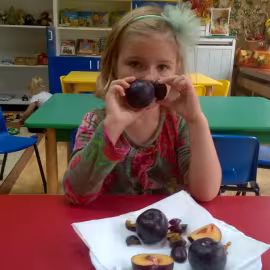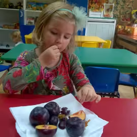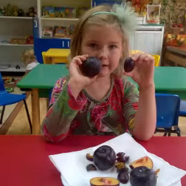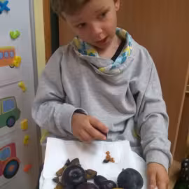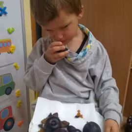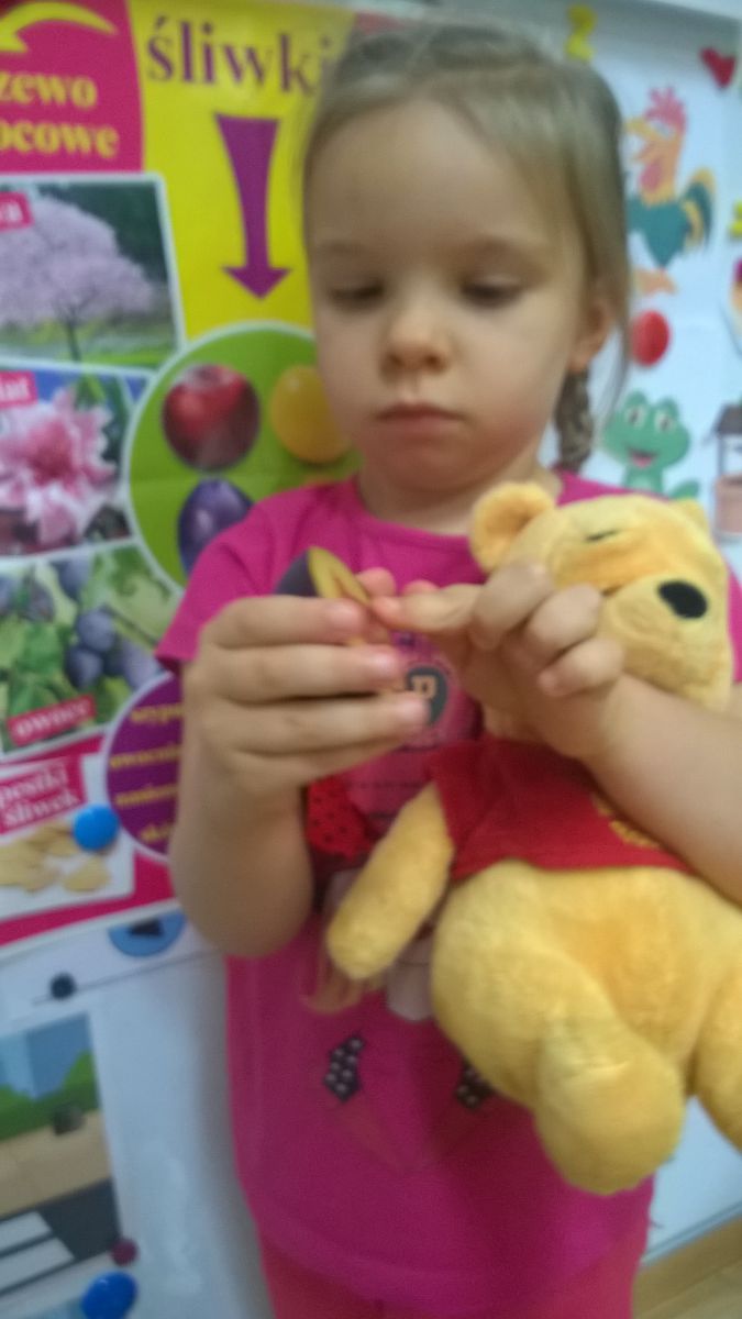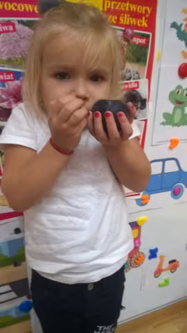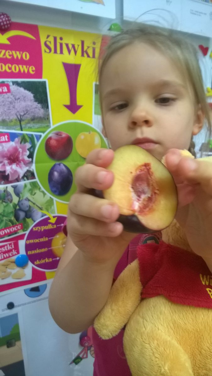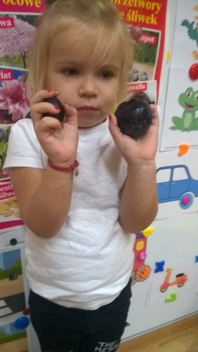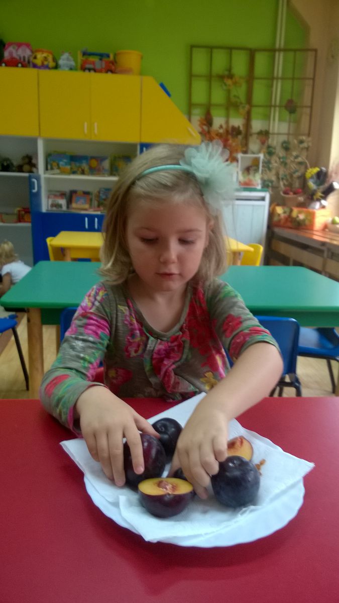 Nadeszła jesień, czas zmieniającej się pogody, a wraz z nią bogactwo kolorów i wspaniałe Dary Jesieni. Jest to czas gdzie sady dają nam najwspanialsze owoce, które możemy degustować. Przedszkole stara się, aby w tym czasie dzieci uzyskały jak najwięcej wiadomości na temat dobrodziejstw, jakie daje nam „Matka Natura”. Dlatego też tematyka jesienna zainspirowała dzieci do przedstawienia części artystycznej podczas uroczystości z okazji Ogólnopolskiego Dnia Przedszkolaka, w formie piosenki, której motywem przewodnim była śliwka. Utwór,, Śliwka robaczywka ”z płyty z piosenkami pełnymi dobrych emocji dla dzieci pt. „Ogrody". Pomagają one docenić rzeczy proste, dostrzec piękno świata, wartość przyjaźni, więzi rodzinnych, a przede wszystkim miłości. Nie brakowało w nich dozy dobrego humoru. Dzieci poznawały także walory odżywcze śliwek. Poznawały je wielozmysłowo - po wyglądzie, kształcie i smaku. Zapraszamy do oglądania zdjęć