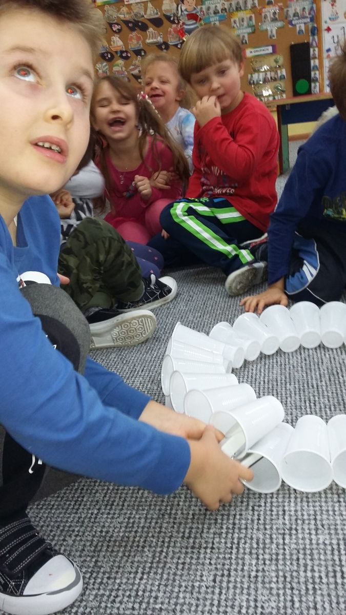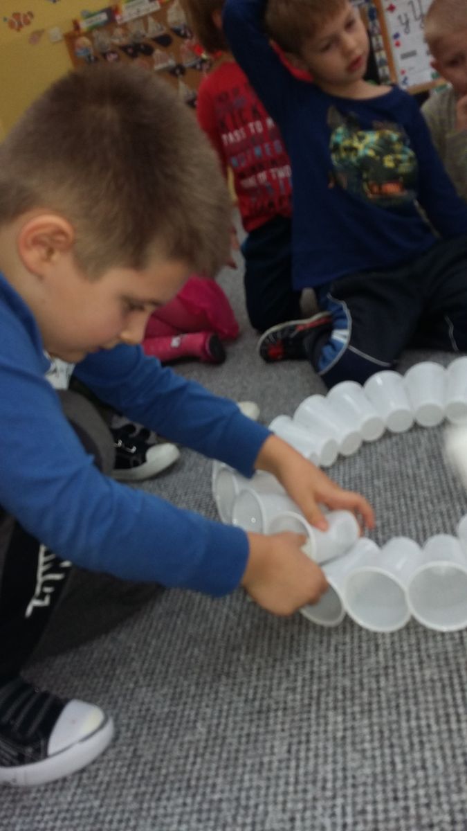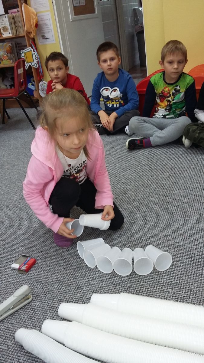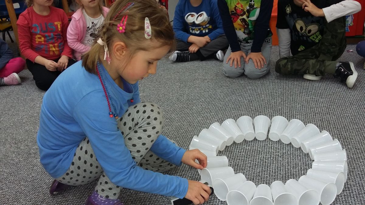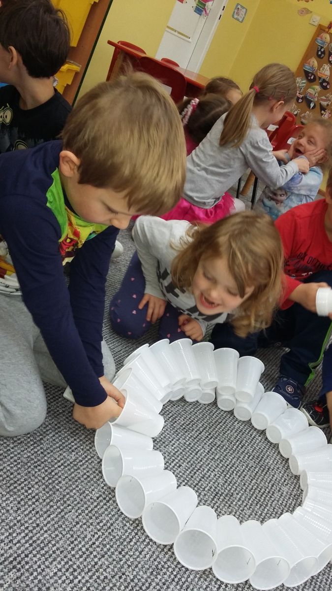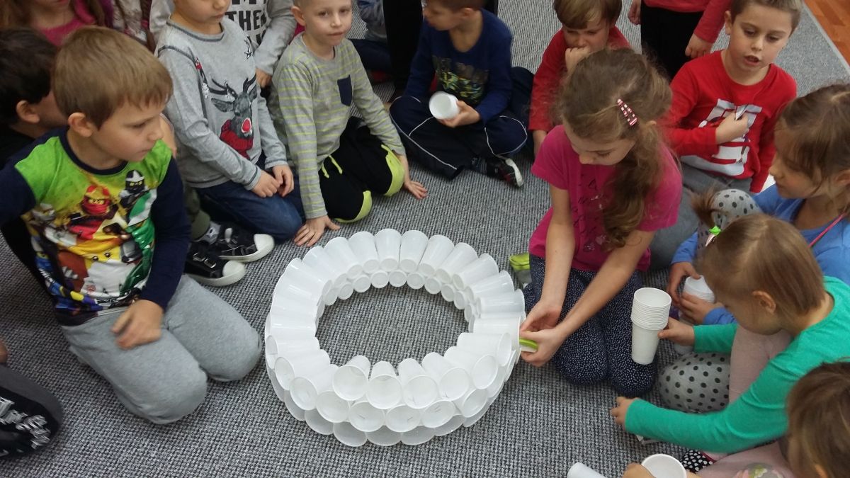 Zima w pełni, w związku z tym wspólnie z partnerami projektu „Snowman around Europe!” postanowiliśmy wykonać niesamowitego bałwana z kubeczków do napojów. Celem projektu było zaprojektowanie unikatowego bałwanka z różnych materiałów o dowolny rozmiarze. Musieliśmy bałwanka nazwać, stąd powstało dla niego śmieszne imię „Fluffy Snowball”. Dodatkowo dzieci zaśpiewały po angielsku piosenkę „I’m a little snowman”. Nasz bałwanek ponadto rozświetla mrok przy grupowej choince, a w okresie przedświątecznym zdobi hol naszego przedszkola.