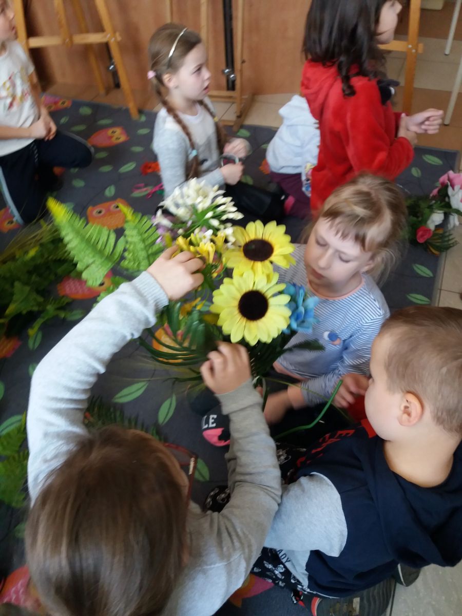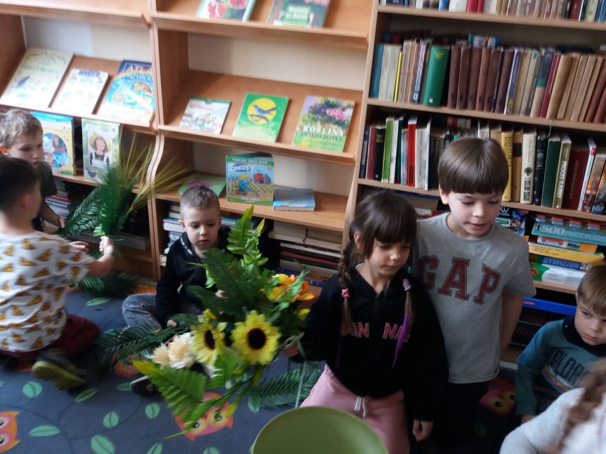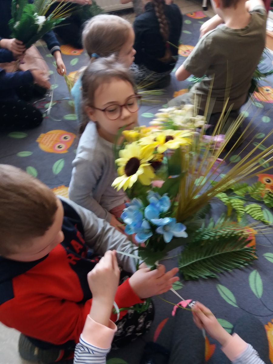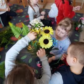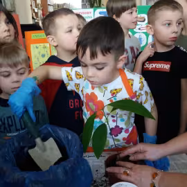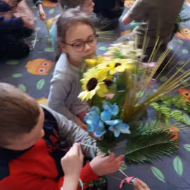 Dziś poznaliśmy tajemnice zawodu florysty. Pokazaliśmy, jakich narzędzi, przyborów używa florysta, próbowaliśmy sami układać bukiety, a na pamiątkę spotkania dostaliśmy od pań sadzonkę mango, którą nasz kolega przesadził do nowej doniczki.