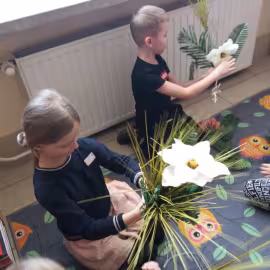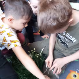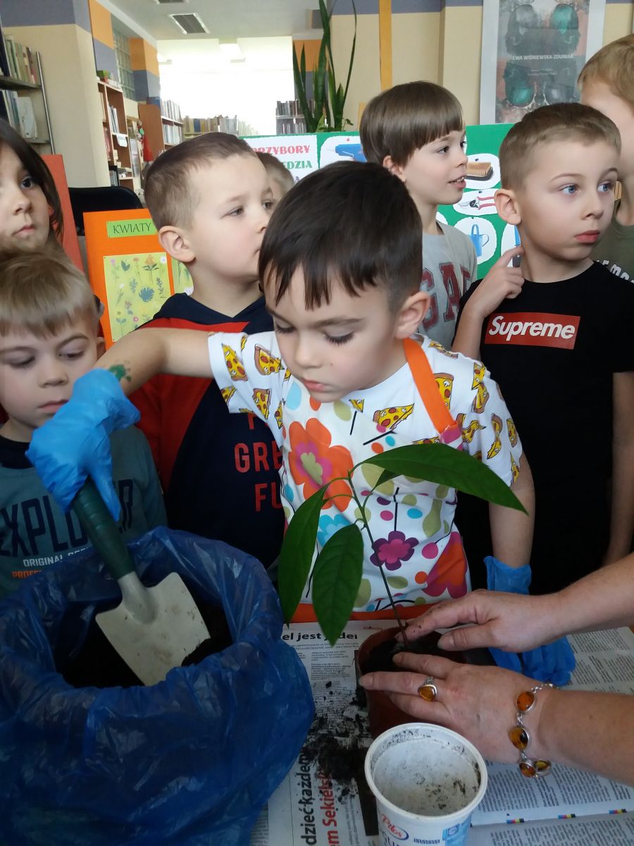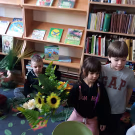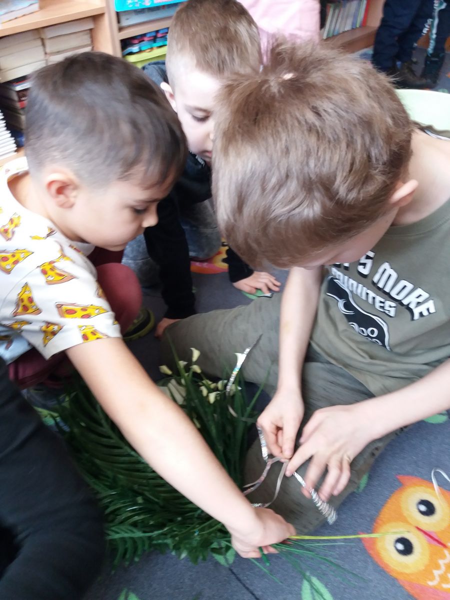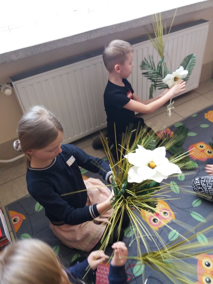 Dziś poznaliśmy tajemnice zawodu florysty. Pokazaliśmy, jakich narzędzi, przyborów używa florysta, próbowaliśmy sami układać bukiety, a na pamiątkę spotkania dostaliśmy od pań sadzonkę mango, którą nasz kolega przesadził do nowej doniczki.