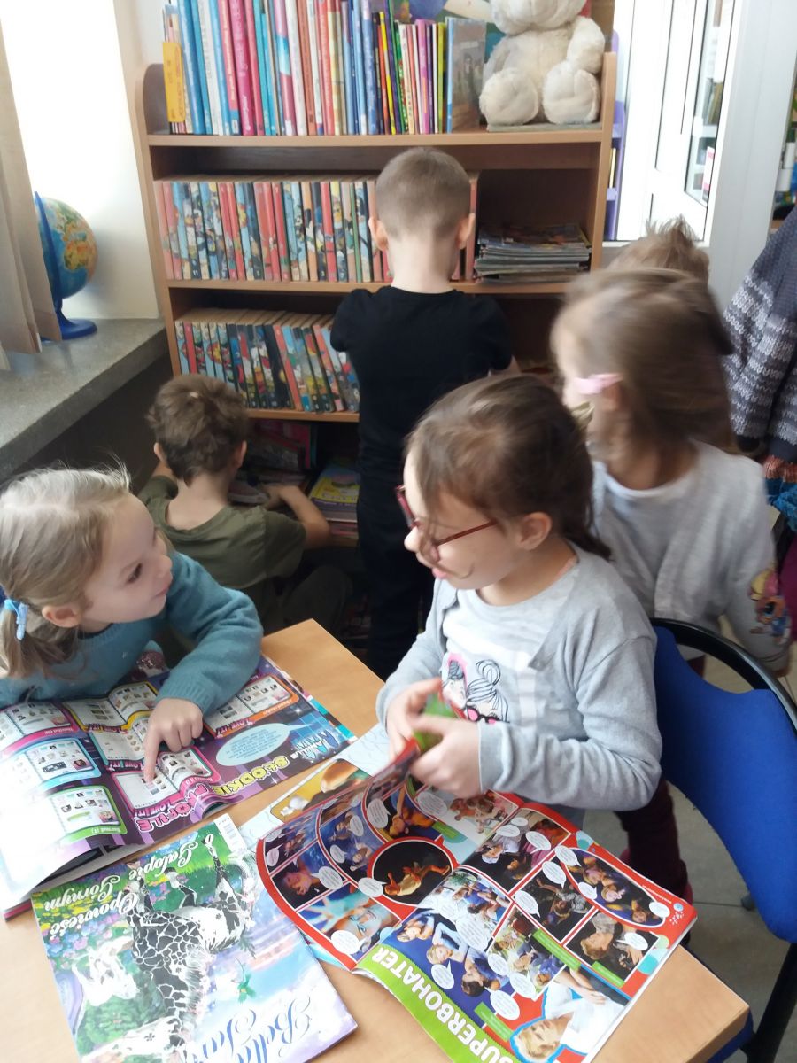 Ulubionym punktem spotkań w bibliotece jest wybieranie książek i czasopism do czytania.