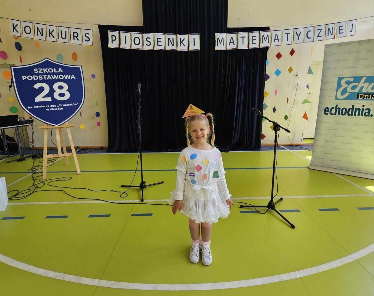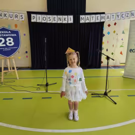 Opublikowano: 01.06.2024 Udział w konkursie piosenki matematycznej w Szkole Podstawowej nr 28. Emilka z grupy VII wykonała piosenkę pt. ,,Piosenka o matematyce " Orkiestra Dni Naszych.
