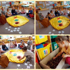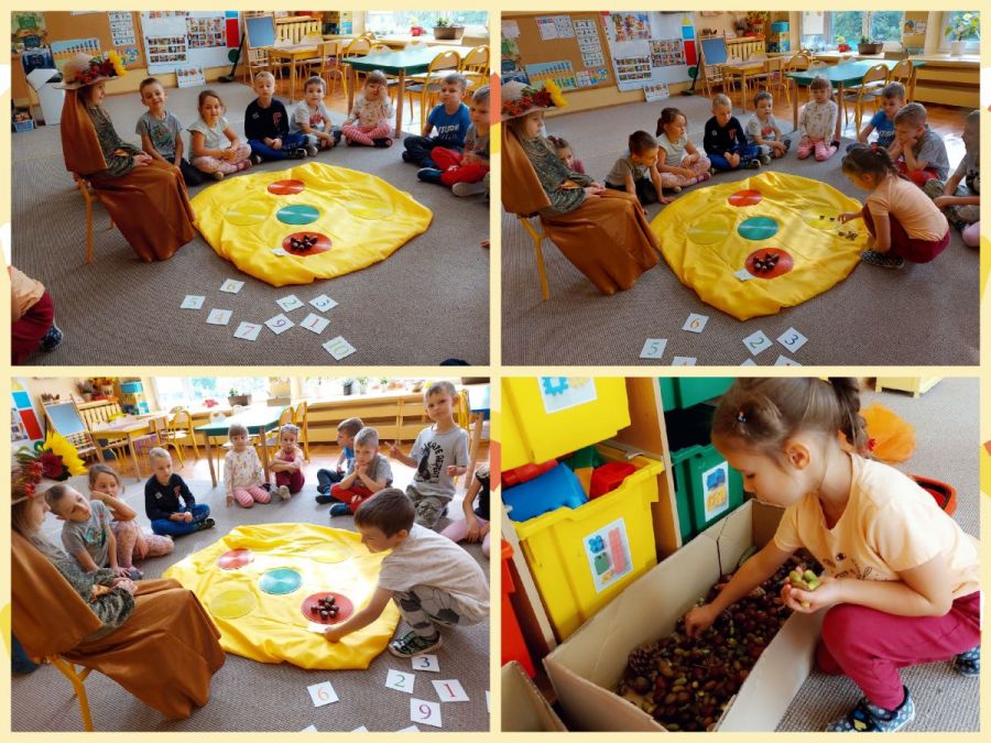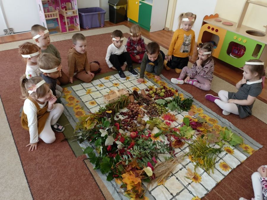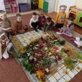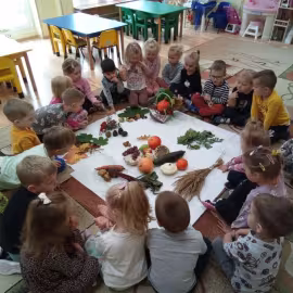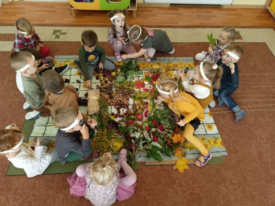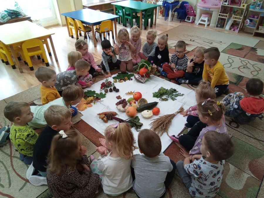 Opublikowano: 01.10.2022 W ostatnim tygodniu września Pani Jesień nie tylko zawitała w kalendarzu, ale również odwiedziła nasze przedszkole zostawiając swoje dary.