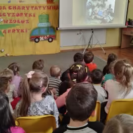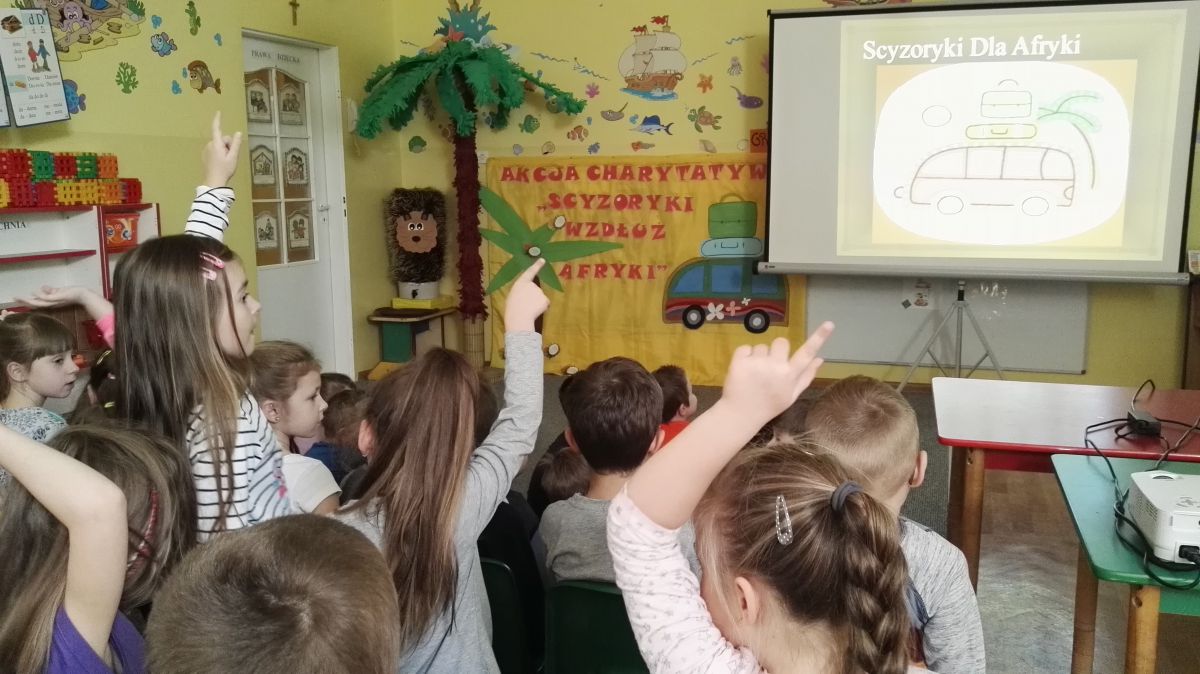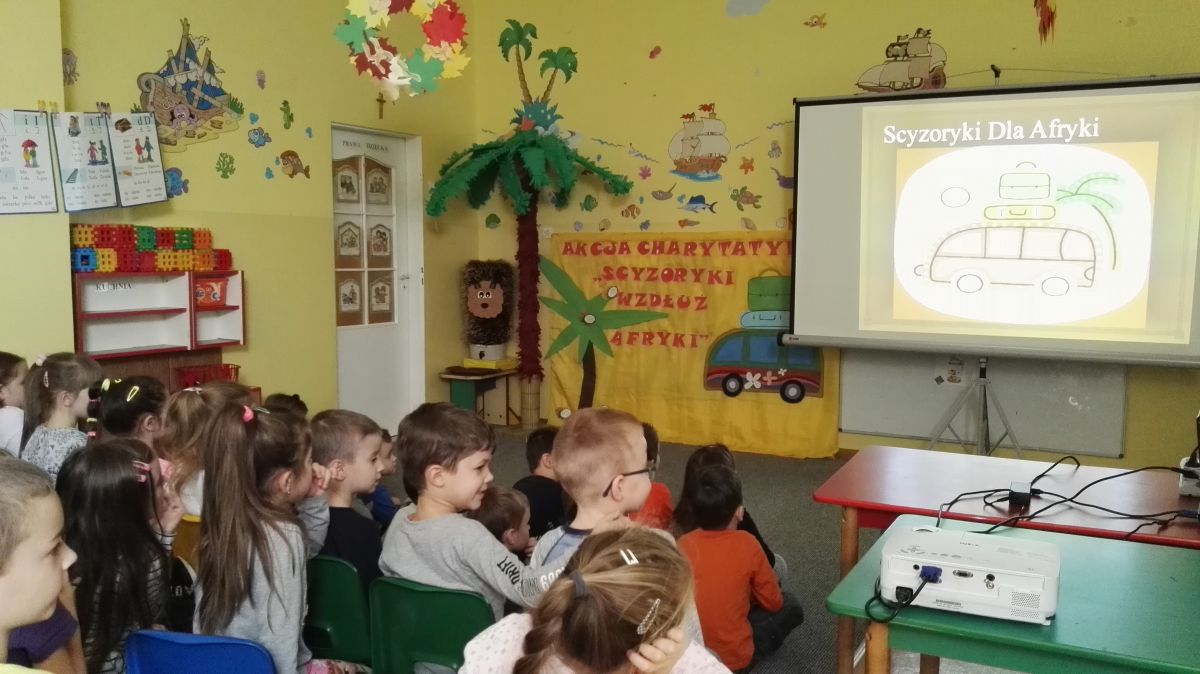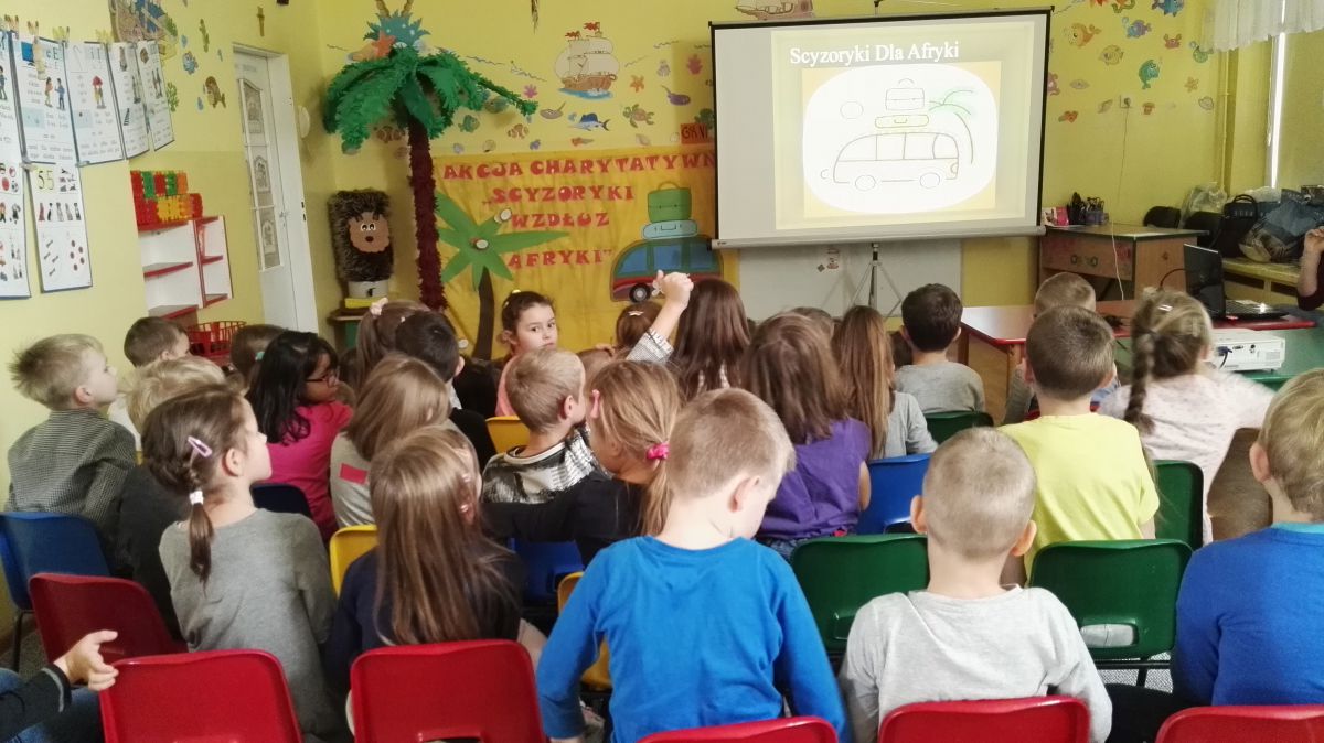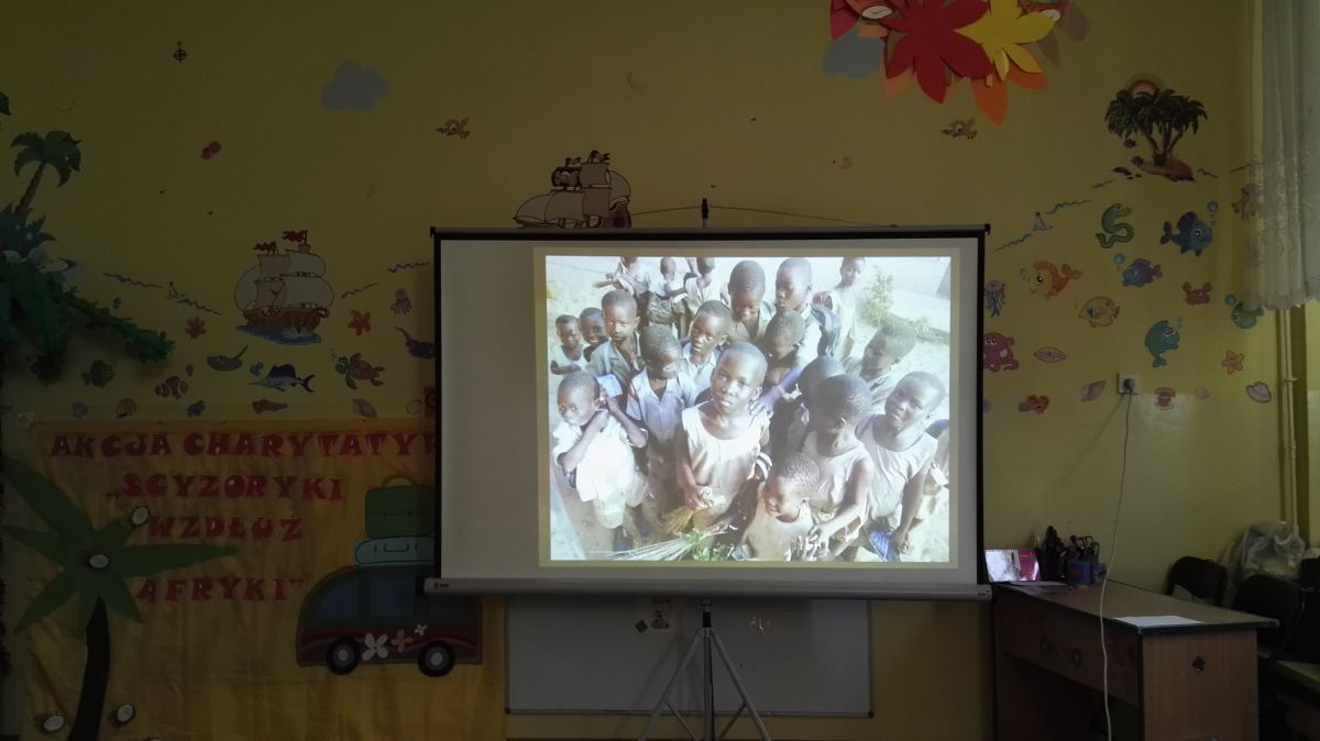 23 listopada grupy najstarsze (V, Vi, VII, VIII i IX) obejrzały prezentację multimedialną dotyczącą realizowanego przez nasze przedszkole projektu: "Scyzoryki dla Afryki". Podczas trwania tego projektu wraz ze Stowarzyszeniem SALUTEM i Społeczną Akademią Nauk z Kielc chcemy wesprzeć Polską Fundację –Edukacja dla rozwoju EDU AFRYKA - pomagającą najbiedniejszym dzieciom w zdobywaniu podstawowego wykształcenia. W tym celu prowadzimy zbiórkę różnych artykułów (głównie przyborów szkolnycg).