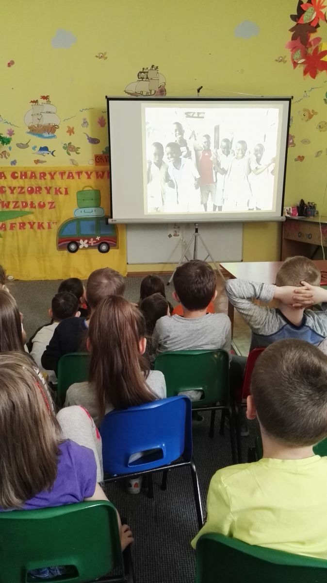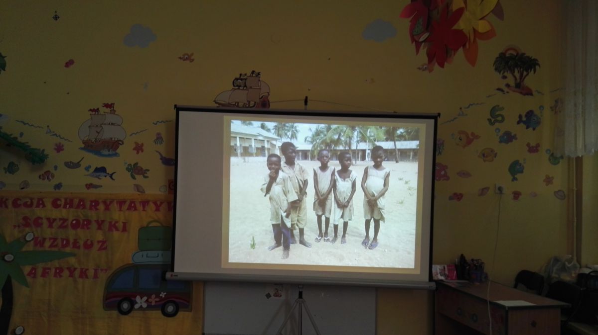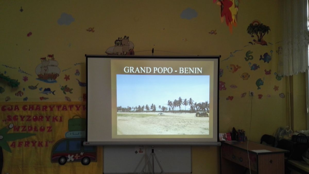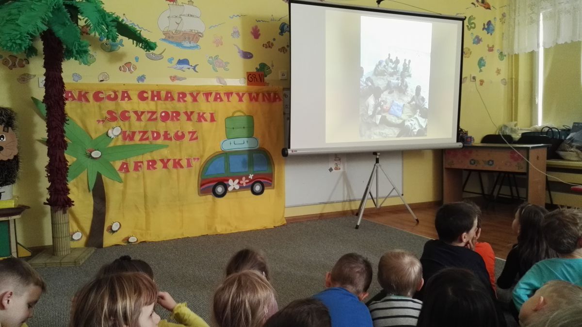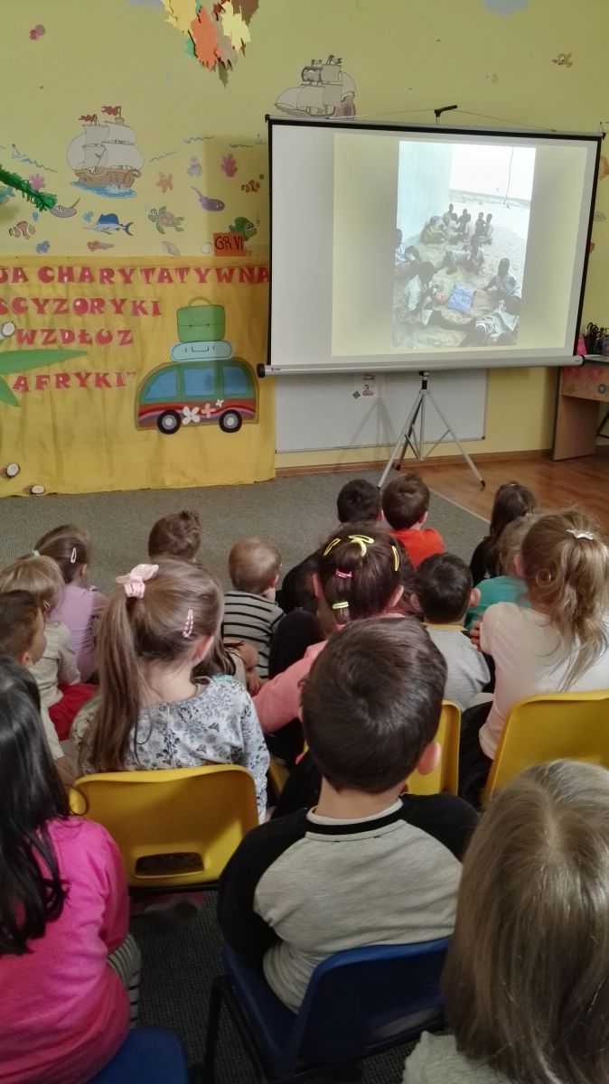 Prezentacja, przygotowana przez panią Anitę Boroń, przybliżyła naszym przedszkolakom rzeczywistość w jakiej przyszło żyć ich rówieśnikom z odległej Afryki, a dokładniej z miejscowości: Grand Popo i Benin. Dzieci zobaczyły w jakich warunkach uczą się i egzystują mieszkańcy Afryki, co wywołało falę pytań i żywą dyskusję. Mamy nadzieję, że będzie to cenna lekcja, która rozbudzi wśród naszych wychowanków chęć niesienia pomocy potrzebującym.