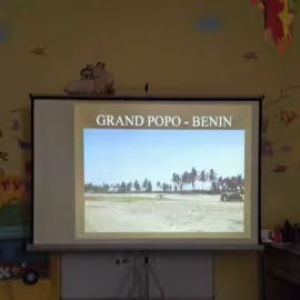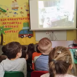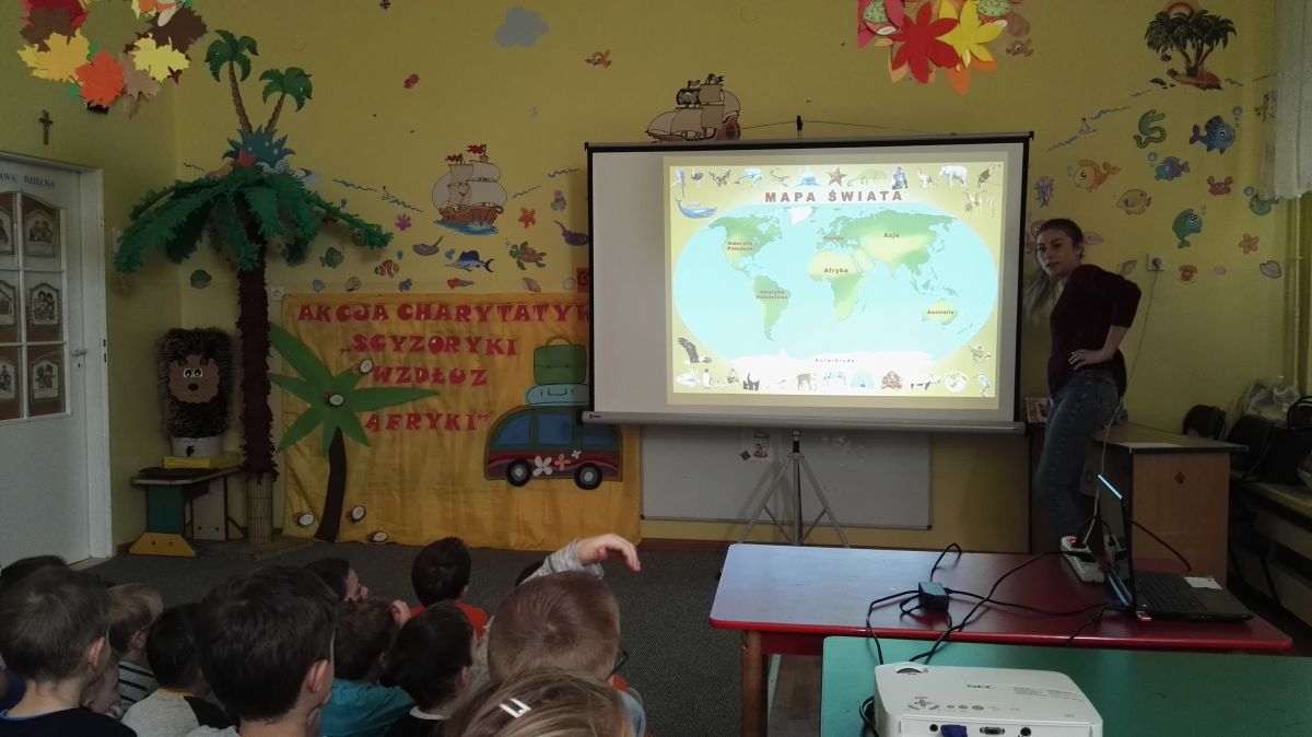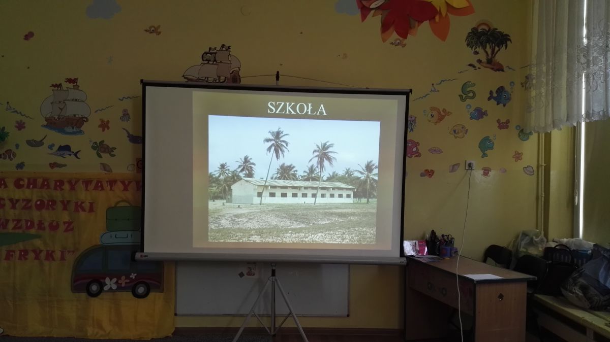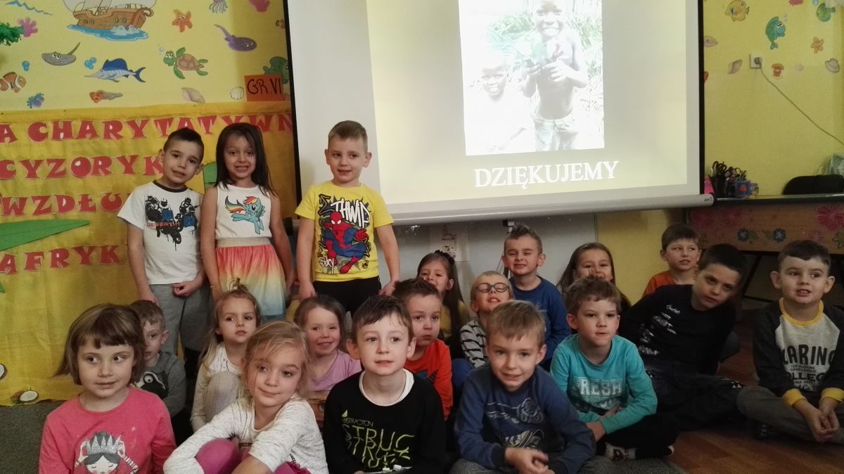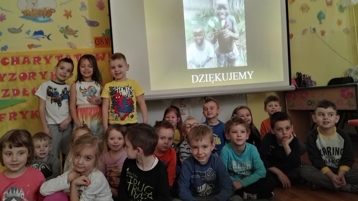 Prezentacja, przygotowana przez panią Anitę Boroń, przybliżyła naszym przedszkolakom rzeczywistość w jakiej przyszło żyć ich rówieśnikom z odległej Afryki, a dokładniej z miejscowości: Grand Popo i Benin. Dzieci zobaczyły w jakich warunkach uczą się i egzystują mieszkańcy Afryki, co wywołało falę pytań i żywą dyskusję. Mamy nadzieję, że będzie to cenna lekcja, która rozbudzi wśród naszych wychowanków chęć niesienia pomocy potrzebującym.