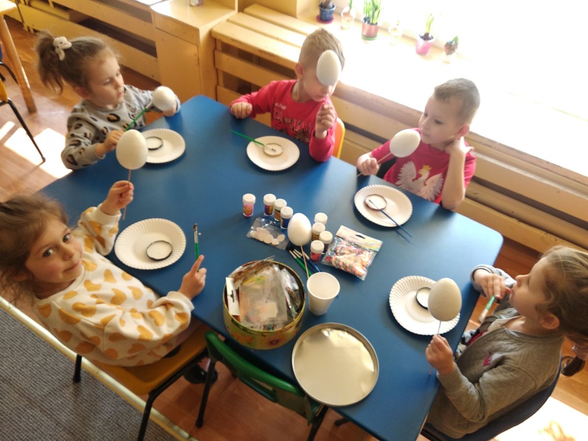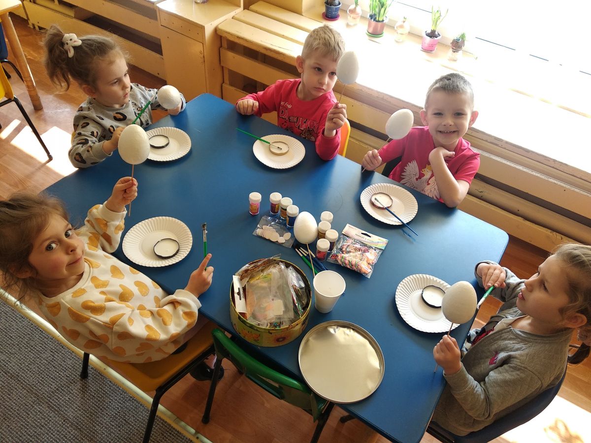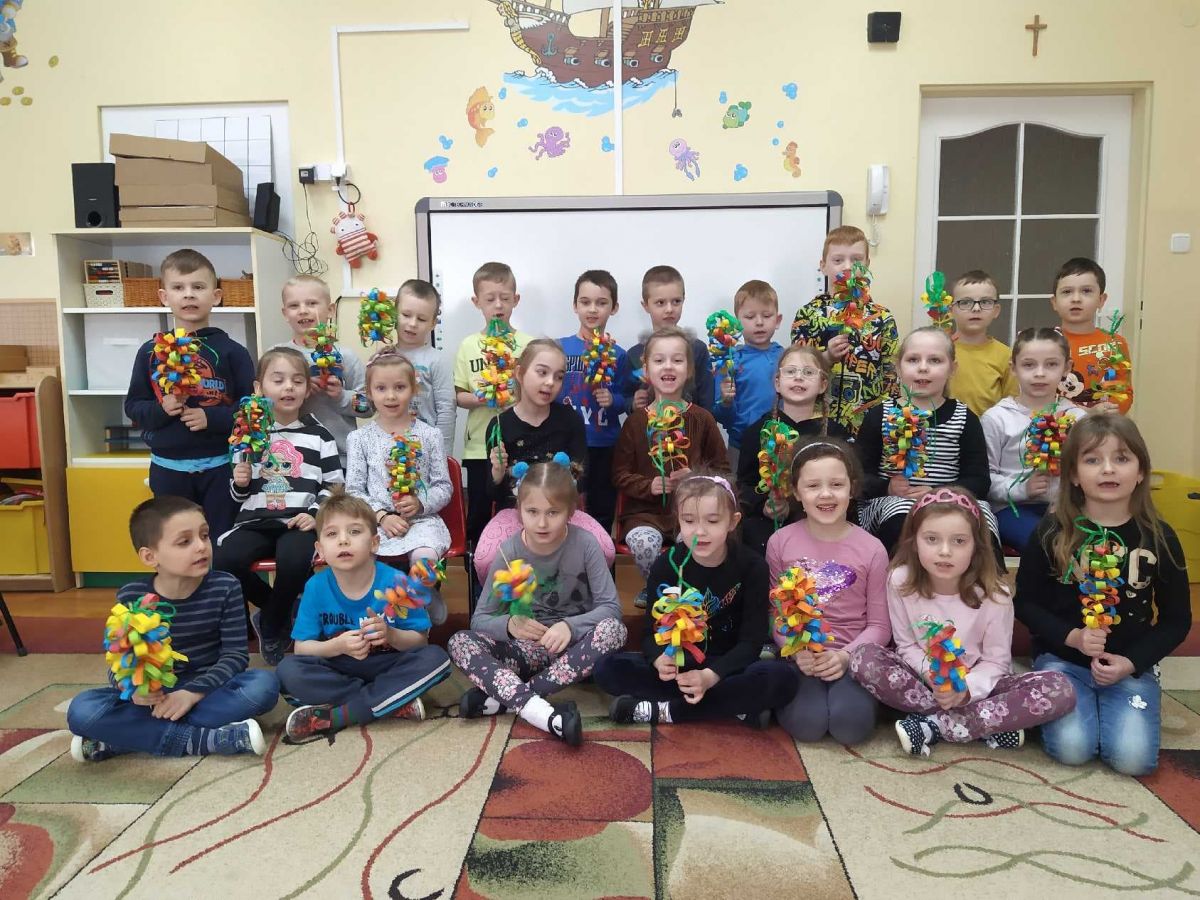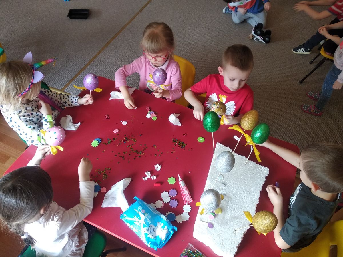 Okres przedświąteczny to czas szczególny dla nas wszystkich, zarówno w domu, jak i w przedszkolu. Wiosenne porządkowanie, pewne przemyślenia, nowe plany, no i wreszcie poszanowanie wielkanocnych tradycji świątecznych. Przedszkolaki z naszego przedszkola wykonały na zajęciach między innymi piękne, kolorowe palemki wielkanocne, które święci się w Niedzielę Palmową oraz drewniane pisanki, które ozdobiły wg własnej wyobraźni różnymi technikami plastycznymi. Tak przygotowane palmy i wielkanocne jajeczka, dzieci zaniosły w prezencie swoim rodzicom wraz z życzeniami radosnych świąt.