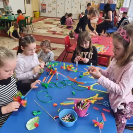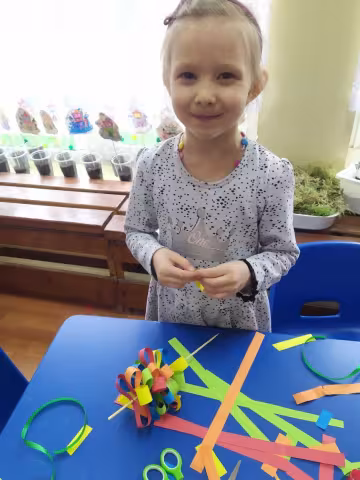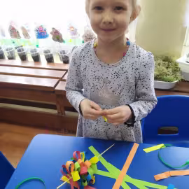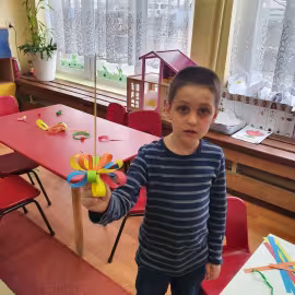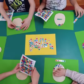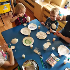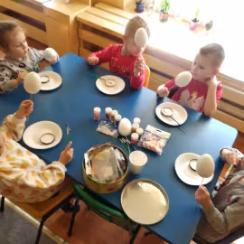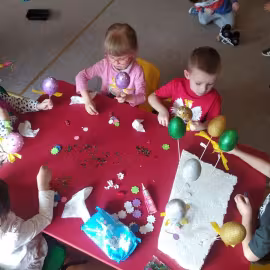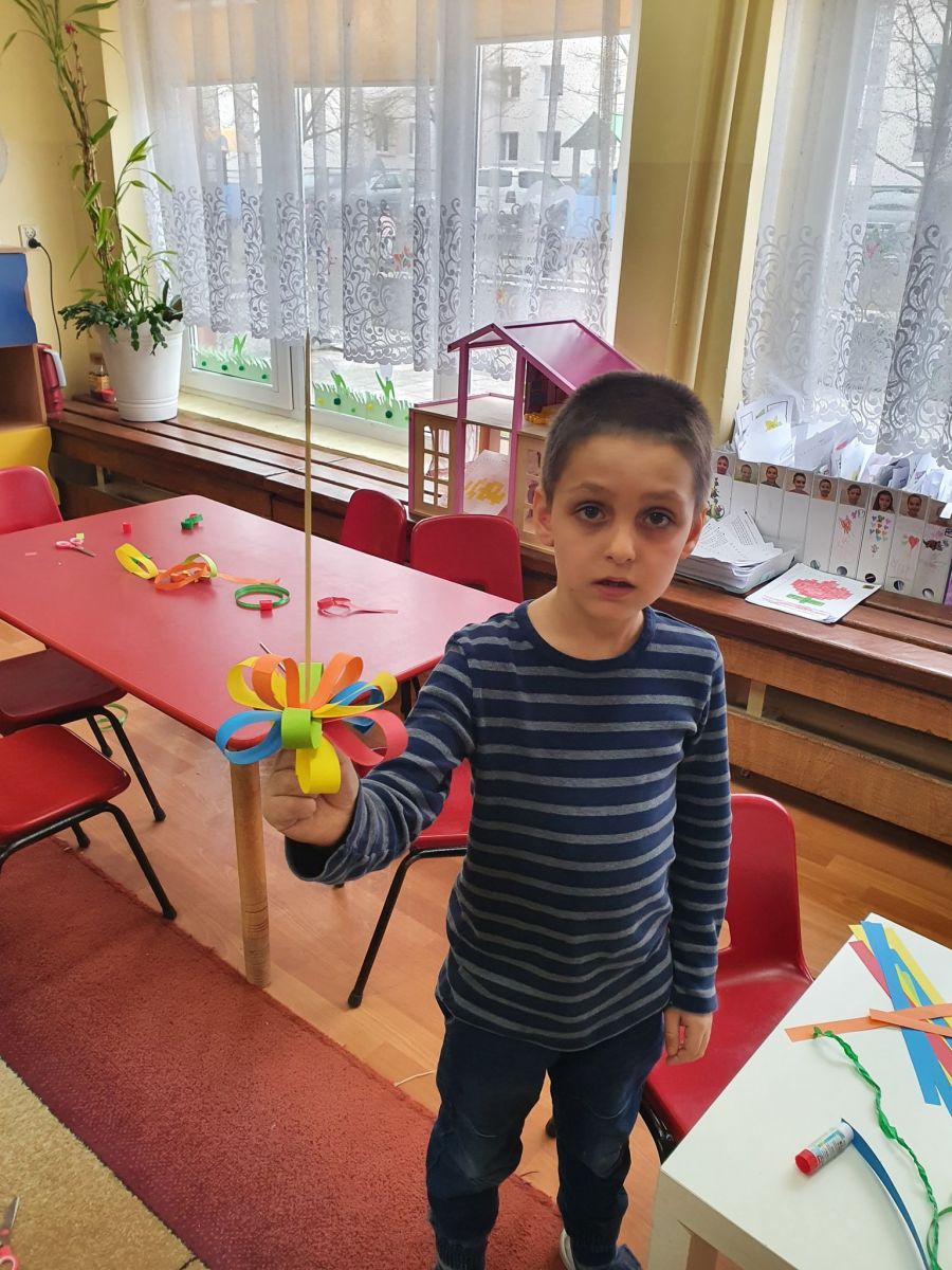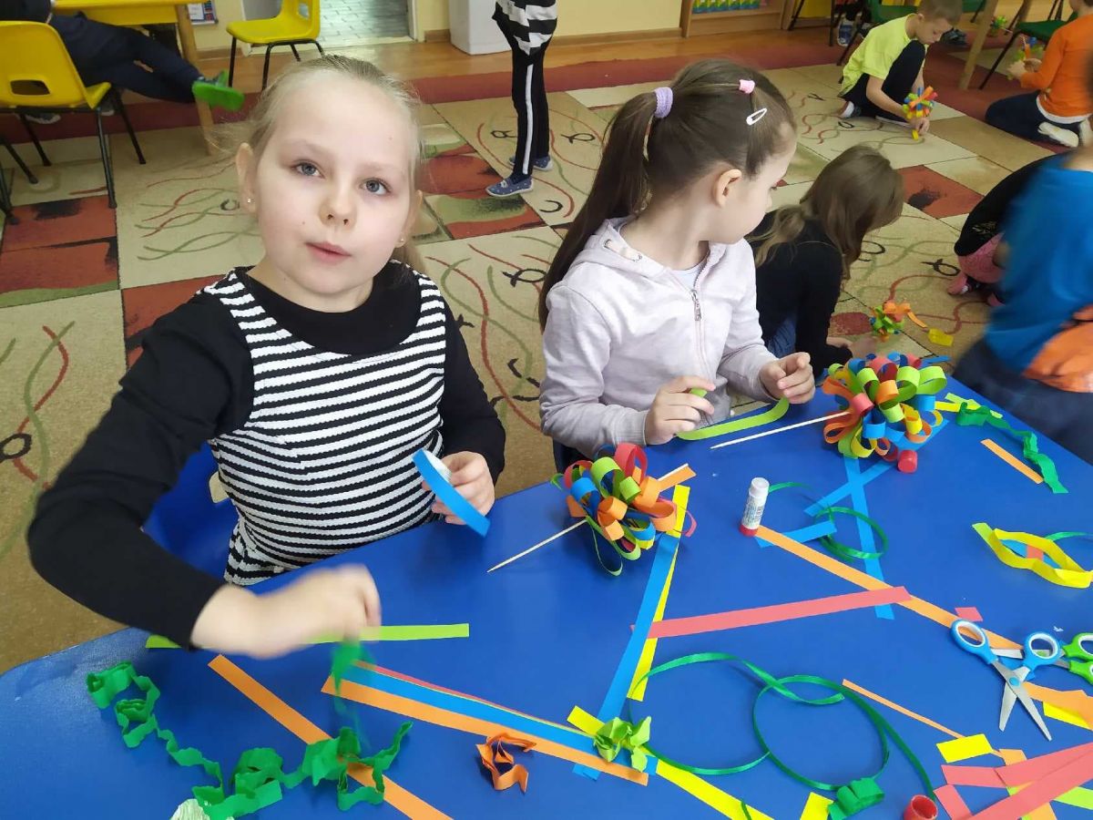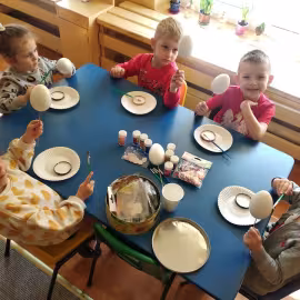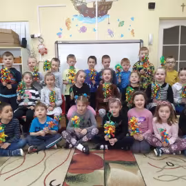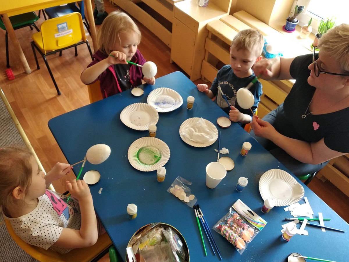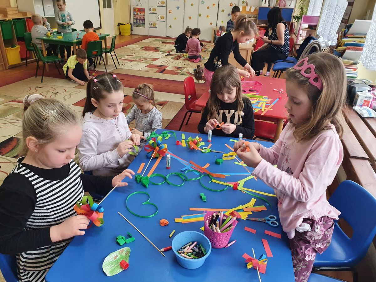 Okres przedświąteczny to czas szczególny dla nas wszystkich, zarówno w domu, jak i w przedszkolu. Wiosenne porządkowanie, pewne przemyślenia, nowe plany, no i wreszcie poszanowanie wielkanocnych tradycji świątecznych. Przedszkolaki z naszego przedszkola wykonały na zajęciach między innymi piękne, kolorowe palemki wielkanocne, które święci się w Niedzielę Palmową oraz drewniane pisanki, które ozdobiły wg własnej wyobraźni różnymi technikami plastycznymi. Tak przygotowane palmy i wielkanocne jajeczka, dzieci zaniosły w prezencie swoim rodzicom wraz z życzeniami radosnych świąt.