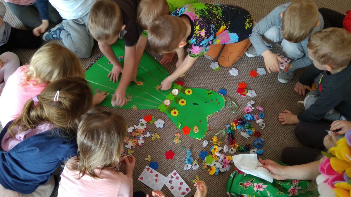 Dzieci uczyły się także wierszyków i piosenek dla Pani Wiosny. Podczas tego dnia nie zabrakło prac przy stolikach – kart pracy o wiosennej tematyce, kodowania, prac plastyczno-technicznych. Na upamiętnienie tego wesołego, kolorowego dnia przedszkolaki wykonały sobie wspólne, pamiątkowe fotografie.